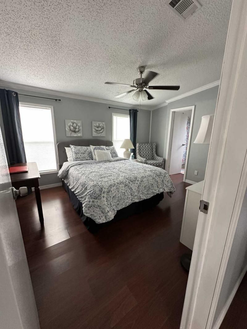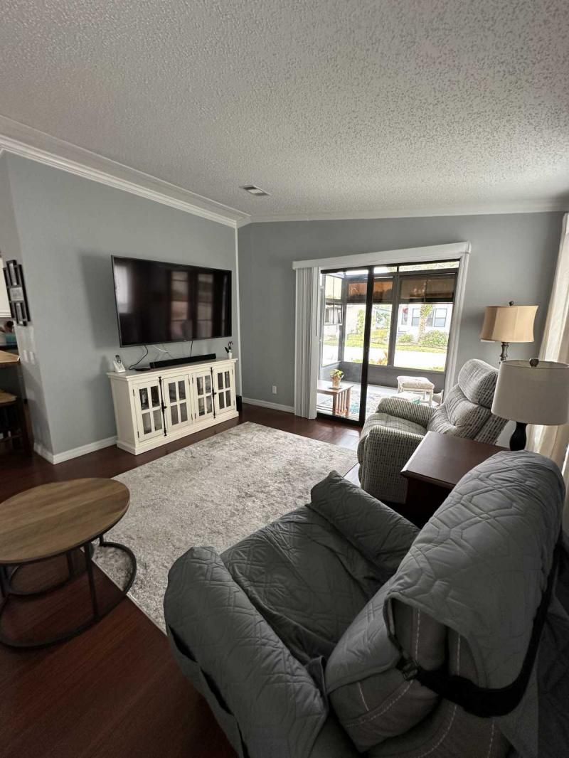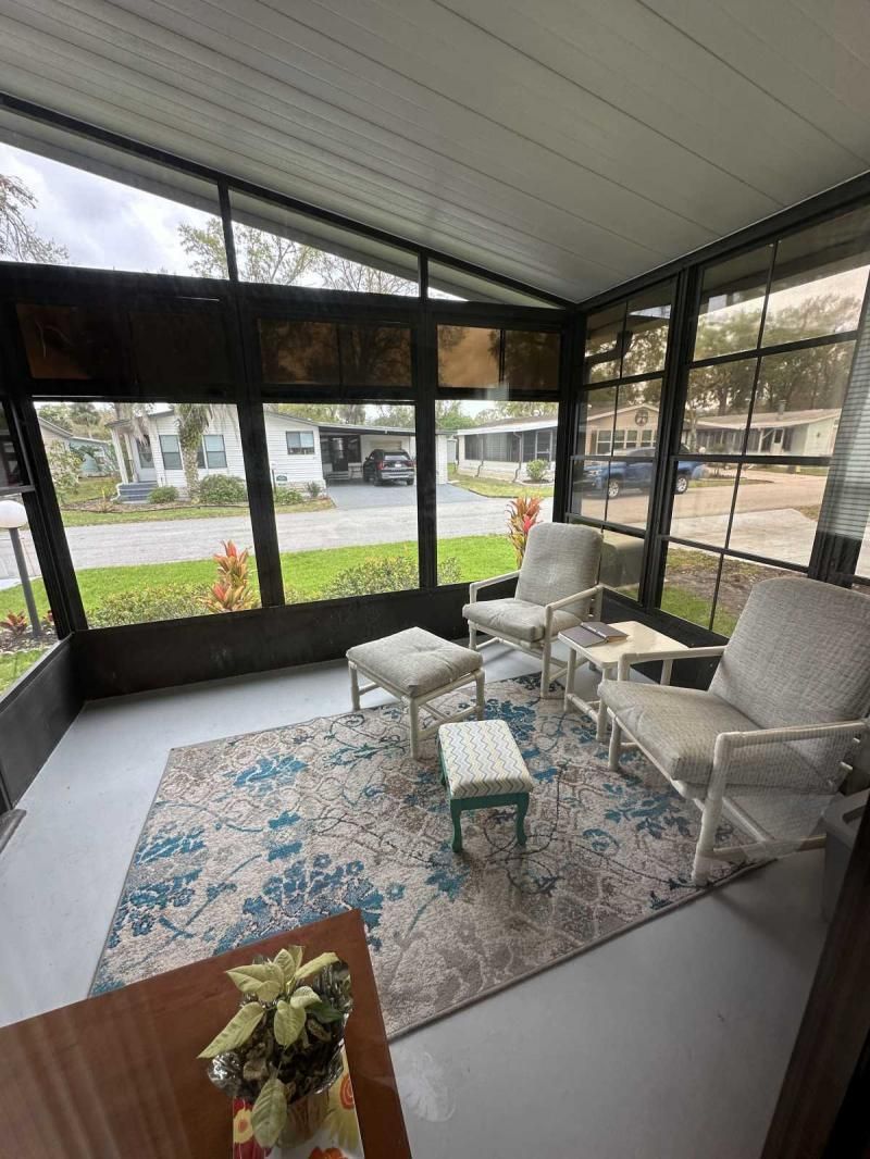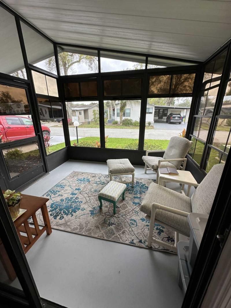 This charming and fully furnished 2-bedroom home is beautifully maintained and packed with upgrades! The newly painted driveway, dedicated golf cart pad, and fresh landscaping-including new grass and a modern sprinkler system-enhance the home's fantastic curb appeal. Enjoy outdoor living with two inviting sitting areas and a front lanai featuring new screens and windows that open to let in a refreshing breeze-perfect for relaxing and greeting friendly neighbors. Inside, the home is bright, cheerful, and move-in ready, with stylish new furnishings, fresh paint, and updated lighting. The kitchen offers a lovely view through the front window, making cooking and dishwashing a delight. It also boasts a brand-new refrigerator and quality appliances. Additional recent improvements include new TVs, updated draperies, and a brand-new roof and A/C unit. This home is priced right with all its fantastic updates! A video tour is available upon request.