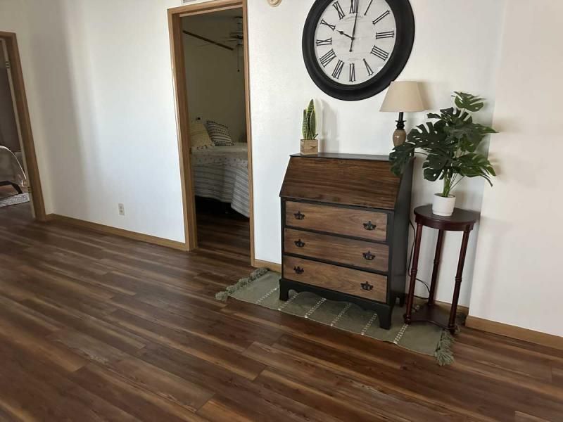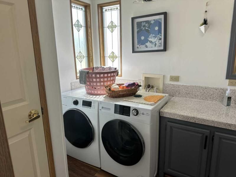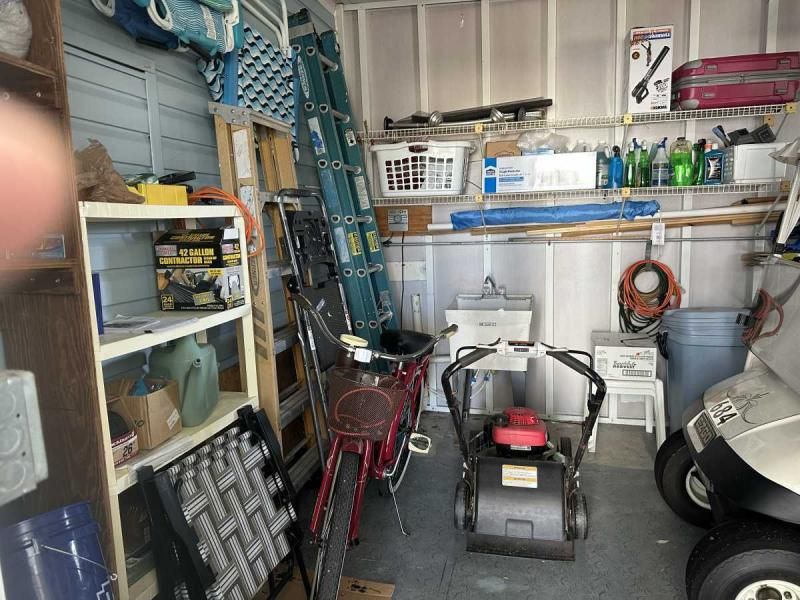 Explore this stunning, fully updated 2-bedroom corner lot home, offered turn-key for your convenience. As you arrive, you'll be greeted by a double carport and driveway with professional paint and printing, complemented by block pillars and a private golf cart driveway. The extra-large shed features an electric garage door opener. Inside, you'll find all-new double-pane windows flooding the home with natural light. Step through one of the two entrances into the front of the home, and you'll discover a fully furnished interior adorned with genuine leather furniture, valued at $6,000. The living room features a built-in entertainment center, while the dining room boasts a built-in hutch. Additionally, there's a den/family room for added versatility. The quaint lanai, measuring 10x18, has been added off the family room and features central air, providing a comfortable space to relax. The family room also includes a wet bar area. Both bedrooms are spacious, with the guest room offering access to the bathroom. The main bedroom features a large walk-in closet and a generously sized bathroom with newer washer and dryer, new toilets, and a linen closet. The flooring throughout consists of Blue Ridge Pine and ceramic tile, with some carpets in like-new condition. The kitchen is open and inviting, with an island, breakfast sitting area, real wood cupboards, resurfaced counters, and new stainless steel appliances. Recent updates include new paint throughout, an A/C unit installed in 2020, and a roof that is 10 years old. The home also features all-new plumbing up to code and boasts very nice landscaping on its spacious lot. Priced competitively, this home offers exceptional value and is ready for you to move in and enjoy. Contact us today to schedule a video tour and experience the beauty of this home firsthand.