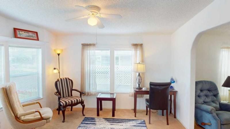 Discover easy living at 145 Begonia Terrace, a well-maintained 2-bedroom, 2-bath manufactured home for sale in The Gardens, a premier 55+ community in Parrish, Florida. This move-in ready home features an open-concept floor plan, perfect for comfortable living and entertaining. The spacious living and dining areas flow seamlessly into the kitchen, offering a bright and airy feel throughout. At the front of the home, you'll find an inviting sitting room-ideal as a sunroom, reading nook, or hobby space. The primary bedroom includes a private en-suite bathroom, while the guest bedroom is located conveniently near the second full bath. Additional features include a covered carport, attached storage shed, and low-maintenance landscaping. Whether you're looking for a full-time residence or a seasonal Florida retreat, this home delivers both functionality and charm. As a resident of The Gardens in Parrish, you'll enjoy full access to The Palm Lake Club, the community's social and activity hub. Amenities include a resort-style heated pool, hot tub, outdoor kitchen, fitness center, billiards room, tennis and pickleball courts, shuffleboard, and a calendar filled with social events and gatherings. Located near shopping, dining, and Gulf Coast beaches, this home offers the best of Florida retirement living. Don't miss your chance to own a slice of paradise in one of Parrish's most desirable 55+ manufactured home communities. - Schedule your private showing at 145 Begonia Terrace today and experience The Gardens lifestyle firsthand!