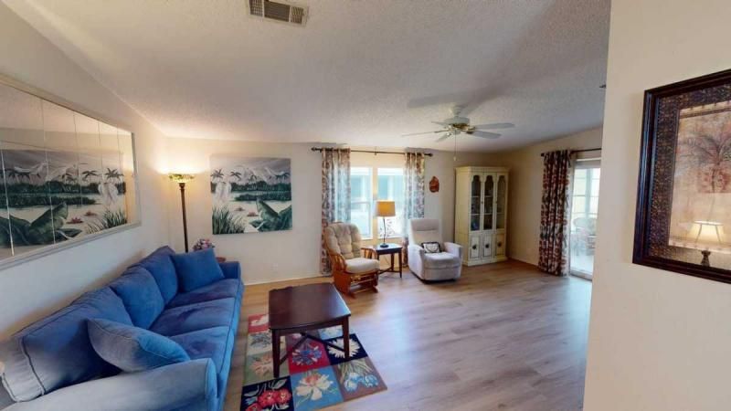 Discover the charm and comfort of 155 Palm Boulevard, a beautifully maintained 2-bedroom, 2-bath manufactured home located in The Gardens of Parrish, a premier 55+ community known for its vibrant lifestyle and resort-style amenities. This home stands out with rare features that are hard to find in the neighborhood - a private garage, a serene water view, and a spacious patio that's perfect for relaxing mornings or entertaining under the Florida sun. Inside, you'll find thoughtful upgrades that enhance both form and function, including updated flooring and stylish touches throughout the open-concept living spaces. Whether you're enjoying the ride on YOUR FREE INCLUDED GOLF CART, view from your patio or heading out to one of the many events at The Palm Lake Club, you'll find that life here is all about connection and community. The Gardens offers a full calendar of social activities, along with access to amenities such as a heated pool, fitness center, billiards room, tennis courts, pickleball, shuffleboard, and a beautiful lakeside fire pit and outdoor kitchen. Live the lifestyle you've been dreaming of in a home that offers comfort, style, and a touch of the exceptional.
