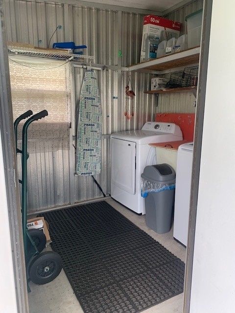 Interior Features This beautiful cottage style fully furnished 2/2 home is a must see! Move in ready call now for your tour! It has an open concept living area with lots of cabinets in the kitchen with all white fridge, stove and dishwasher. California shutters in the living room adds to the charm this home has. plenty of seating in the open space ready for hosting friends. The floors and the decor adds to the cottage feel, with cottage style shutters on the outside of the home. It is a large corner lot giving you privacy on the end side! There is a screen room under the carport with a storage shed with laundry machines.