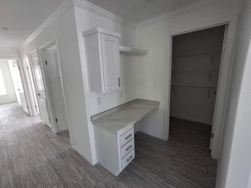 Discover the perfect blend of style, comfort, and affordability in this nearly completed new construction home in a sought-after Melbourne 55+ community. Ready for your offer-act quickly to make it yours! Featuring 3 spacious bedrooms and 2 modern bathrooms, this home offers an open, inviting floor plan designed for contemporary living. The kitchen boasts a new central island with sink, elegant fluted glass cabinets, a state-of-the art appliance package, and stylish pendant lighting. A convenient work desk sits just off the kitchen near the laundry area. Natural light floods the space through numerous windows, complemented by recessed lighting and ceiling fans for a bright, airy feel.