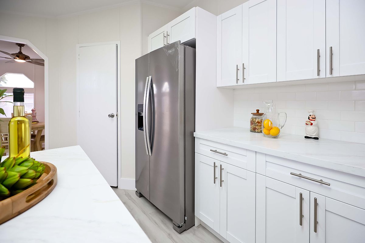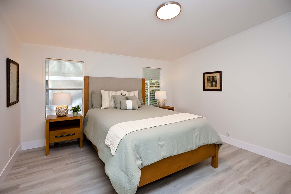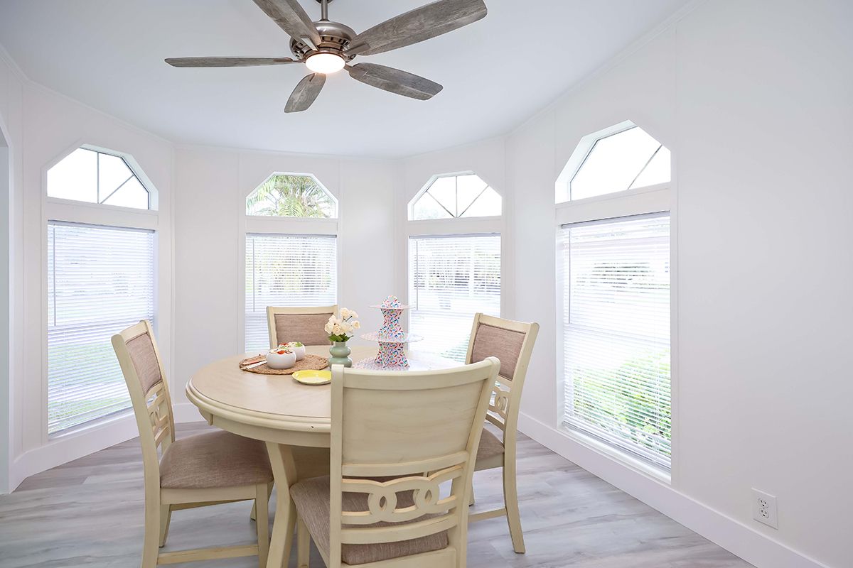 Sitting pretty behind a row of hedges that border its exterior walls, ‘Hedgerow Hideaway’ is a relaxing haven set in the midst of South Florida’s lush greenery. This spacious home, which is located on a corner lot, has a large living and dining area with beautiful new ash toned hardwood laminate flooring throughout that gives it glamorous appeal. Windows on opposite walls invite in plenty of natural light and provide pleasant cross ventilation. All windows are fitted with mini-blinds for privacy. Two elegant chandelier-fans in the living and dining areas lend an air of sophistication. A small partition wall separates the formal seating area from a large kitchen, which has bright white cabinets and matching new stainless steel appliances that include a side-by-side refrigerator (with door-through ice), dishwasher, smooth top range and built in microwave. Gorgeous quartz counter tops offer ample work space, while gorgeous sink with goose neck faucet are stylish and practical additions. A center island offers added counter space and can doubles as a snack counter. The sky light overhead is an interesting architectural feature, as are fixed pane arches above the windows in the adjoining breakfast room. All bedrooms feature beautiful hardwood laminate flooring. The master has a large walk-in closet and an en suite bath featuring an over-sized roman bathtub and separate his & hers basins with ample storage cabinetry underneath. ‘Hedgerow Hideaway’ is dripping with curb appeal. Lovely landscaping includes a lush lawn, pretty manicured hedges, tropical foliage and mature trees. The home's pale yellow siding, sloping shingle roof and decorative shutters are as pretty as a picture. Finally, like all homes in this desirable lakeside community you will appreciate off-street covered parking, central air and heat, your own outdoor storage shed, and access to the community's extensive recreational amenities including fitness, tennis, basketball, putting green, clubhouse, sauna, relaxation room, yoga studio, heated pool complex, lake recreation and more.