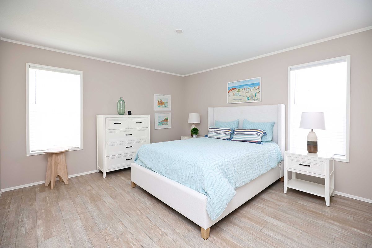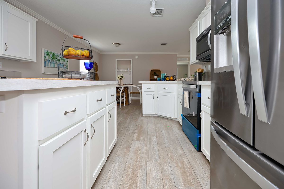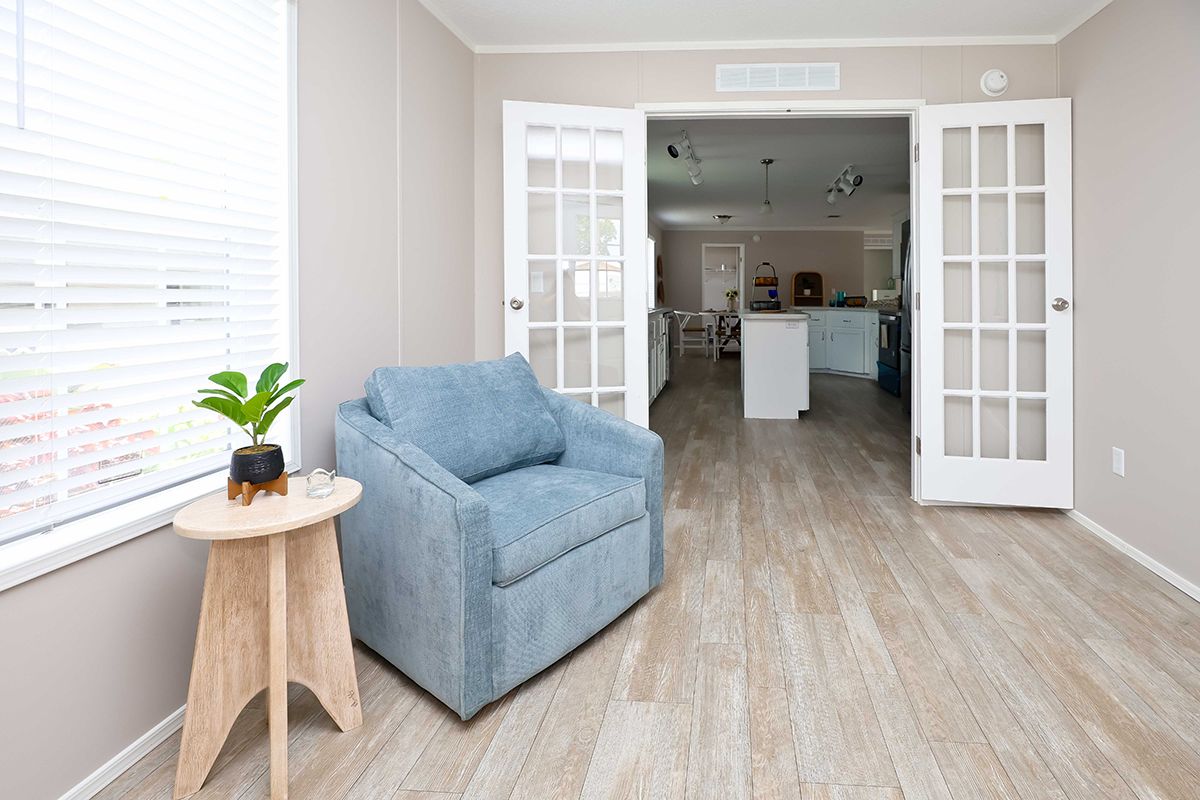 Linenwood Lodge is a beautifully finished, brand-new home offering effortless comfort, calming design, and thoughtful upgrades throughout. Freshly delivered and never lived in, this residence includes a builder warranty, brand-new roof, new central air and heat, and a full suite of new stainless-steel appliances, including a built-in microwave, providing true peace of mind for the next owner. The charming half porch enhances curb appeal while creating a welcoming place to sit, relax, and enjoy casual social interaction with neighbors strolling through the community or walking their dogs. Adding further architectural interest, a graceful bay window with three pre-treated mini-blind windows enhances the home’s exterior character while flooding the interior with natural light. Inside, the home is styled in soothing linen, beige, and soft neutral tones, complemented by wide-plank flooring, elegant crown molding, coordinating baseboard trim, and beautifully finished smooth walls in the main living areas that together create a polished, thoughtfully completed look. The living room is anchored by three visually striking windows that create an open, airy atmosphere, while mini-blind window treatments throughout provide immediate privacy and a move-in-ready finish without the urgency of purchasing window coverings. The kitchen is both bright and contemporary, featuring solid wood shaker-style cabinetry, expansive counters, a large center island with a stylish pendant light, and modern track lighting that adds both function and visual interest. Just off the kitchen, the versatile den offers exceptional flexibility, functioning beautifully as a grand formal entry through double French-paned glass doors, a cozy den or TV room, a home office, or a guest room when needed. The flexible layout includes three bedrooms plus this multi-purpose den, allowing the home to adapt easily to changing needs. The primary suite feels like a private retreat, featuring dual his-and-hers sinks, a luxurious Roman soaking tub, and a separate shower, creating a truly spa-like experience at home. Bedrooms are calm and spacious, bathrooms are crisp and new, and every surface reflects the freshness and quality of a truly new home. Finally, like all homes in this lovely lakeside community, you will appreciate central air and heat, your own outdoor storage shed, and access to the community’s extensive recreational amenities including fitness, tennis, basketball, shuffleboard, putting green, clubhouse, sauna, relaxation room, heated oversized pool complex, lake recreation and more. To schedule a tour of this lovely home, contact (954) 376-4141. Ask for "Linenwood Lodge", #9/14-MODEL. View this listing here - https://www.rexmerevillage.com/models/details/3/92-linenwood-lodge-914-model.html