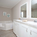 -Creamy yellow color exterior. -Natural linen flooring (a little more coastal but doesn't have the white that barnwood does.) -Popular gray walls. -New Stainless steel appliances including 25.6 French door Stainless steel fridge. -White shaker wood cabinets in Kitchen. -Master bath has double sinks and a roman soaking tub.