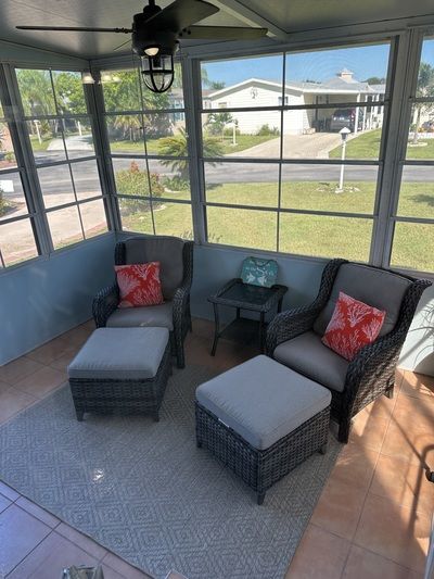 Absolutely beautiful home on a corner lot that needs nothing. Metal roof less than a year old. Kitchen features brand new cabinets and countertops & 2 pantries and opens to living area.. Home has new doors, windows and all electrical and plumbing has been updated. AC was replaced in 2020 and home also has new duct work. Bedrooms feature walk in closets and bathrooms offer new vanities and tall toilets. Enjoy all Florida has to offer with your 2 screened Florida rooms in this much sought after Tropical Isles 55+ community. The community includes clubhouse, billiards room, gaming room, heated pool, hot tub, tennis courts, pickleball, bocce, horseshoes, shuffleboard, and many organized activities. Don't miss the opportunity to call this home.