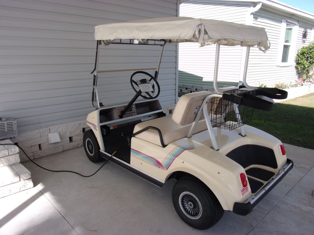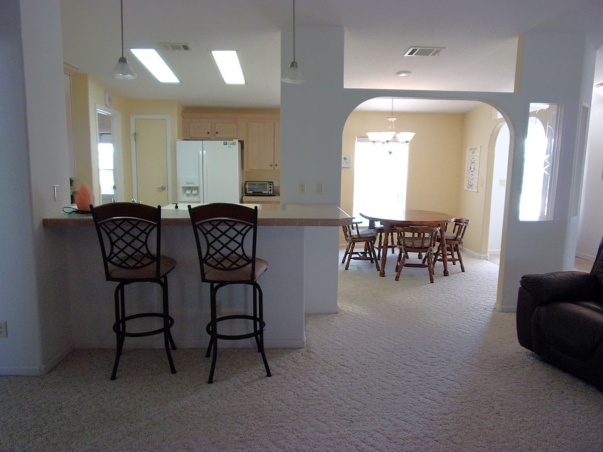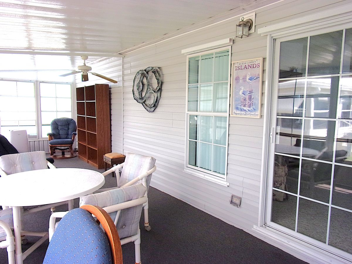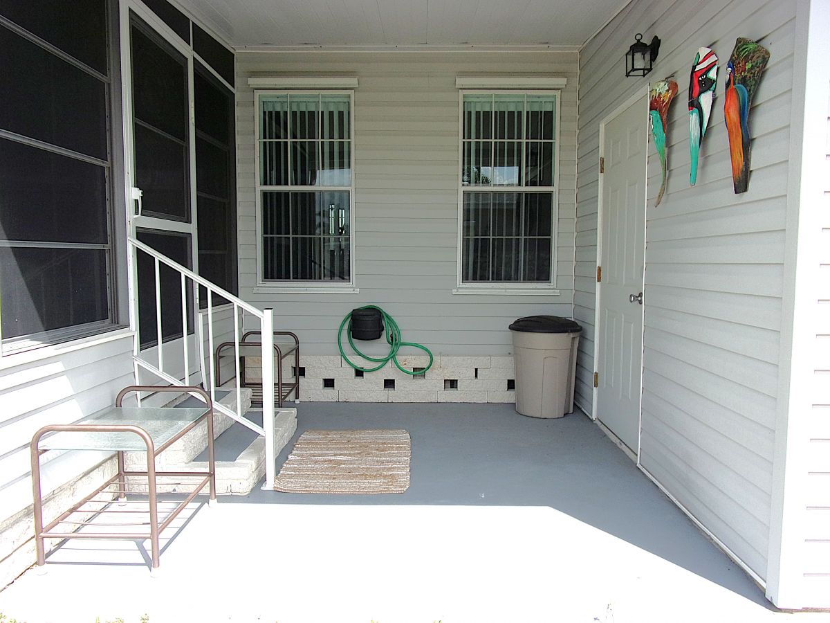 2007 3 BR 2 Bath furnished, open concept home with a double side by side carport. Sits next to a south facing empty lot. Cathedral ceilings and fans. Spacious kitchen and dining room with an open view of the living room. Vinyl flooring in kitchen, ceramic tile in bathrooms with wall to wall carpeting throughout rest of the home. Nice size master bedroom with bathroom attached has a spacious shower and double sinks. Nice size guest bedroom with separate full bath. Third bedroom with French double doors presently being used as an office. Very large rear lanai (286 sq ft) with vinyl windows and screens. Nice size shed (13x10). Shingled roof 2021. AC 2007. Full set of shutters, water softener, recumbent bike and three wheel bike included. Golf cart with a full set of golf clubs and a bag of golf balls also included. Free golf for the rest of 2025 with the purchase of this home!
