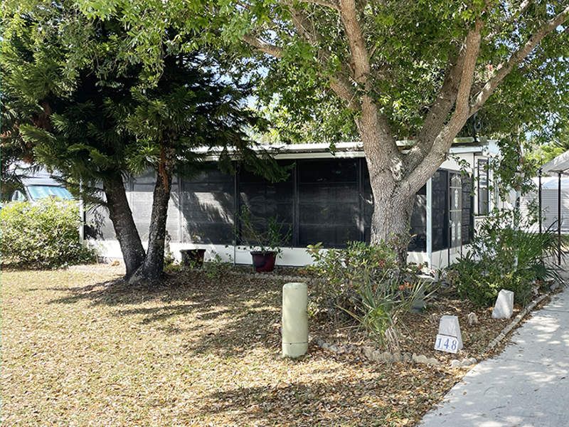 This 700 square feet Park Model home at Bonita Terra in Bonita Springs, FL is a charming 1.5 bedroom, 1 bathroom retreat. Built in 1983 by Mall, this cozy home boasts a spacious living area, a well-appointed kitchen, and a comfortable bedroom with an additional half-bedroom that could be used as a home office or guest room. The exterior features a lovely screened-in lanai, perfect for enjoying the Florida sunshine, as well as a convenient shed for extra storage. Leased land. Nestled in the community of Bonita Terra, residents enjoy the peace and tranquility of this well-maintained neighborhood. The community features lush landscaping, a clubhouse for social gatherings, and a sparkling swimming pool for residents to cool off on hot summer days. With close proximity to local beaches, shopping, and dining options, Bonita Terra offers the perfect blend of relaxation and convenience for residents looking for a laid-back lifestyle in beautiful Bonita Springs, FL.