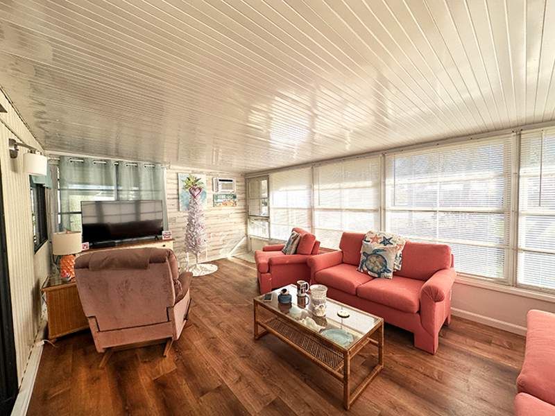 The 944 square feet manufactured home in Bonita Terra features a modern design with 2 bedrooms and 1.5 bathrooms. Built in 1986 by Bays, this home offers a cozy living space with a functional layout. The interior boasts updated flooring, spacious closets, and a well-appointed kitchen with ample storage space. Some of the homes features include: 8x8 utility room with washer and dryer, AMS roof-over (2021), newer carport, upgraded vinyl siding, new flooring, wi-fi thermostat. A 2022 Icon 4-passenger golf cart is available, but not included in the listed price. Leased land. Situated in the vibrant community of Bonita Terra in Bonita Springs, FL, residents enjoy a range of amenities such as a clubhouse, swimming pool, and fitness center. The community offers a variety of social activities and events for residents to engage with their neighbors and build a sense of community. With lush landscaping and well-maintained grounds, Bonita Terra is a peaceful and serene place to call home.