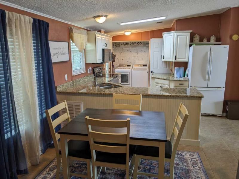 PRICE REDUCED $94,900 This beautiful fully furnished water front home features many upgrades, including air conditioner and duct work replaced in 2024, a newer roof replaced in 2021, newer windows, water softener system, water heater with recirculating hot water pump and storm doors all replaced in 2020. This home has an enclosed rear lanai and open covered patio on the lake side. It also has a double carport with 2 front entrances. Tile floors with carpet in the bedrooms. All appliances including the washer and dryer are included. The kitchen has granite counter tops and the wood cabinets with quite closing drawers. The utility shed has all the things you need, a pressure washer, many tools. This is a wonderful home and a great value.This home just came on the market, an extremely nice home with fantastic views of the natural looking lake from the lanai to wake up to and having your morning coffee to watch the birds, and other animals. This modestly sized home has all of the amenities you would need, but less home to clean. This home has an open floorplan with a cozy comfortable feeling inside. The double carport can fit two automobiles easily, or maybe an auto and a future golf cart? Endless possibilities await you when you enter this home. Additionally the kitchen appliances including stove, microwave and dishwasher are Maytag which included a transferable 10-year warranty, the refrigerator is a Samsung side by side with ice maker plus much much more quality items in the home. Stop by or call for an appointment to see this great value of the home and site views. This home will not last long, stop in or call today!