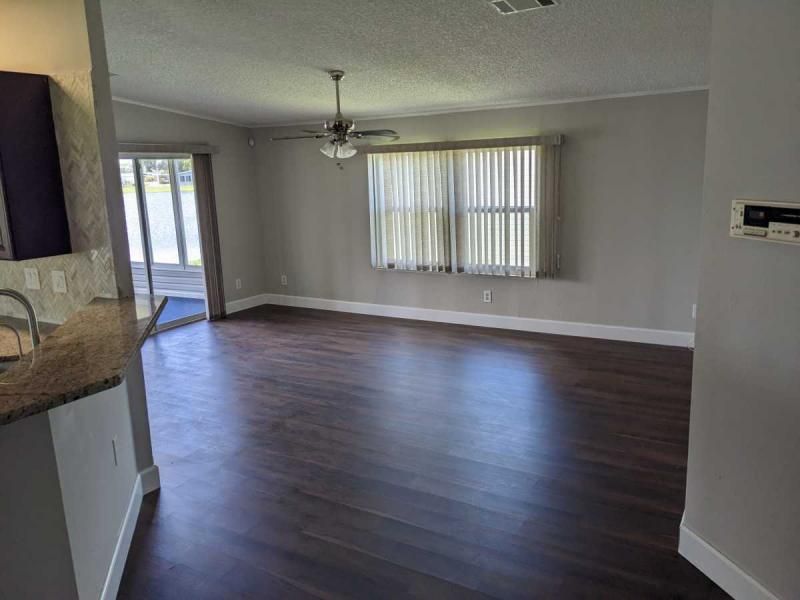 What a beautiful lake view this home has! This recently remodeled home has all that you have been looking for. This beautiful 2-bedroom and 2-bath home features stainless steel appliances, s recently installed fancy walk in bath/shower unit, lake views from the kitchen, dining room, livingroom and the very large windowed lanai. This is what lake front living should be. This home has also has a new metal roof, vinyl siding, replacement windows installed within the past two years as well as new laminate throughout. A short walk to the community center and all of our amenities.