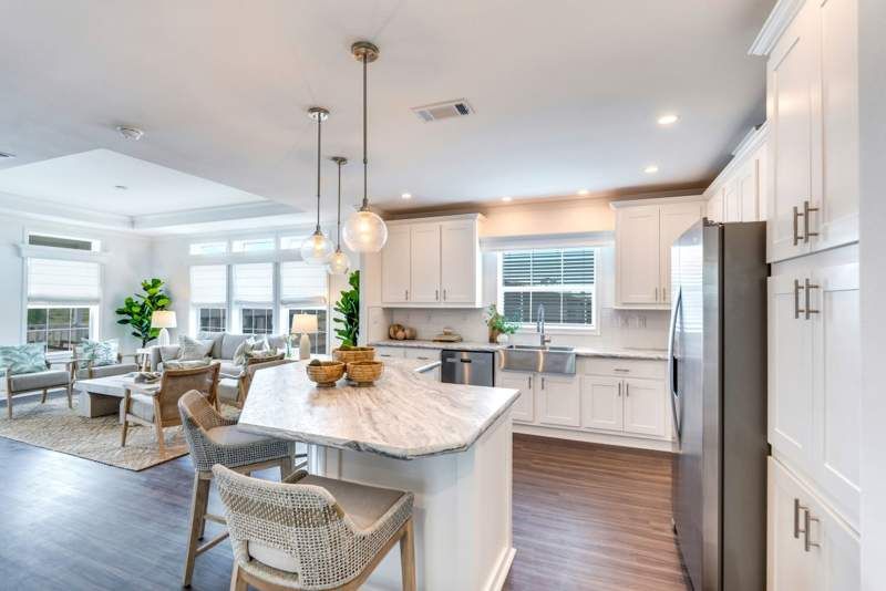 Introducing The Coral Coastal Home, a brand new 2-bedroom, 2-bathroom residence offering 1,280 sq ft of thoughtfully designed living space. This home features a covered front porch, ideal for relaxing outdoors, and an open concept floor plan that enhances the spacious feel throughout. Inside, luxury vinyl plank flooring flows seamlessly across the living areas, complemented by tray ceilings and crown molding for added elegance. The kitchen is equipped with beautiful hardwood shaker cabinetry, a ceramic tile backsplash, and high-definition countertops, along with a kitchen island that provides ample storage space. Stainless steel electric appliances and a farmhouse kitchen sink add to the home’s modern charm. The main bathroom includes a walk-in ceramic tile shower, while both bathrooms boast framed mirrors and satin & brushed nickel hardware. Designer pendant lights illuminate the home’s carefully curated finishes. Built to the highest Wind Zone 3 (WZ3) standards, The Coral Coastal Home combines luxury, durability, and style for the ultimate living experience. Introducing the brand-new Osprey Bay, a premier 55+ community located in the sun-drenched City of Palms, where sparkling waves meet white sand. Nestled within the heart of Fort Myers, Osprey Bay offers unparalleled access to everything this vibrant city has to offer. From the serene shores of Sanibel Island and stunning beaches to an abundance of top-tier restaurants, retail, museums, and coastal lifestyle experiences, this home provides a gateway to the very best of Fort Myers and beyond. Whether you're seeking relaxation by the water or exploring local attractions, Osprey Bay places you at the center of it all, offering a true taste of Florida’s idyllic coastal living. *Model home starting price subject to change*