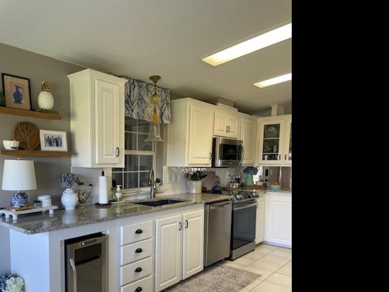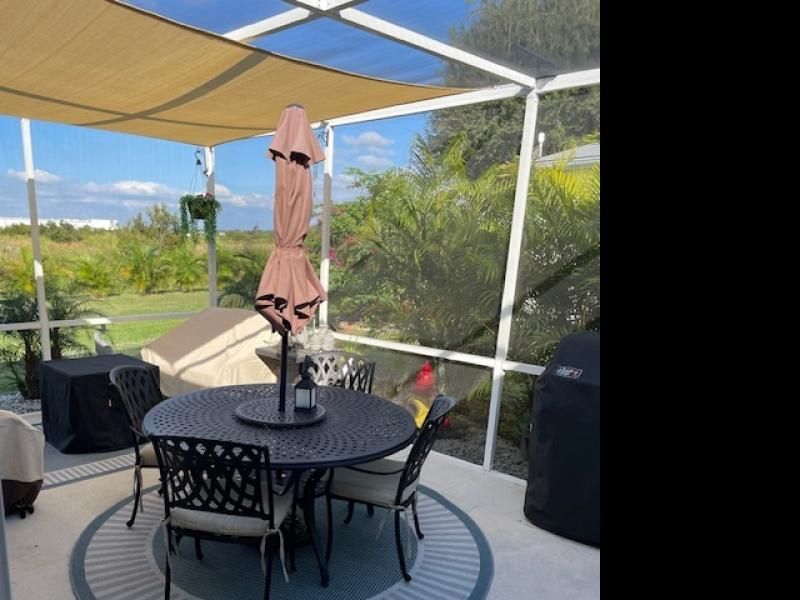 Welcome to this beautifully updated home located in a vibrant 55+ community in sunny Florida. This thoughtfully designed residence features two comfortable bedrooms plus a versatile den-ideal for a home office, hobby space, or guest room-along with two full bathrooms for added convenience and ease of living. Inside, you'll find fresh upgrades throughout: sleek new flooring, modern fixtures, and the living and dining area that flows seamlessly for both relaxation and entertaining. The kitchen is stylish and functional, equipped with updated cabinetry, solid-surface countertops, and all-new stainless-steel appliances (2022). The primary suite is a true retreat, complete with an en-suite bathroom featuring contemporary finishes, a walk-in shower, and ample closet space. The second bedroom is bright and airy, and the second full bathroom offers the same modern styling found in the rest of the home. This home also has a metal roof 2021, New Screened lanai 2023, New Ac 2024. Outside, a private screened lanai provides a perfect spot for morning coffee or evening soirees, overlooking a low-maintenance landscaped yard. Community amenities heighten the lifestyle: enjoy resort-style swimming, fitness center, social clubhouse, walking paths, and plenty of friendly neighbors who share your active, age-qualified lifestyle. With its updated interior, thoughtful layout, and desirable location within a welcoming 55+ community, this home offers an exceptional blend of comfort, convenience, and leisure.