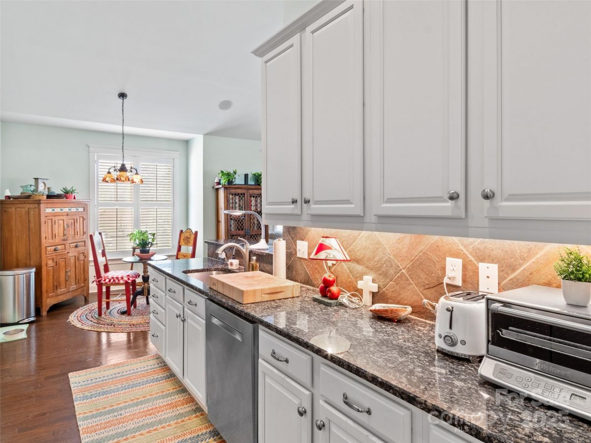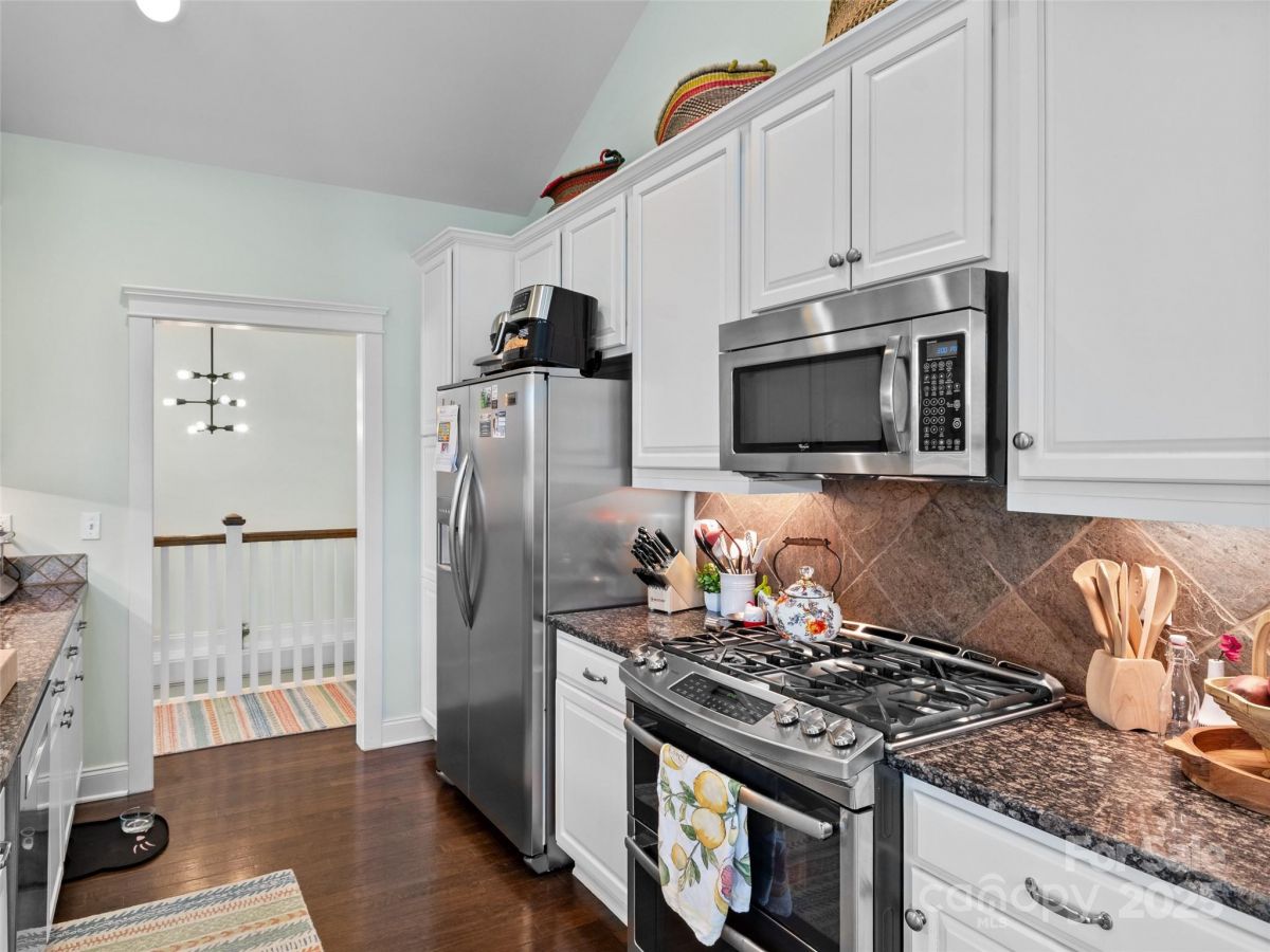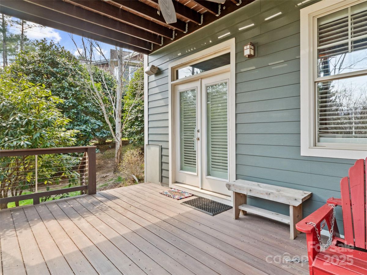 Rare find! End unit in gated Rockfish Cove in desirable Biltmore Lake. Lifestyle community with private 62 acre lake, miles of walking trails, non motorized boating, clubhouse, tennis/pickleball and basketball courts and more! Move-in ready home loaded with upgrades with open floorplan, 9'+ and cathedral ceilings, stone gas FP and year round views! Main level primary suite with walk in closet plus en suite full bath with double sinks, walk in tiled shower and garden tub. Open kitchen w/ Granite countertops, stainless appliance package and eat in bar. 2 guest bedrooms on lower level plus office/den on main level. On site level parking plus 2 car garage and plenty of guest parking at street. Townhomes are on a double culdesac street overlooking nature preserve at end of lake. Large covered porch, 2 rear decks with Trex flooring. Largest plan available!!