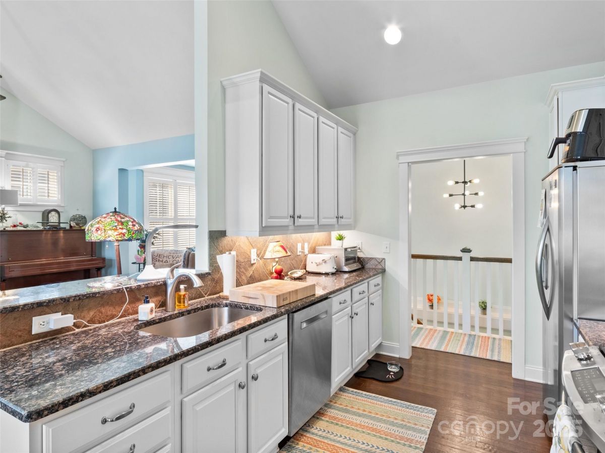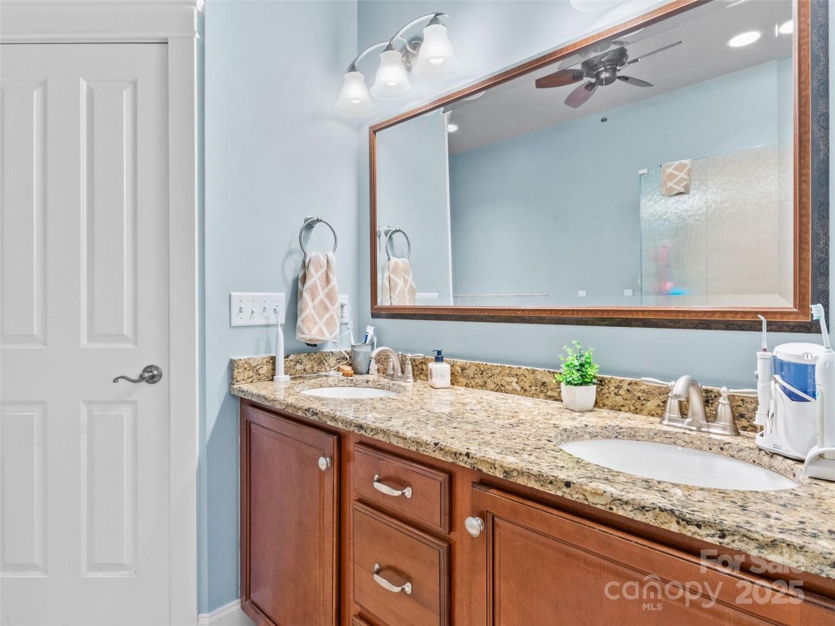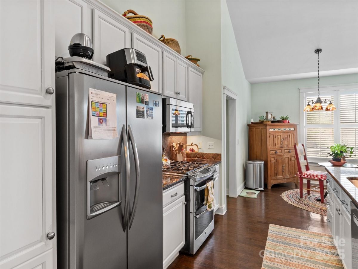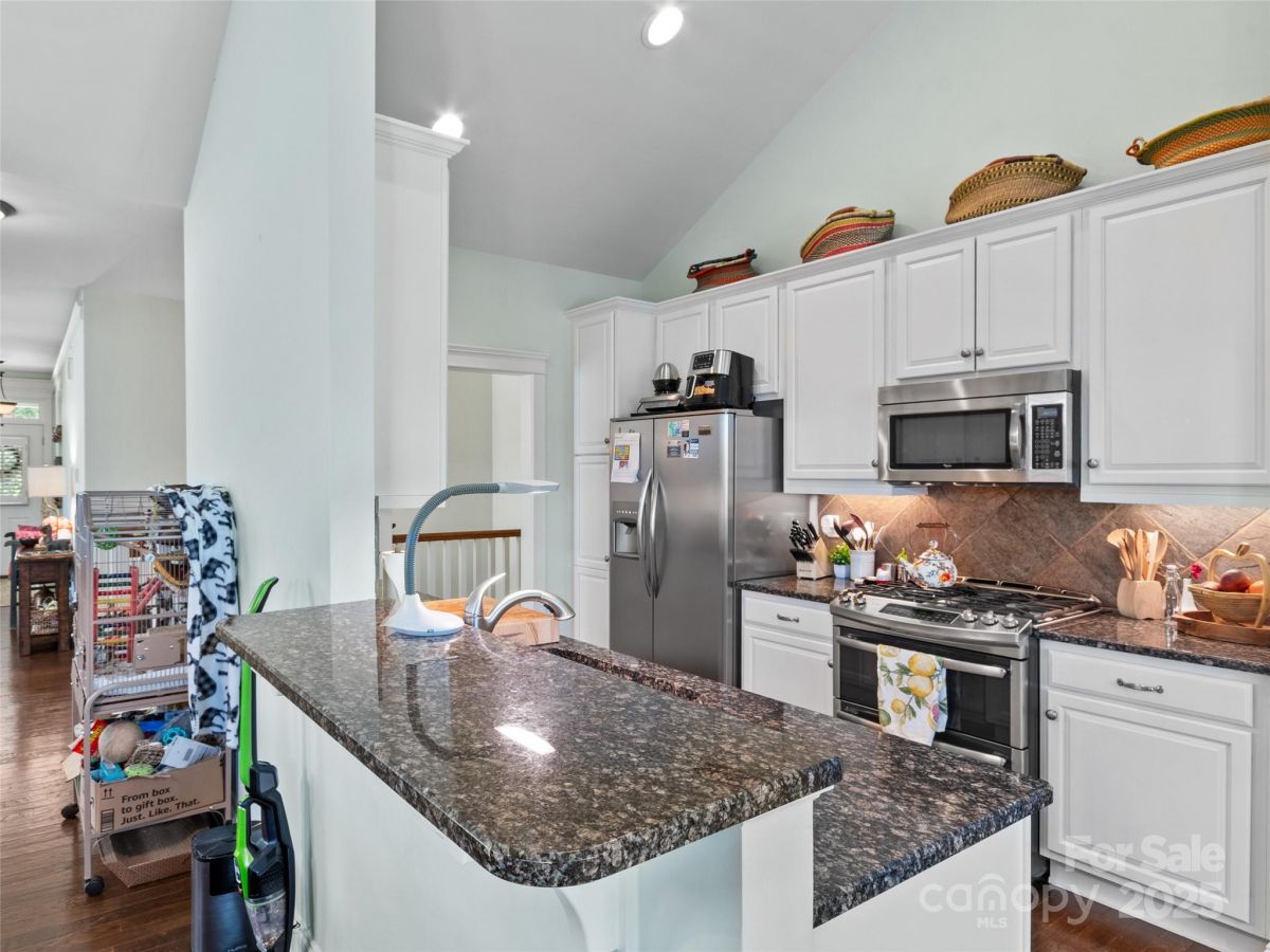 Rare find! End unit in gated Rockfish Cove in desirable Biltmore Lake. Lifestyle community with private 62 acre lake, miles of walking trails, non motorized boating, clubhouse, tennis/pickleball and basketball courts and more! Move-in ready home loaded with upgrades with open floorplan, 9'+ and cathedral ceilings, stone gas FP and year round views! Main level primary suite with walk in closet plus en suite full bath with double sinks, walk in tiled shower and garden tub. Open kitchen w/ Granite countertops, stainless appliance package and eat in bar. 2 guest bedrooms on lower level plus office/den on main level. On site level parking plus 2 car garage and plenty of guest parking at street. Townhomes are on a double culdesac street overlooking nature preserve at end of lake. Large covered porch, 2 rear decks with Trex flooring. Largest plan available!!