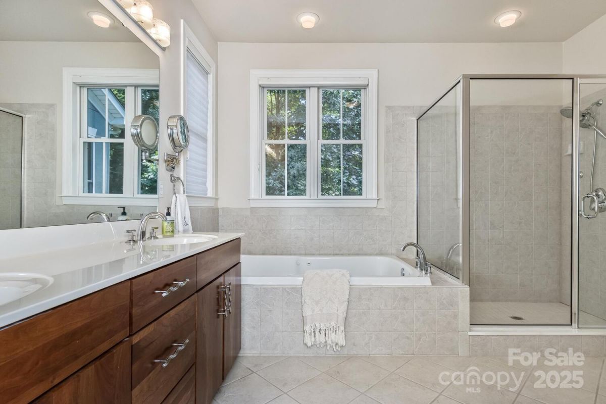 NEW ROOF AND NEW HVAC SYSTEM PAID AT CLOSING FOR THE BUYER!! Enjoy lakefront living just steps from Biltmore Lake and its scenic trails! This home features 4 bedrooms, 2.5 baths, and a spacious open floorplan. Highlights include a large living room with a gas-log fireplace and ceiling fan,granite countertops,a beautiful backsplash, breakfast bar, and tile floor, as well as a generous formal dining room with wood floors and a walk-in pantry.The luxurious primary suite boasts custom walk-in closets, a large bath with doublevanity,soaking tub,and walk-in tile shower. Other features include a split bedroom plan, 9’ ceilings throughout, a study, ample storage, covered front porch, covered back deck with winter views of Biltmore Lake.Situated on a cul-de-sac, this home is a short walk to the lake!! . Additional amenities include a boathouse,swim beach,tennis/pickleball/basketball courts,playground,miles of trails circling the lake,clubhouse,community fire-pit Home warranty included.