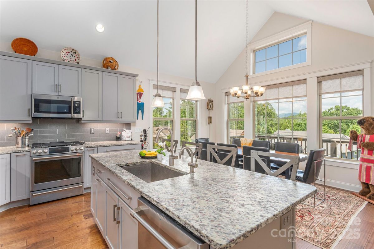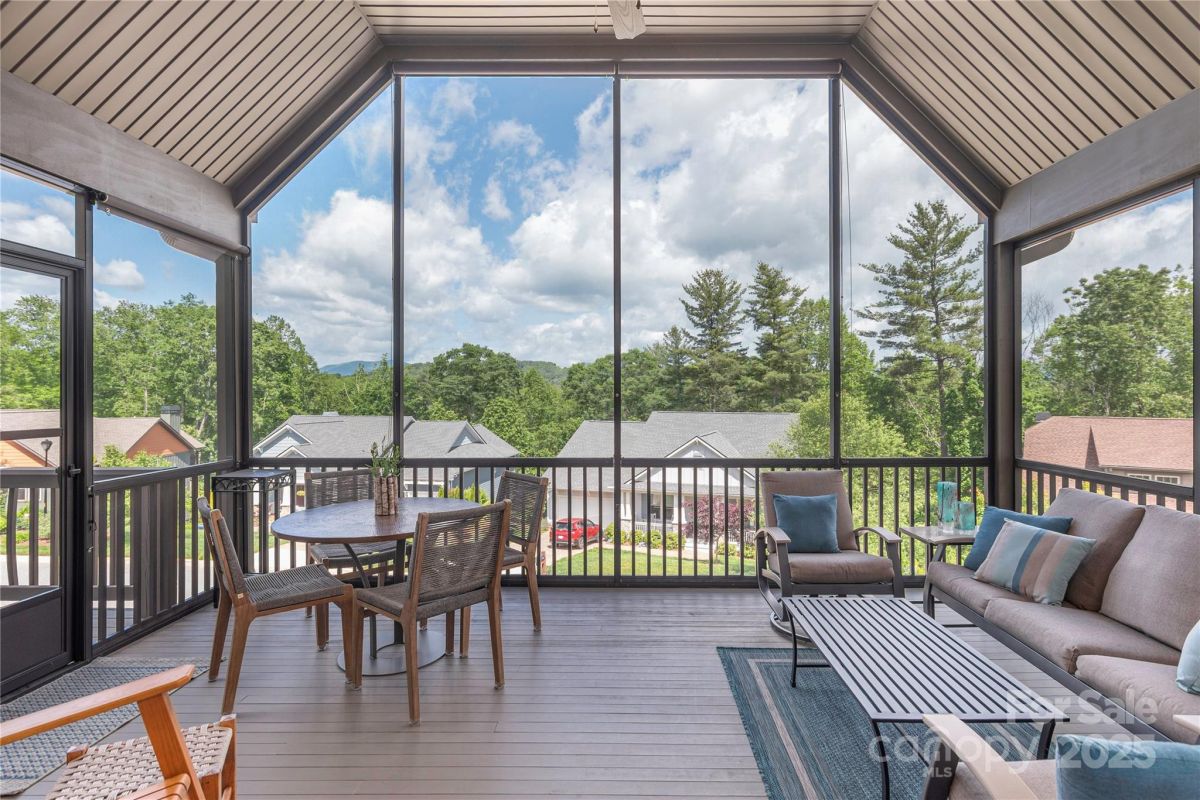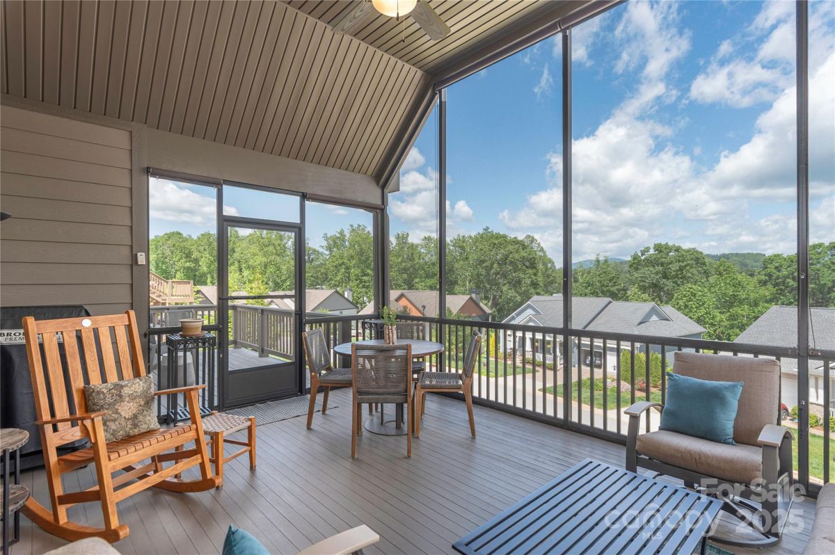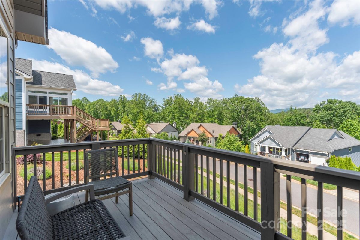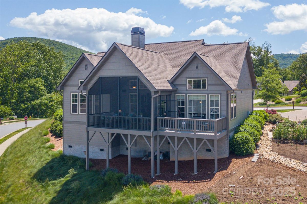 Elevated mountain living awaits in this beautifully upgraded, 3BR/3BA Biltmore Lake home, where long-range views and modern comfort meet. A sprawling open layout, vaulted ceilings, and hardwood floors throughout the main level create a refined and spacious interior. Two bedrooms, including the primary suite, are conveniently located on the main level, while a private guest suite upstairs offers added flexibility. The chef’s kitchen features leathered granite counters, sleek appliances (including 6 burner gas range w/ warming drawer) & flows into a sunlit dining area. Entertain with ease on the vaulted screened porch and extended deck overlooking landscaped grounds. Outside, enjoy a custom pétanque court with spectator seating and weathering steel raised garden beds. With a heated garage, built-ins, and abundant storage, this home blends style, space, and function. Ideally located in a vibrant mountain community with access to trails, boating, paddleboarding, swimming, and sports.