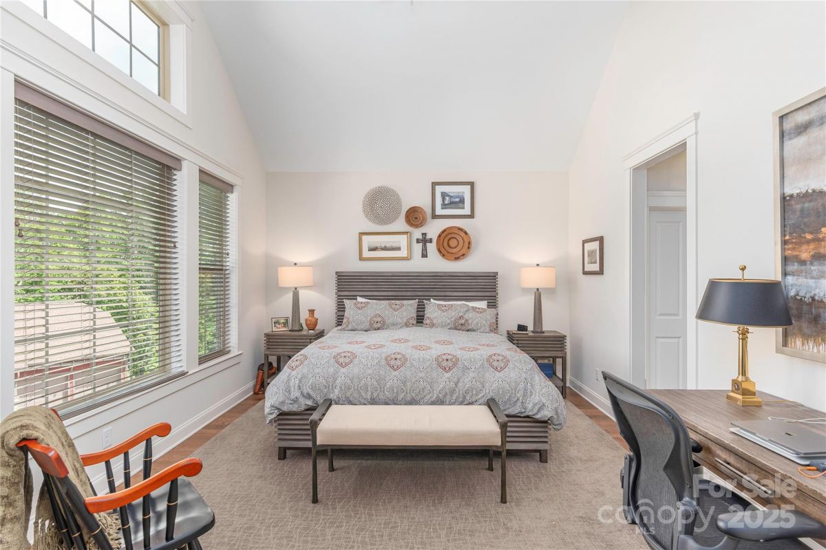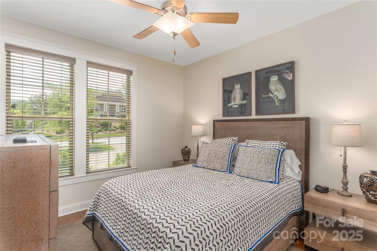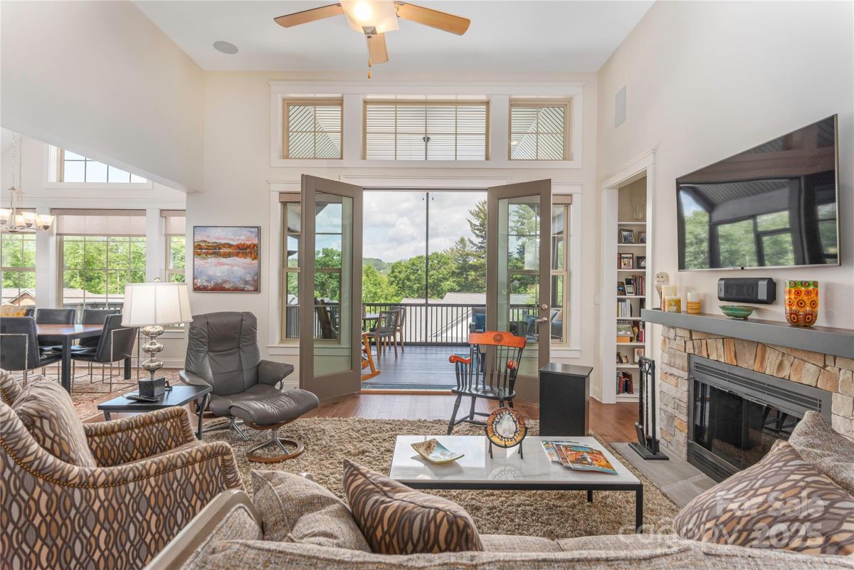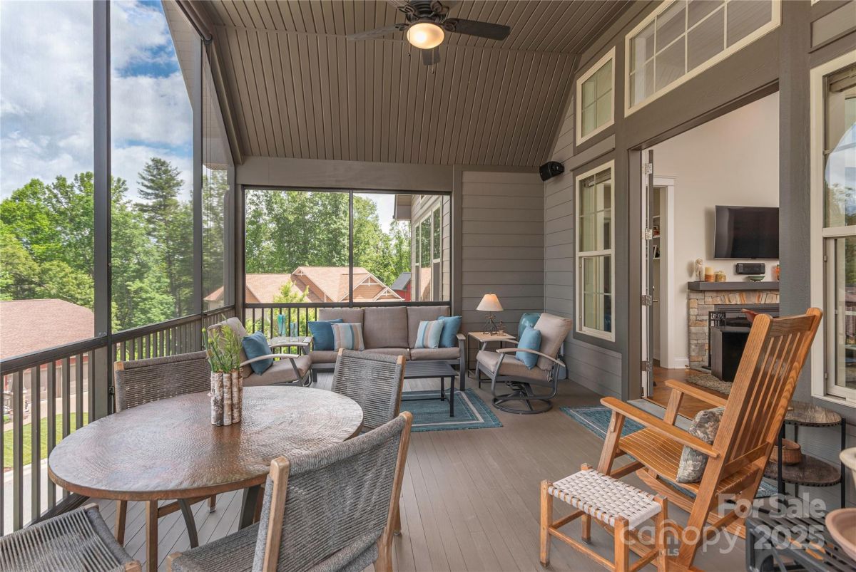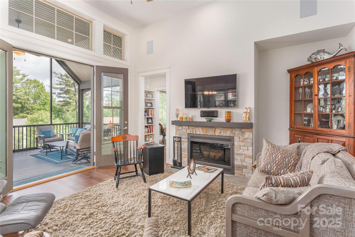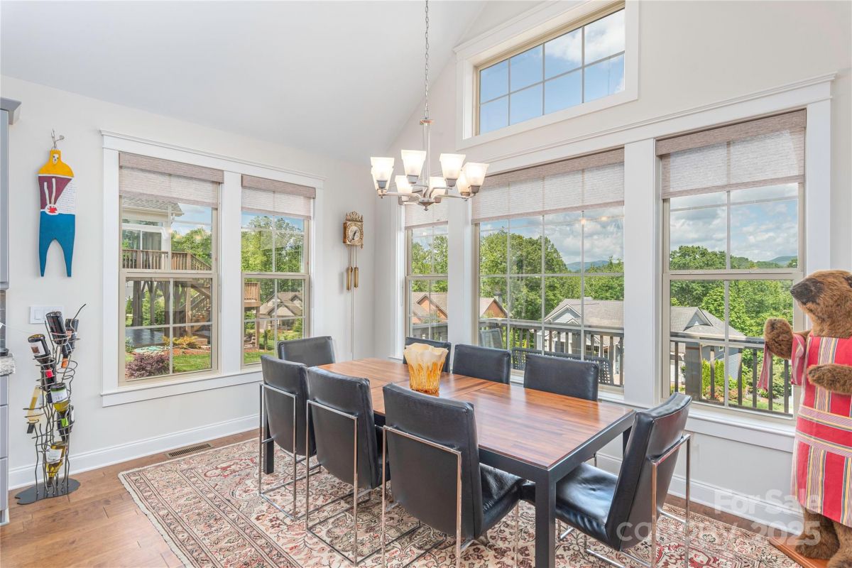 Elevated mountain living awaits in this beautifully upgraded, 3BR/3BA Biltmore Lake home, where long-range views and modern comfort meet. A sprawling open layout, vaulted ceilings, and hardwood floors throughout the main level create a refined and spacious interior. Two bedrooms, including the primary suite, are conveniently located on the main level, while a private guest suite upstairs offers added flexibility. The chef’s kitchen features leathered granite counters, sleek appliances (including 6 burner gas range w/ warming drawer) & flows into a sunlit dining area. Entertain with ease on the vaulted screened porch and extended deck overlooking landscaped grounds. Outside, enjoy a custom pétanque court with spectator seating and weathering steel raised garden beds. With a heated garage, built-ins, and abundant storage, this home blends style, space, and function. Ideally located in a vibrant mountain community with access to trails, boating, paddleboarding, swimming, and sports.