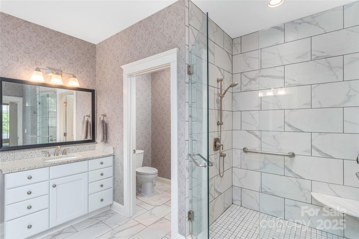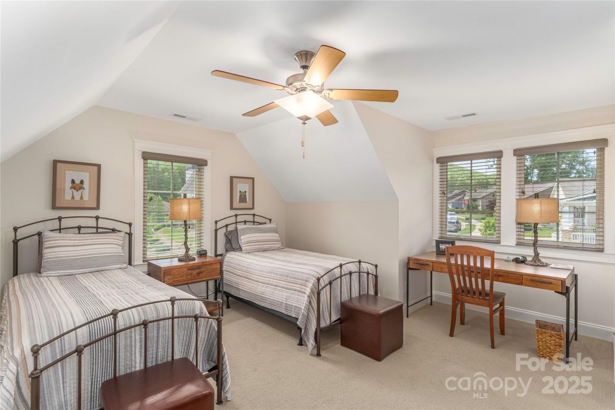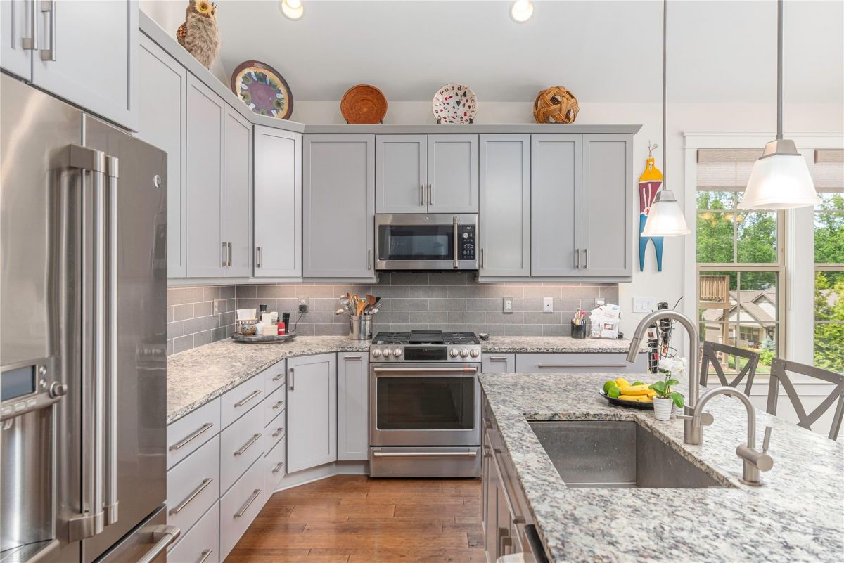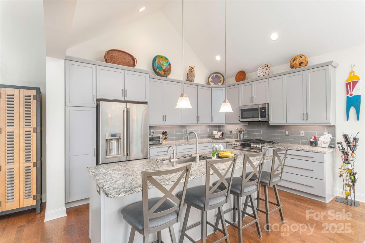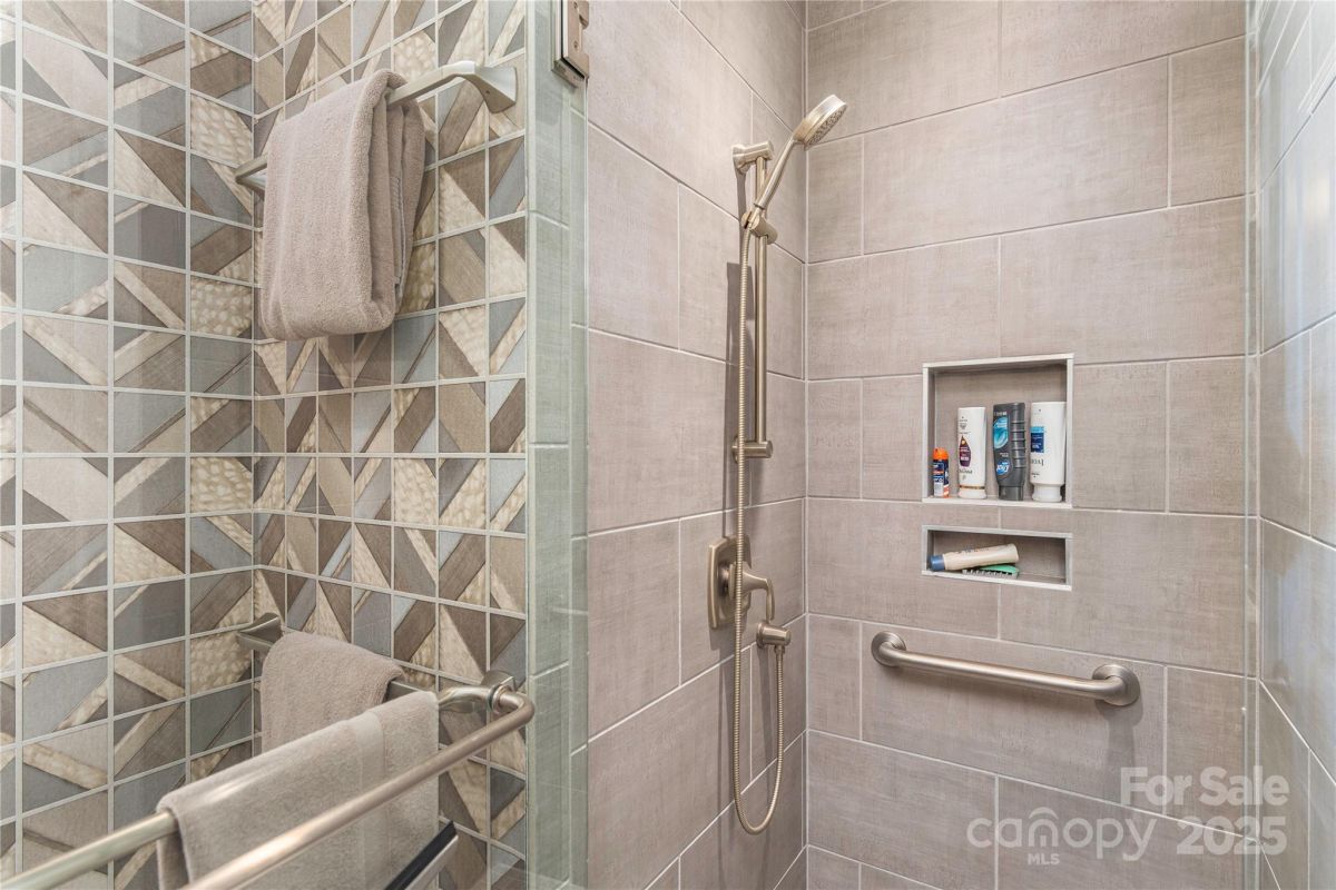 Elevated mountain living awaits in this beautifully upgraded, 3BR/3BA Biltmore Lake home, where long-range views and modern comfort meet. A sprawling open layout, vaulted ceilings, and hardwood floors throughout the main level create a refined and spacious interior. Two bedrooms, including the primary suite, are conveniently located on the main level, while a private guest suite upstairs offers added flexibility. The chef’s kitchen features leathered granite counters, sleek appliances (including 6 burner gas range w/ warming drawer) & flows into a sunlit dining area. Entertain with ease on the vaulted screened porch and extended deck overlooking landscaped grounds. Outside, enjoy a custom pétanque court with spectator seating and weathering steel raised garden beds. With a heated garage, built-ins, and abundant storage, this home blends style, space, and function. Ideally located in a vibrant mountain community with access to trails, boating, paddleboarding, swimming, and sports.