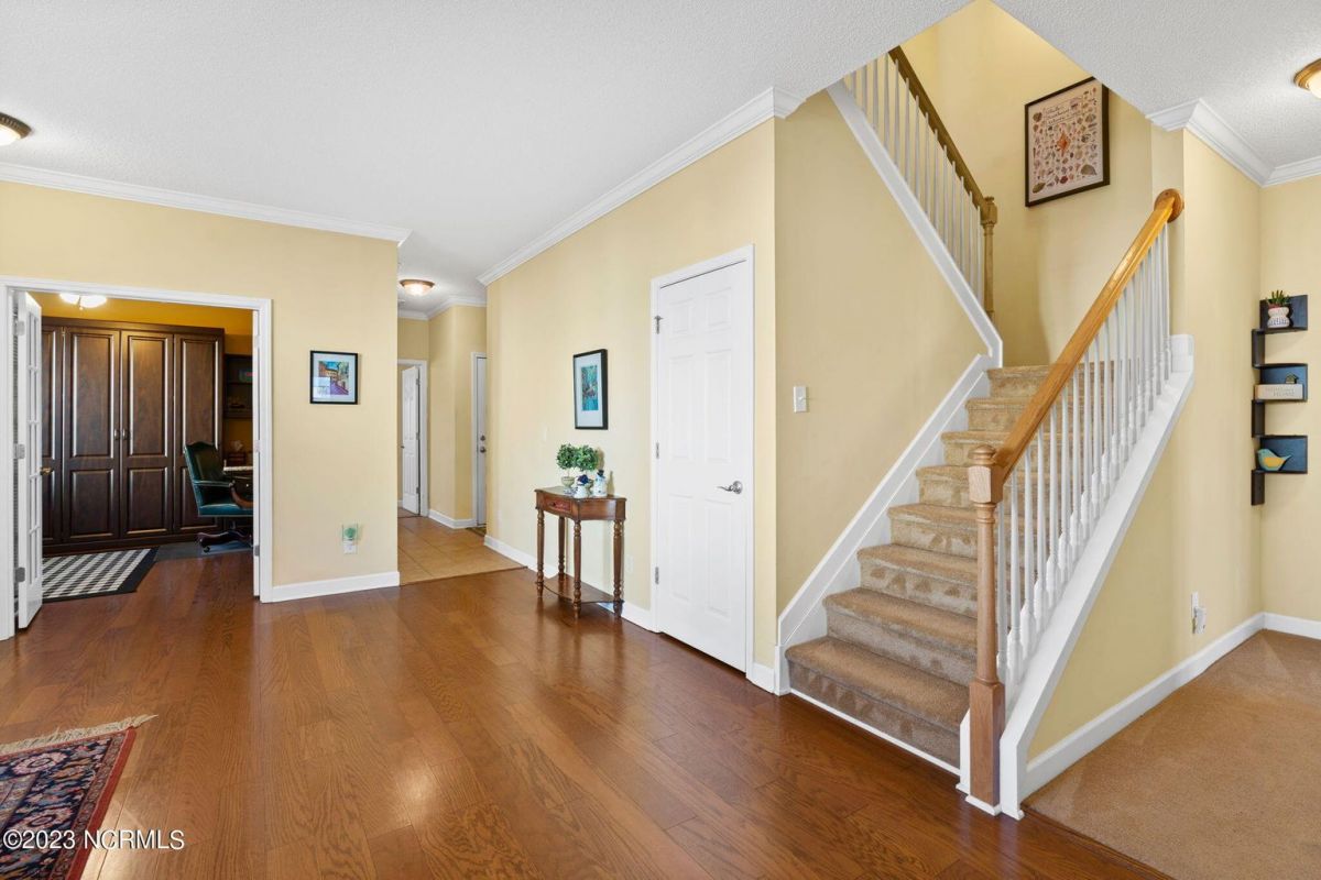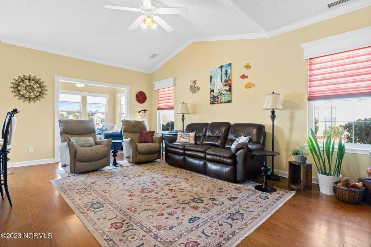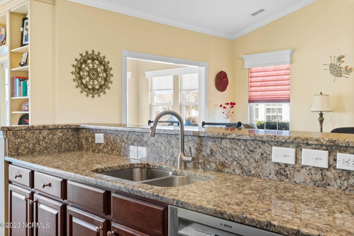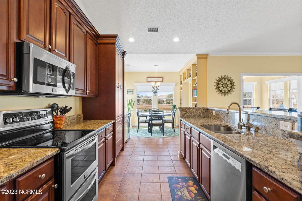 What an amazing opportunity this is to own a home that is the largest duet in Calabash Lakes. With almost 3000 sq ft of casual living, this townhouse style is very low maintenance and its location is just steps from the amenity center where a new salt water pool is being installed. Pond views abound from the street side and the ''relaxing'' side where there is a lovely sun room/sitting area plus the kitchen eating nook. The gourmet kitchen includes granite counter tops, LG, Bosch and Frigidaire high end stainless appliances, double wall over, large pantry, wine cooler & cherry cabinets. Pull out drawers & soft close drawers are such a pleaser!. The counters are extended into the casual sitting area . Wood & tile floors enhance the living & dining areas. One the first floor is a large en suite master with large walk in closet & designed closet shelving, not to mention a walk in shower and soaking tub. The second bedroom is privately on the first floor and set apart with its own adjacent full bath. An additional first floor room offers such a variety. A perfect office with high end built-ins including desk, but it can be used as an extra bedroom with its queen sized murphy bed. All bedrooms are carpeted and freshly cleaned. The second floor is something special.. a sitting area, full bath and another queen/or master bedroom. This duet has a great deal of closet space & attic storage, not to mention a larger two car garage & laundry room. The location of this community is just a mile from the center of the restaurants and shops of Calabash and within 10 to 15 mins of Sunset & Ocean Isle Beach..wonderful powder white family beaches. Near the border of SC it is just 30 mins to many of the Myrtle Beach family offerings . Golf courses are abundant in this area, but if your choice is to watch the wildlife enjoying the pond area, just relax on your patio or sun room. The HOA takes care of everything so just make this your special home. Don't miss this offering!