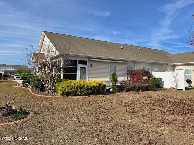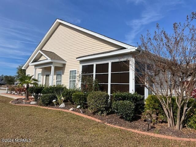 Beautiful townhome with 2 car garage in amenity rich community is located just 10 miles from Ocean Isle Beach, 30 minutes from Myrtle Beach, and Sunset Beach a close 5 miles away. Property overlooks a lovely lake with lots of greenspace and side load 2 car garage. Inside you will find a spacious living room with vaulted ceiling, kitchen with solid surface countertops, refrigerator included along with washer and dryer. Master bedroom has vaulted ceiling and bath has separate garden tub and walk-in shower. 2 other spacious bedrooms and sunroom leading to back patio overlooking the lake where you can watch the wildlife making for a peaceful experience with a roll out awning for those warm summer days. Amenities include community pool, tennis courts, pickle ball court, fitness center, meeting center, etc. Don't miss this one!!