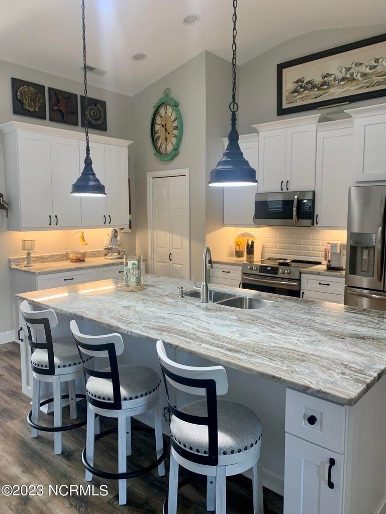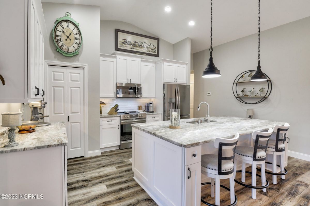 Wow! Completely updated with custom high-end materials, this home is stunning and move-in ready! The main living space boasts luxury vinyl flooring, plantation shutters, newer built-in electric fireplace and new fixtures throughout. The kitchen features high end quartz countertops, large pantry, and island seating. Extra custom cabinets were added for additional storage and space and convenience. All appliances are stainless steel and only 1 year young. The master bedroom includes a walk-in closet, and en-suite bathroom with double sink vanity, and walk-in shower. Plenty of parking with a driveway and 2 car garage. Enjoy the outdoors with your screened patio. Worry-free living with the exterior maintained by the HOA including: lawn care, annual power washing and pest control. Calabash Lakes Homeowners enjoy amenities, such as a fitness center, tennis and pickleball courts and a soon to be completed saltwater pool. Close to the restaurants and shopping in the town of Calabash, you are still only minutes to Sunset Beach and very close to the SC border and all the attractions of the Myrtle Beach area.