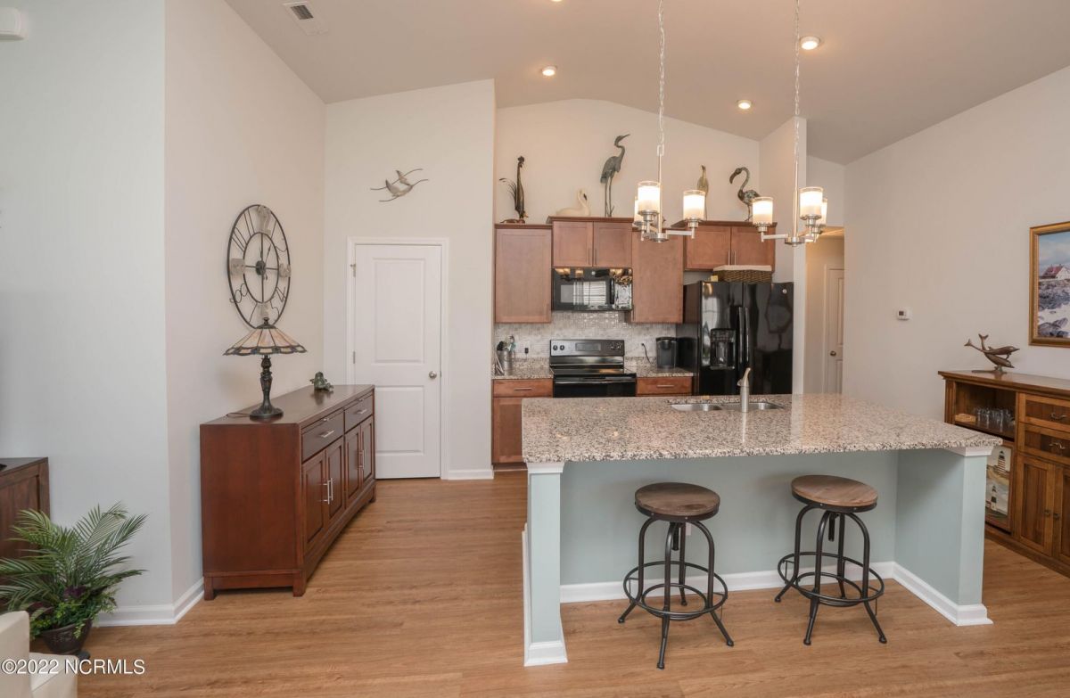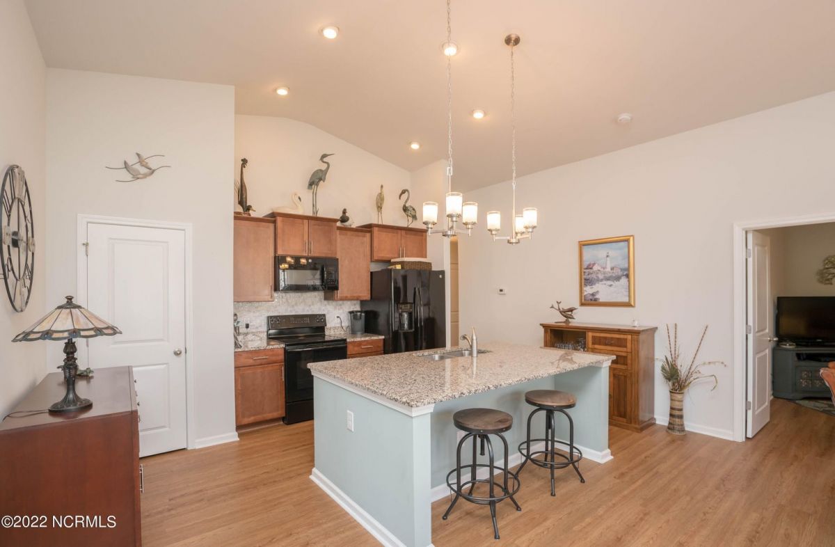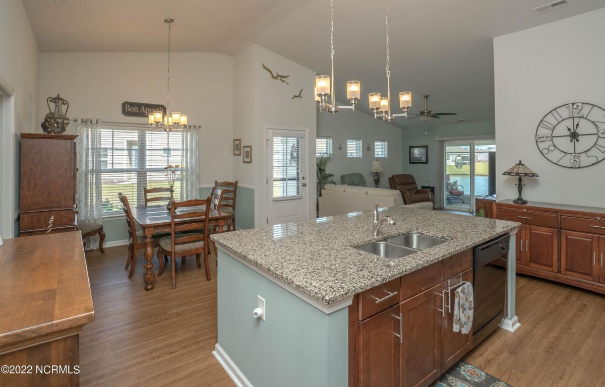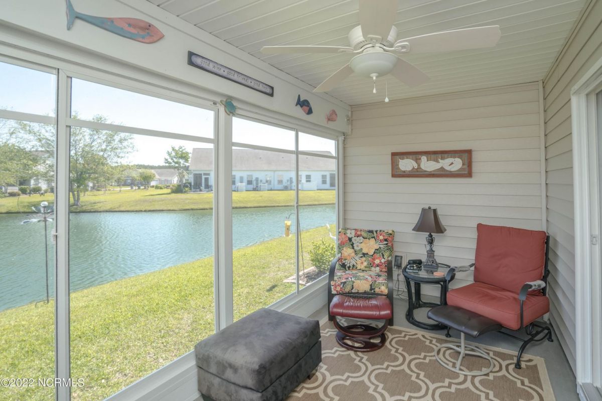 Well, maintained move in ready townhome offering one level living, waterproof laminate flooring throughout the main living areas and low maintenance. Upon entering the front door, you will find an open airy floor plan with ample natural light. The kitchen offers plenty of cabinetry and a large granite island to gather around with family and guest. A spacious living room with a sliding glass door that leads to the 3-season easy breeze porch with amazing pond views creating extra living space to sit and relax or entertain guest. You will have plenty of space for everyone with 3 bedrooms and 2 bathrooms. Large master suite to accommodate a king size bed and features a walk-in closet. Oversized master bathroom with double vanity and a walk-in shower. A split floor plan which allows privacy for guest. Nice size laundry room leads to the 2 car garage. These popular units are large enough to make a great full-time residence or make it your home away from home. Enjoy the community amenities which include a zero-entry oversized community pool with lap lanes, clubhouse, fitness center and much more. Only minutes to Sunset Beach and the quaint little fishing town of Calabash is a short drive away to enjoy shopping, popular Calabash seafood restaurants or go buy fresh seafood right off the docks on the calabash river. 75 championship golf courses within a 25-mile radius and deep-water charter fishing. Calabash Lakes is located just 20 minutes to Myrtle Beach, SC and 45 minutes to Wilmington, NC