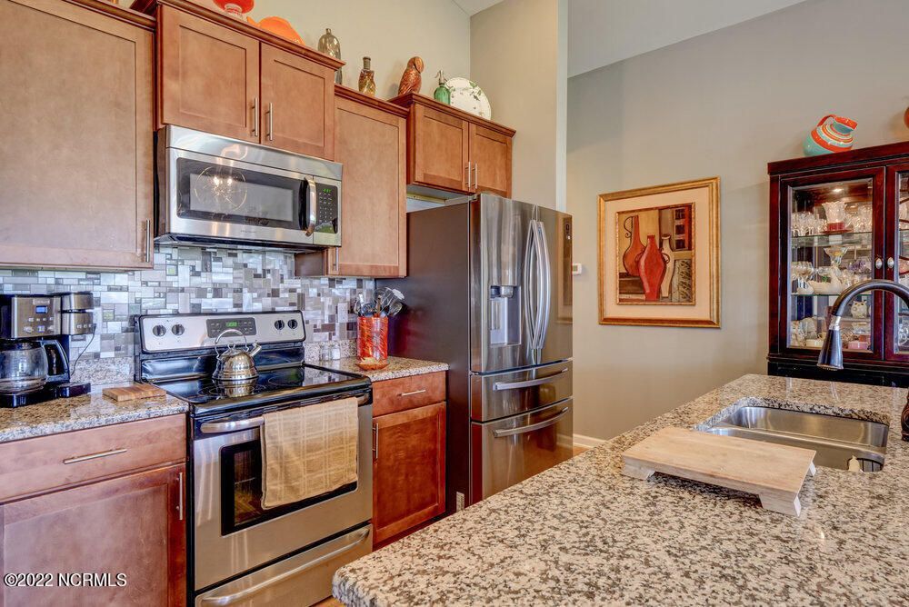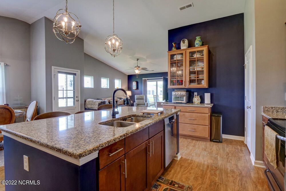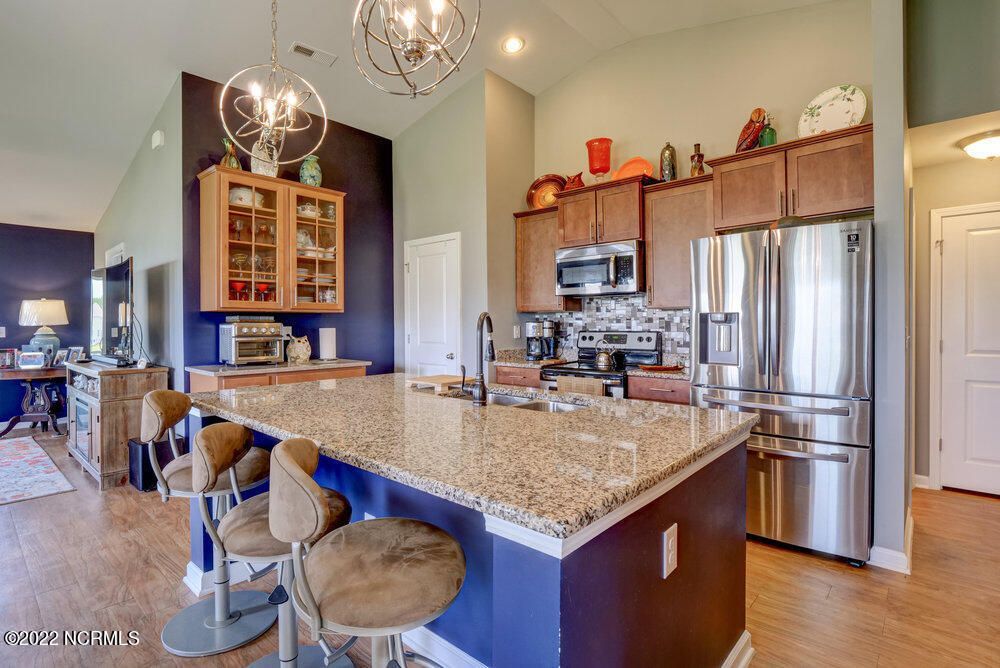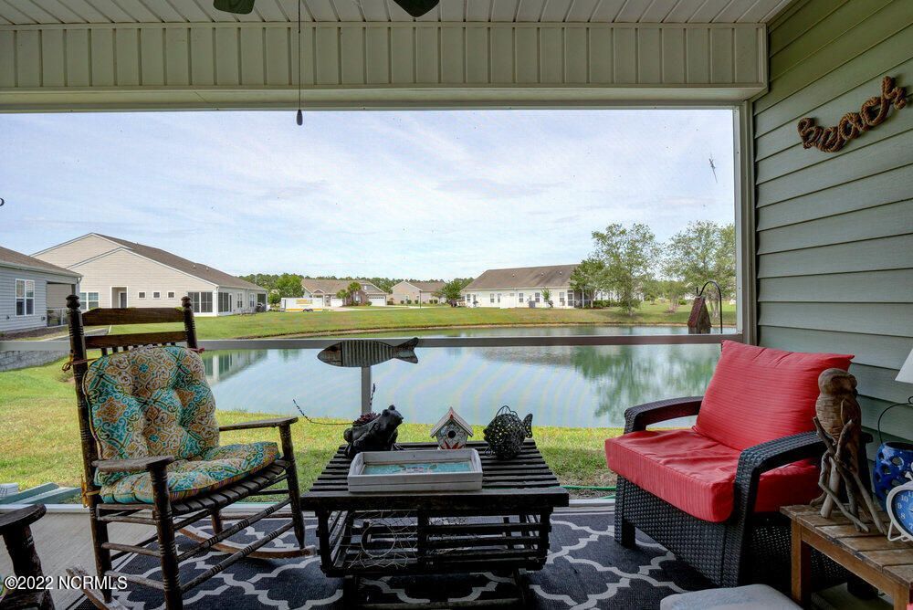 HIGHEST AND BEST - AUGUST 1 @ 5 P.M. -Duet-Style 3BR/2BA Patio Townhome located on one of the larger community lots for additional privacy and offers a beautiful POND FRONT VIEW from the screened porch and master suite. This Tuscan A floor plan has over 1500 sqft, 2-car garage, an Open Floor Plan with vaulted ceilings creating an airy spacious appeal, luxury vinyl plank flooring in main living areas and bathrooms with carpet in bedrooms. ***UPGRADES include Coffee Bar Station with ADDITIONAL CABINETRY, Tile Backsplash in kitchen, Light Fixtures, Ceiling Fans and Blinds throughout*** Kitchen has SS appliances with NEW REFRIGERATOR AND DISHWASHER, pantry, granite countertops and large island with bar seating. HOA maintains lawns, landscaping, master insurance that includes wind/hail/hazard, exterior building maintenance, roof replacement, pest control and trash removal. Less than 5 miles to Sunset Beach, Intracoastal Waterway, Public Golf Resorts, amazing Seafood Dining, local shops and attractions or take a 20 minute drive to North Myrtle Beach. Residents at Calabash Lakes have access to the community's clubhouse complete with bar/lounge, ping pong, pool table, fitness center, plus a lanai-style porch. Organized social events and activities are scheduled throughout the year. Established neighborhood with beautiful ponds and common areas to enjoy. Your Vacation Home, Investment Property or Primary Residence awaits. No short term rentals allowed.