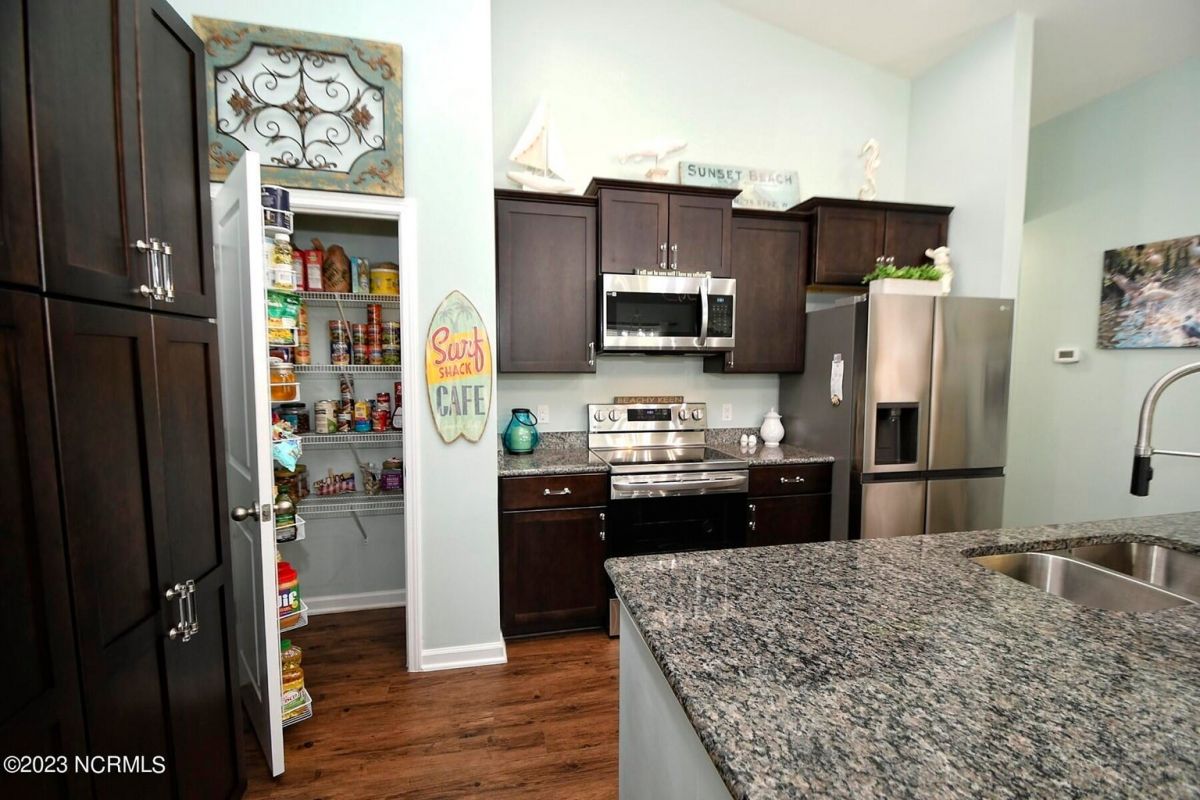 Want the look and feel of a new home without waiting on construction? Welcome to 1080 Chadsey Lake Drive. This IMMACULATE home with numerous updates checks all the boxes and shows like a model. You just have to come and see to appreciate how this duet stands out! From the moment you walk in the front door, you notice the bright and airy open concept living area. Freshly painted throughout in coastal colors, new lighting, fireplace, and plenty of windows that allow natural light to cascade the home will capture your attention. Glass sliders also invite you from the living area to a relaxing screened in porch. The well appointed kitchen features new appliances, new cabinet hardware, and an added double pantry with roll out drawers. You will also appreciate the large island, granite countertops, and spacious dining room. The split floor plan offers privacy featuring new carpet in all bedrooms. The large primary bedroom has a walk-in closet and features a bathroom with a double vanity and walk-in shower. The second and third bedrooms share the guest bathroom with a new vanity. ALL closets throughout the home have been double racked to expand storage space. The laundry room includes a new washer and an added sink with cabinet. A new storm door leads to garage where you find pull down attic stairs leading to a partially floored storage space. A newer garage door screen enclosure opens up the possibility for a multi-use space. Amenities include a soon to be completed saltwater pool, pickleball courts, tennis courts, clubhouse and fitness center. HOA includes exterior maintenance, lawn care, landscaping, termite bond, and wind/hail insurance. Located close to airports in both Wilmington, NC and Myrtle Beach, SC. Just a short drive to several area beaches, shopping, restaurants, and entertainment in both NC and SC. Don't let this one slip away, schedule a showing today!