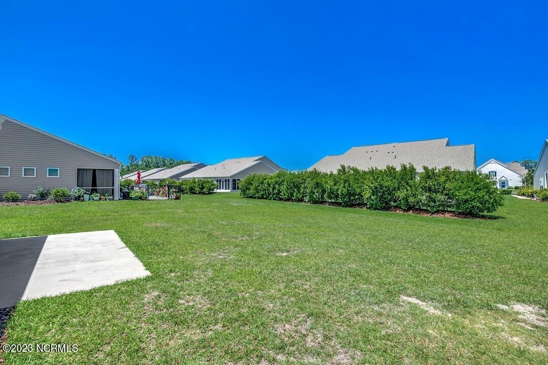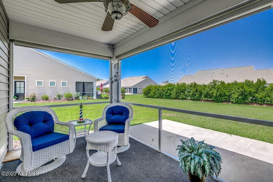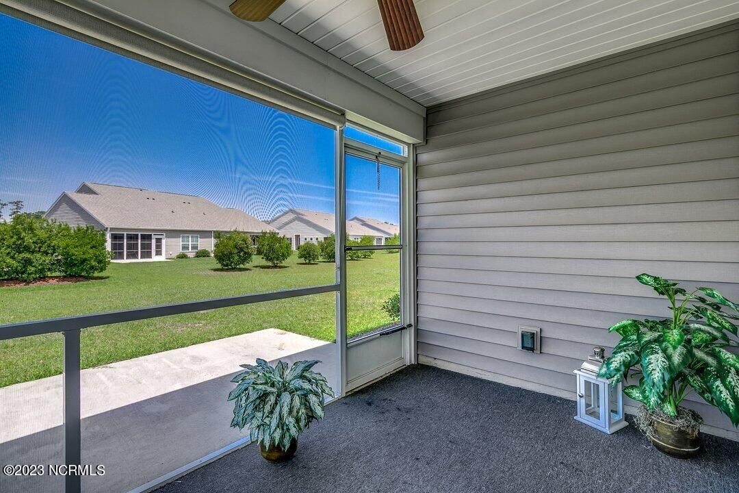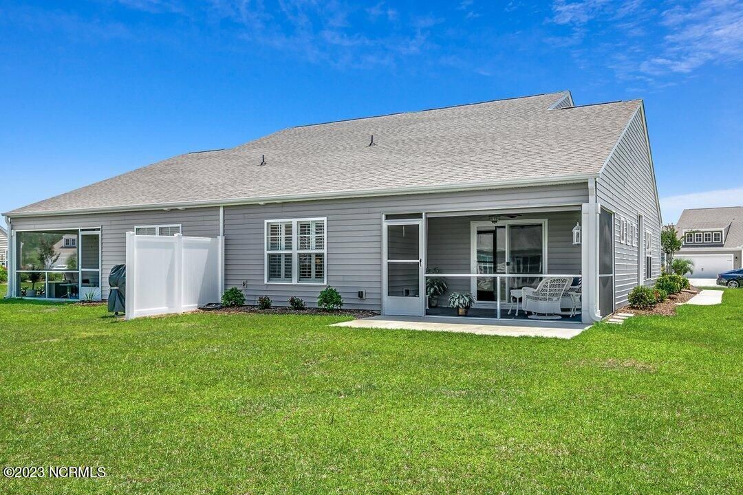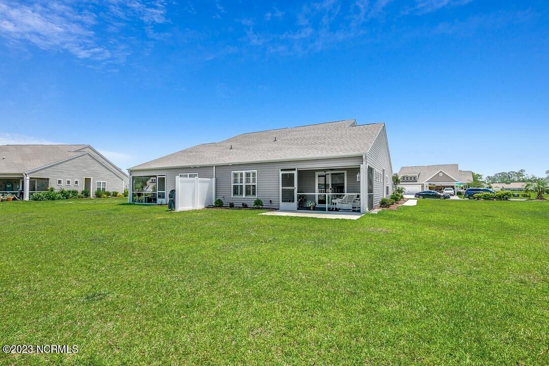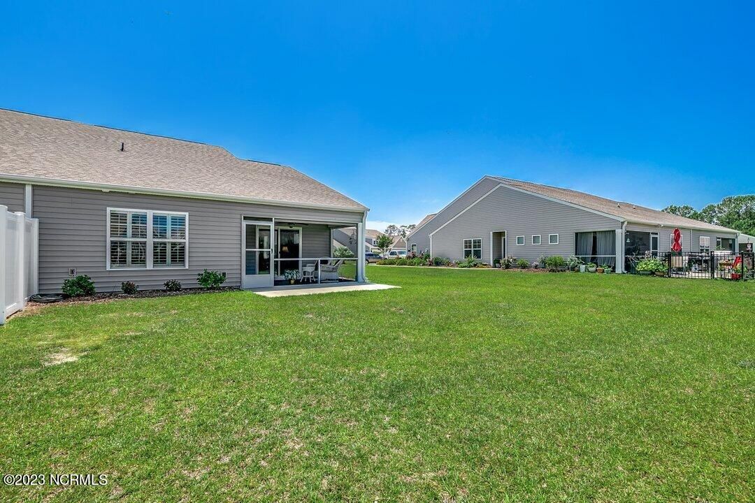 Welcome to Calabash Lakes, located minutes from downtown Calabash, the self-proclaimed Seafood Capital of the World! This highly desirable, well-maintained duet-style home features numerous upgrades a features that are sure to impress. The interior of this home features a split-bedroom floorplan with open and inviting common areas, perfect for entertaining guests. The kitchen features granite counters, stainless appliances, a large island with a breakfast bar, large pantry, and a beautiful backsplash. The dining area, and much of the home, feature elevated trim elements such as the chair rail, picture frame molding, and plantation shutters. To the left of the entryway is the bright and spacious living room, access to the screen porch, and the master suite. The living room and all of the bedrooms are outfitted with ceiling fans for comfort. The master suite includes a large walk-in closet with built in shelving. In the master bathroom, you will find dual sinks and a walk-in shower. The screen porch also includes a ceiling fan and leads to an additional concrete patio perfect for grilling. On the other side of the home, just beyond the kitchen, are the guest bedrooms, additional closet space, the guest bathroom, and large laundry room. The laundry room includes built-in cabinets for additional storage and convenience. Through the laundry room, you will find the two-car garage which has been finished with built-in shelving and an epoxy floor coating. There is a second refrigerator in the garage as well. This home is move-in ready! Calabash Lakes offers a zero entry pool, clubhouse, fitness room, tennis courts, and more. Sunset Beach, Ocean Isle Beach, Little River, and North Myrtle Beach are all nearby, providing plenty of shopping, dining, and entertainment options in addition to what Calabash has to offer!