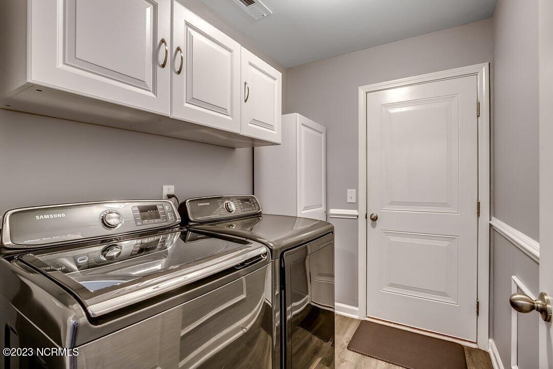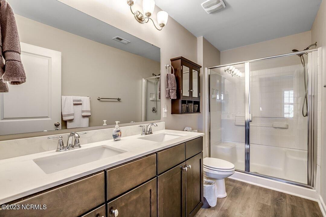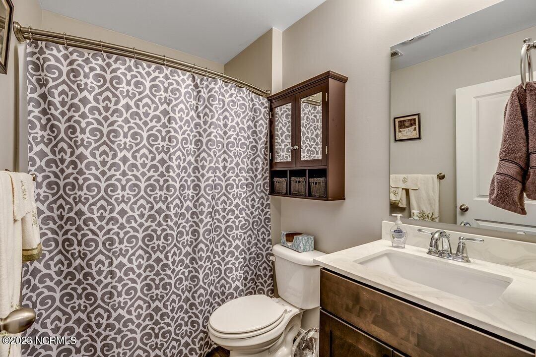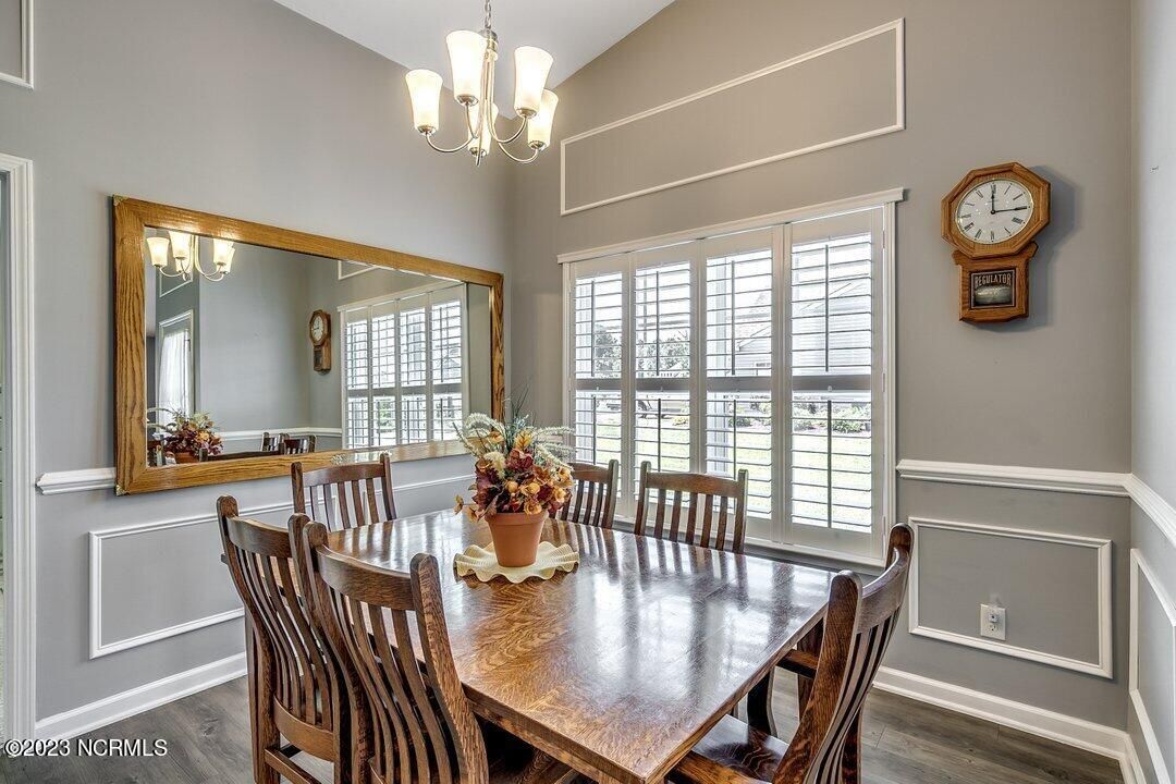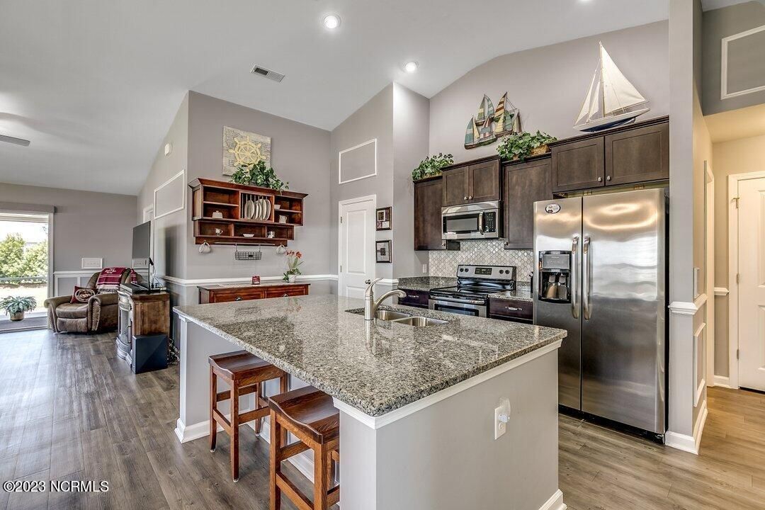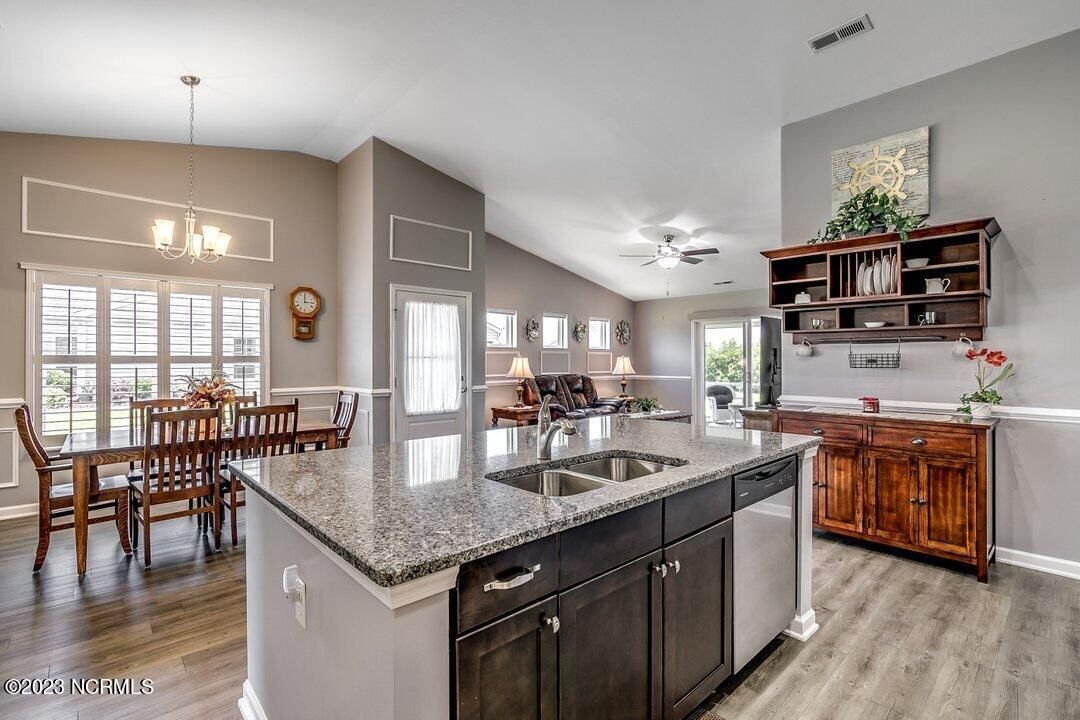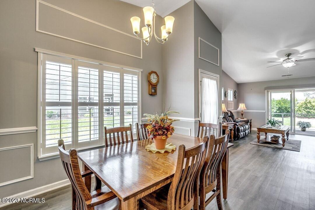 Welcome to Calabash Lakes, located minutes from downtown Calabash, the self-proclaimed Seafood Capital of the World! This highly desirable, well-maintained duet-style home features numerous upgrades a features that are sure to impress. The interior of this home features a split-bedroom floorplan with open and inviting common areas, perfect for entertaining guests. The kitchen features granite counters, stainless appliances, a large island with a breakfast bar, large pantry, and a beautiful backsplash. The dining area, and much of the home, feature elevated trim elements such as the chair rail, picture frame molding, and plantation shutters. To the left of the entryway is the bright and spacious living room, access to the screen porch, and the master suite. The living room and all of the bedrooms are outfitted with ceiling fans for comfort. The master suite includes a large walk-in closet with built in shelving. In the master bathroom, you will find dual sinks and a walk-in shower. The screen porch also includes a ceiling fan and leads to an additional concrete patio perfect for grilling. On the other side of the home, just beyond the kitchen, are the guest bedrooms, additional closet space, the guest bathroom, and large laundry room. The laundry room includes built-in cabinets for additional storage and convenience. Through the laundry room, you will find the two-car garage which has been finished with built-in shelving and an epoxy floor coating. There is a second refrigerator in the garage as well. This home is move-in ready! Calabash Lakes offers a zero entry pool, clubhouse, fitness room, tennis courts, and more. Sunset Beach, Ocean Isle Beach, Little River, and North Myrtle Beach are all nearby, providing plenty of shopping, dining, and entertainment options in addition to what Calabash has to offer!