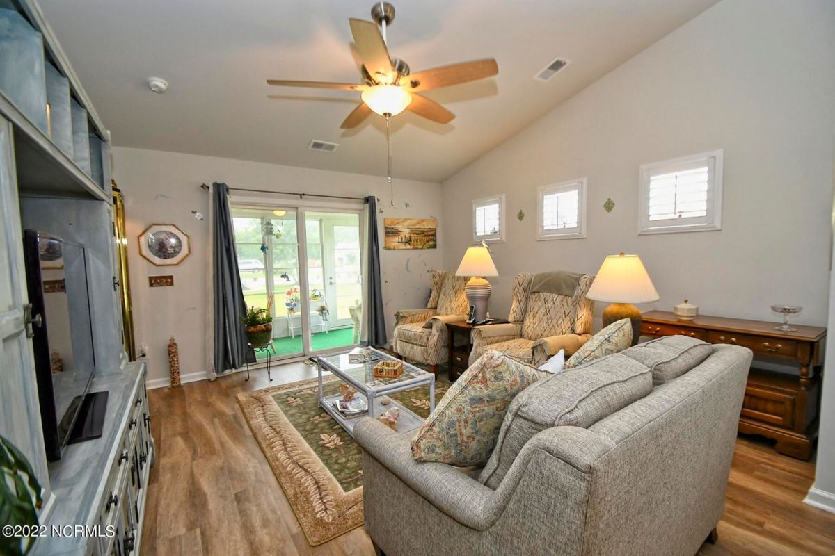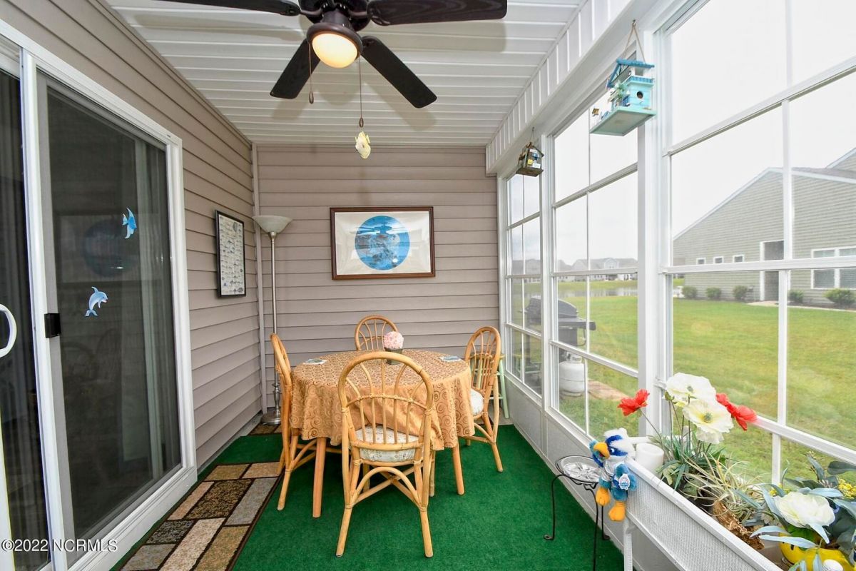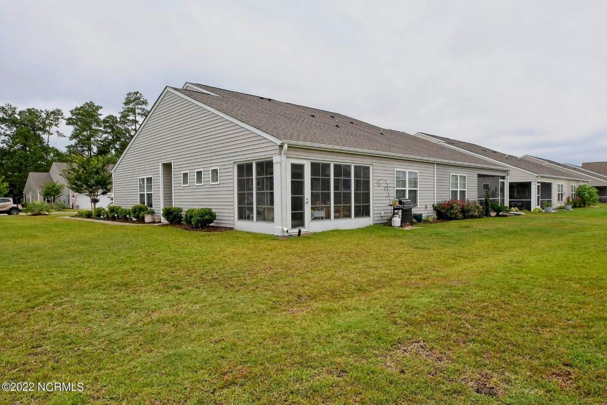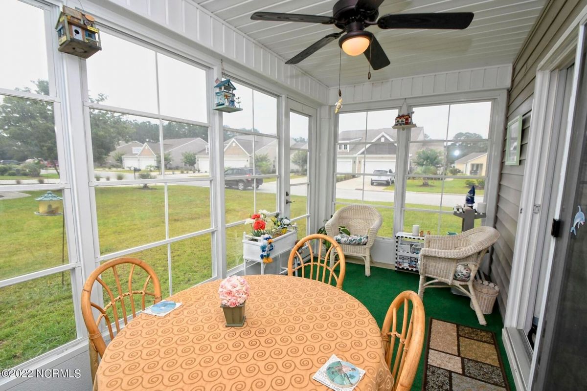 Rare find! A corner lot, Tuscan-style townhome in Calabash Lakes. It's a must see! Open floor plan with vaulted ceilings in the living area. Kitchen is open to both dining and living space with LVT in the main open areas. The main bedroom, with views of the pond, includes an oversized walk-in closet, and double sinks in the bathroom with a walk-in shower. There are 2 additional rooms that could be used as either an office or bedrooms and a guest bath. Laundry room comes with washer and dryer and extra cabinets. All rooms have ceiling fans and window blinds, and the living room has shutters. This townhouse offers a 3-season room for your enjoyment. HOA covers everything outside (wind and hail insurance, lawn/shrub/mulch care, termite bond/pest control). There's a clubhouse, zero entry pool, fitness center, and tennis and pickleball courts! You are just minutes from some of the most beautiful beaches in Brunswick County (Sunset & Ocean Isle). If golf is your game there are over 70 top golf courses within a 75-mile radius. Great restaurants and unique shops are a skip away in Calabash. Here in Calabash Lakes, you are within a 30–45-minute drive to either Myrtle Beach, SC or Wilmington, NC