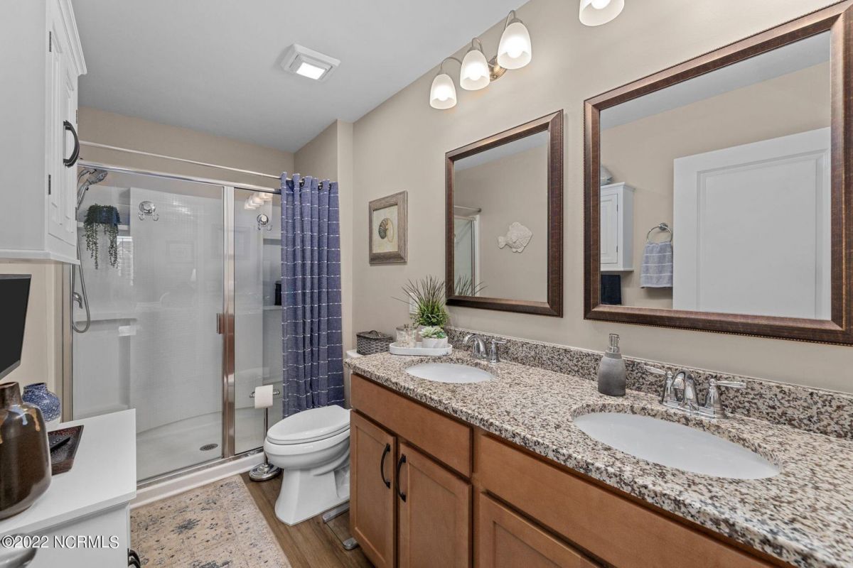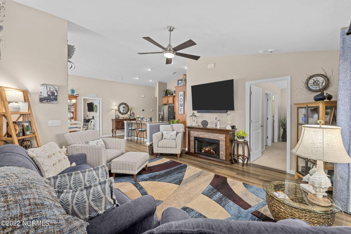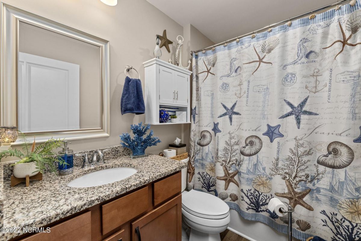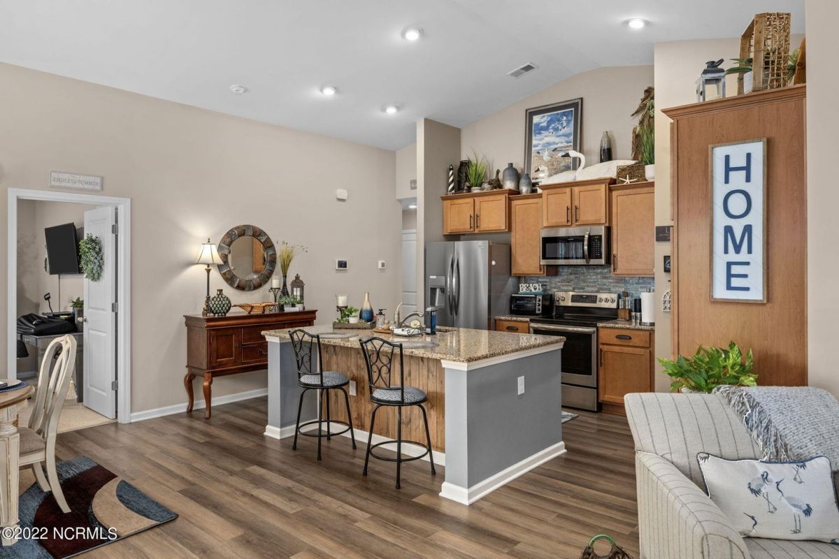 Wait until you see this 3 bed 2 bath townhome beauty in the ever popular Calabash Lakes. This Tuscan floor plan shows like a model with a host of upgrades, split floor plan, that is open allowing natural light to shine in. Plantation shutters, a sliding screen door, ceiling fans, updated hardware on all cabinetry and soft close with pull outs to kitchen cabinetry is just the beginning. The porch has been screened, carpeting added, blinds and draperies to best enjoy the porch year round. Also a 15 x 13 concrete patio for entertaining, surrounded by additional wax myrtles, landscaping and a privacy fence. Both bathrooms have anti fog mirrors, new granite on the vanities, new comfort height commodes, and additional cabinets for storage. All closets have extra shelving installed for organization. The kitchen island has a wood feature on the front, the convection range with warming zone is a chef's delight, also new is the dishwasher, undercabinet lighting highlights the tile backsplash and the additional cabinetry and coffee bar is both eye catching and functional. The laundry room has extra shelving and cabinets installed for household goods. The garage has lvp flooring for a clean space and of course, additional shelving! The HOA maintains lawns / landscaping, master insurance that includes wind/hail/hazard, exterior building maintenance, roof replacement, pest control inside and out and trash removal. Make sure you see the links in the listing or ask your agent for the 3D virtual tour and floor plan and property website!