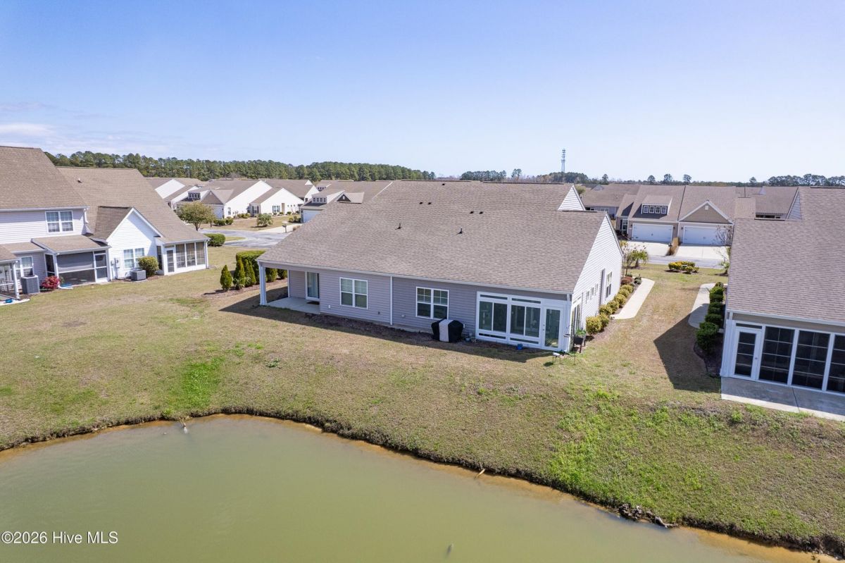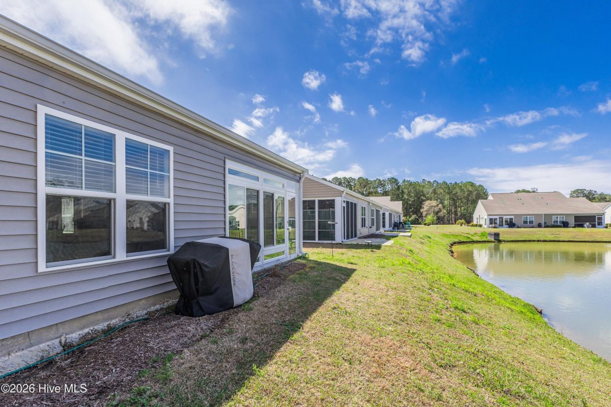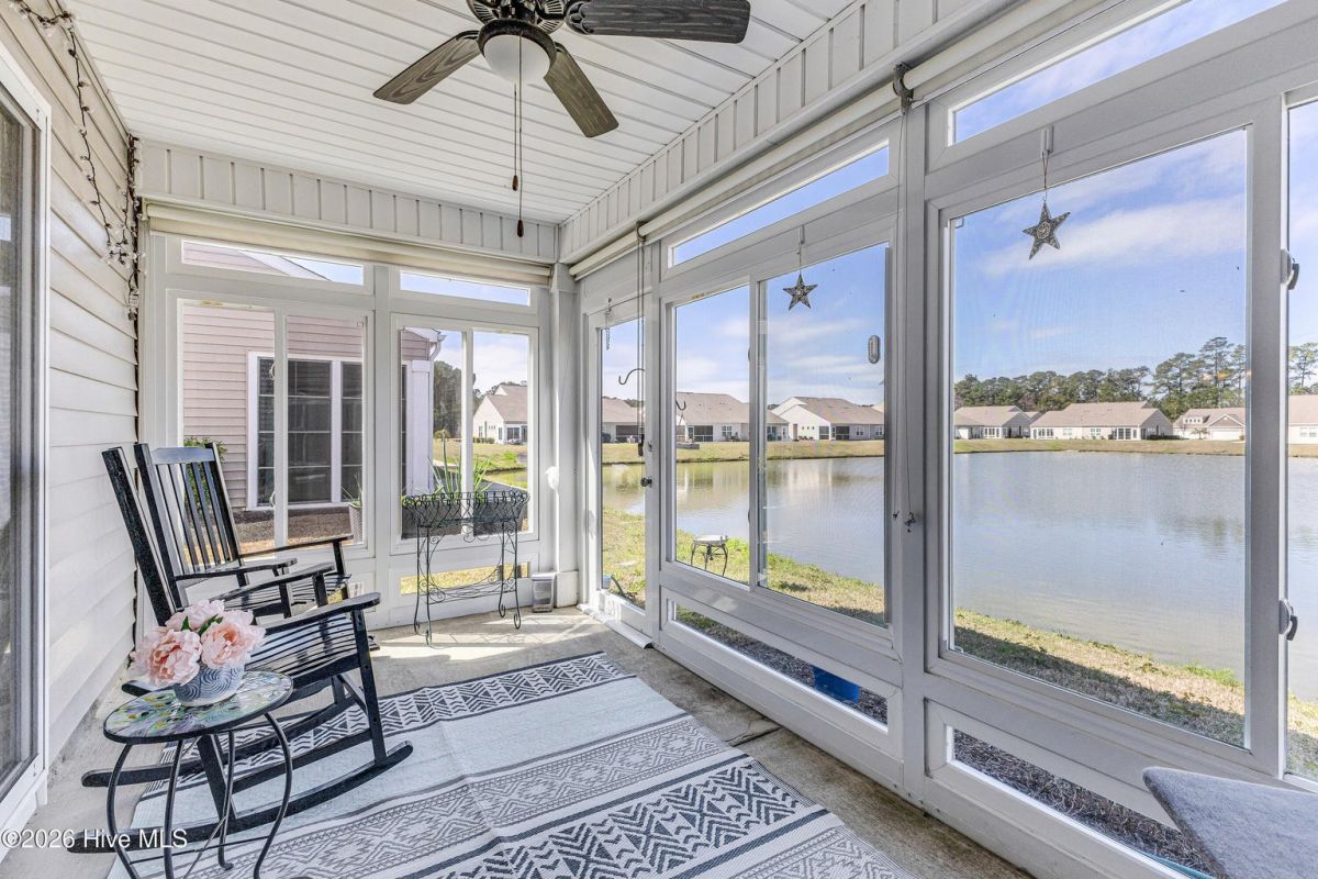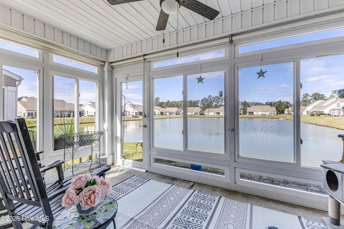 Beautifully maintained 3-bedroom, 2 bath duet style home featuring a desirable split-bedroom floor plan and numerous upgrades throughout. The open and inviting living area flows seamlessly into the dining space and kitchen, creating a great layout for both everyday living and entertaining. The kitchen includes ample cabinetry, solid surface counters, breakfast bar seating, large work island, tile backsplash, pantry and a new microwave. Large primary bedroom offers a vaulted ceiling, a great walk-in closet and a private bathroom with a double sink vanity and full-size shower. Comfortable guest bedrooms with great closet space. Upgraded light fixtures throughout the home add a modern touch, while thoughtful features such as lever door handles, comfort-height toilets, all closets offer motion censored lighting and a whole-house water filtration system with reverse osmosis drinking water provide everyday convenience and comfort. You'll find low maintenance LVP flooring throughout the living areas and carpet in the bedrooms. One of the standout features of this home is the glass-enclosed patio overlooking an incredible pond view, creating a peaceful setting that is perfect for relaxing or bird watching. Residents enjoy wonderful community amenities including a beautiful clubhouse with fitness room and meeting space, along with a fantastic community saltwater pool. Conveniently located near the area's beautiful beaches and close to an endless variety of shopping, dining, and golf courses. This home offers the perfect combination of comfort, upgrades, scenic views, and great amenities.
