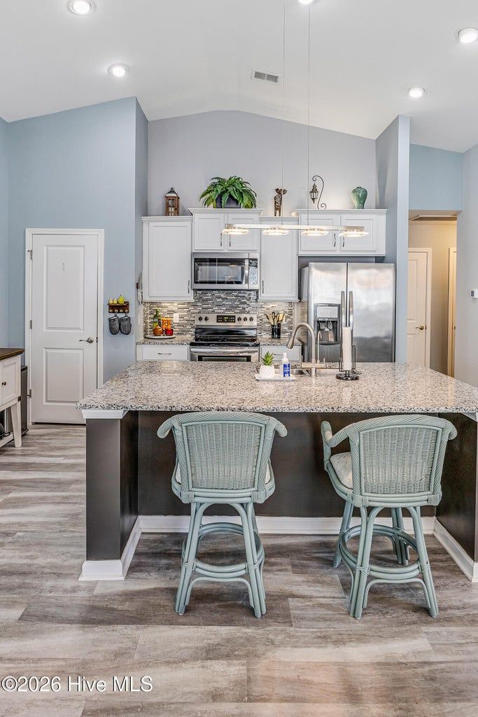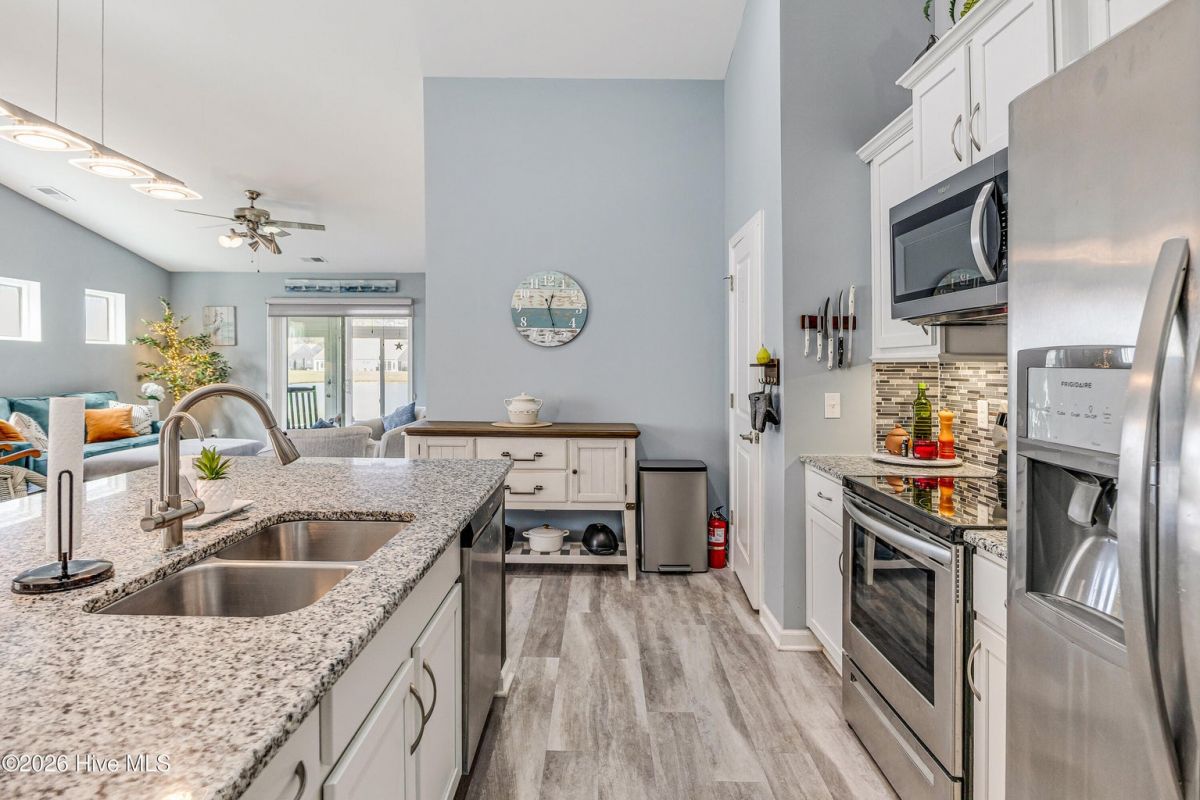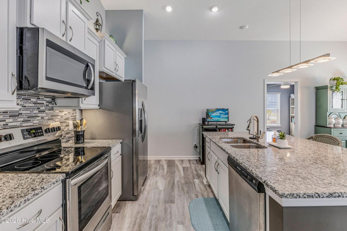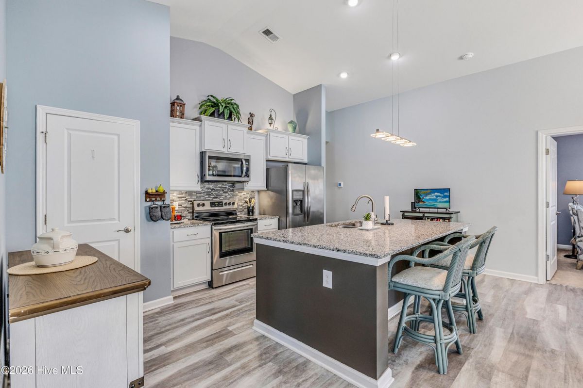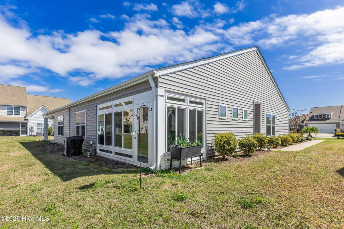 Beautifully maintained 3-bedroom, 2 bath duet style home featuring a desirable split-bedroom floor plan and numerous upgrades throughout. The open and inviting living area flows seamlessly into the dining space and kitchen, creating a great layout for both everyday living and entertaining. The kitchen includes ample cabinetry, solid surface counters, breakfast bar seating, large work island, tile backsplash, pantry and a new microwave. Large primary bedroom offers a vaulted ceiling, a great walk-in closet and a private bathroom with a double sink vanity and full-size shower. Comfortable guest bedrooms with great closet space. Upgraded light fixtures throughout the home add a modern touch, while thoughtful features such as lever door handles, comfort-height toilets, all closets offer motion censored lighting and a whole-house water filtration system with reverse osmosis drinking water provide everyday convenience and comfort. You'll find low maintenance LVP flooring throughout the living areas and carpet in the bedrooms. One of the standout features of this home is the glass-enclosed patio overlooking an incredible pond view, creating a peaceful setting that is perfect for relaxing or bird watching. Residents enjoy wonderful community amenities including a beautiful clubhouse with fitness room and meeting space, along with a fantastic community saltwater pool. Conveniently located near the area's beautiful beaches and close to an endless variety of shopping, dining, and golf courses. This home offers the perfect combination of comfort, upgrades, scenic views, and great amenities.