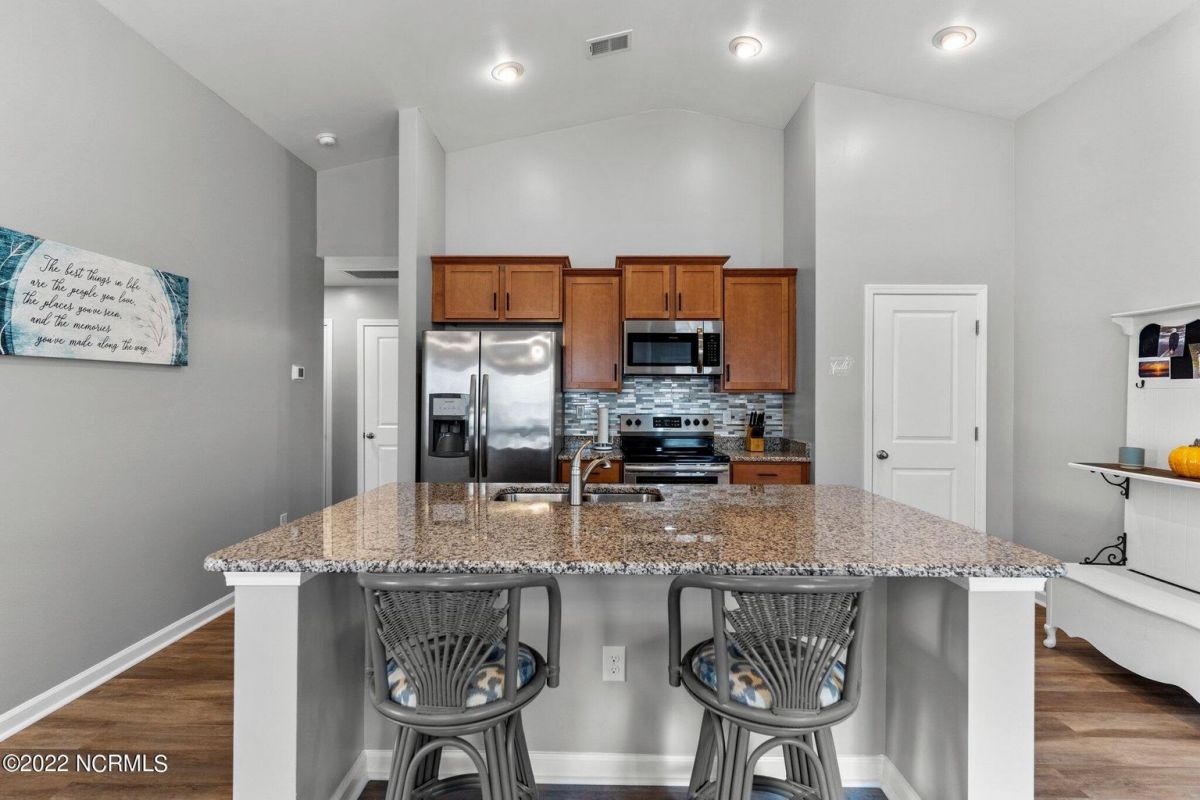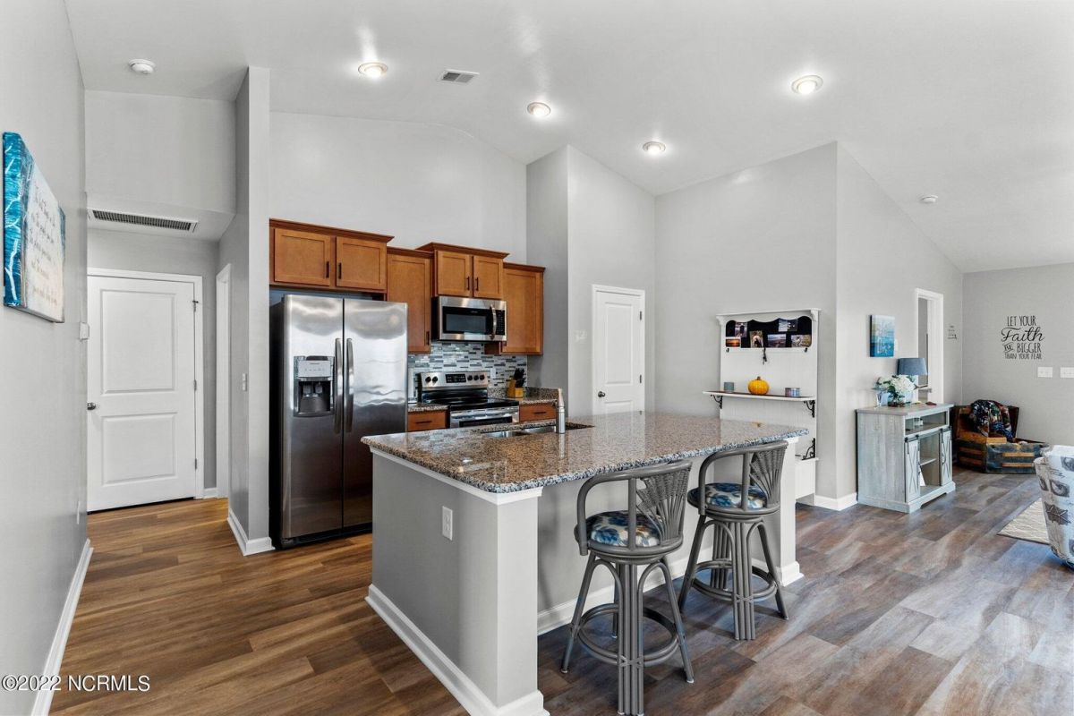 This fully furnished ''duet'' in Calabash Lakes has everything you need and want for a maintenance free lifestyle. Open and airy split bedroom floor plan is perfect for entertaining with an open kitchen, dining area and living room. Enjoy granite counters, stainless steel appliances, staggered cabinetry and a huge work island. LVP flooring runs throughout the home except the carpeted bedrooms. Large master suite with a great walk-in closet and nice master bathroom with 5' shower and double sink vanity. Floor plan has comfortable guest bedrooms with great closet space, laundry room, screen porch and a two car garage! If you like the idea of low-maintenance condo living but prefer a ranch style property and garage, the Calabash Lakes' duets are perfect for you! Subdivision has nice amenities with a clubhouse, exercise room, tennis & pickleball and new saltwater pool (should be completed by Summer 2023). Great location near the area beaches, shopping, dining, golf and schools.