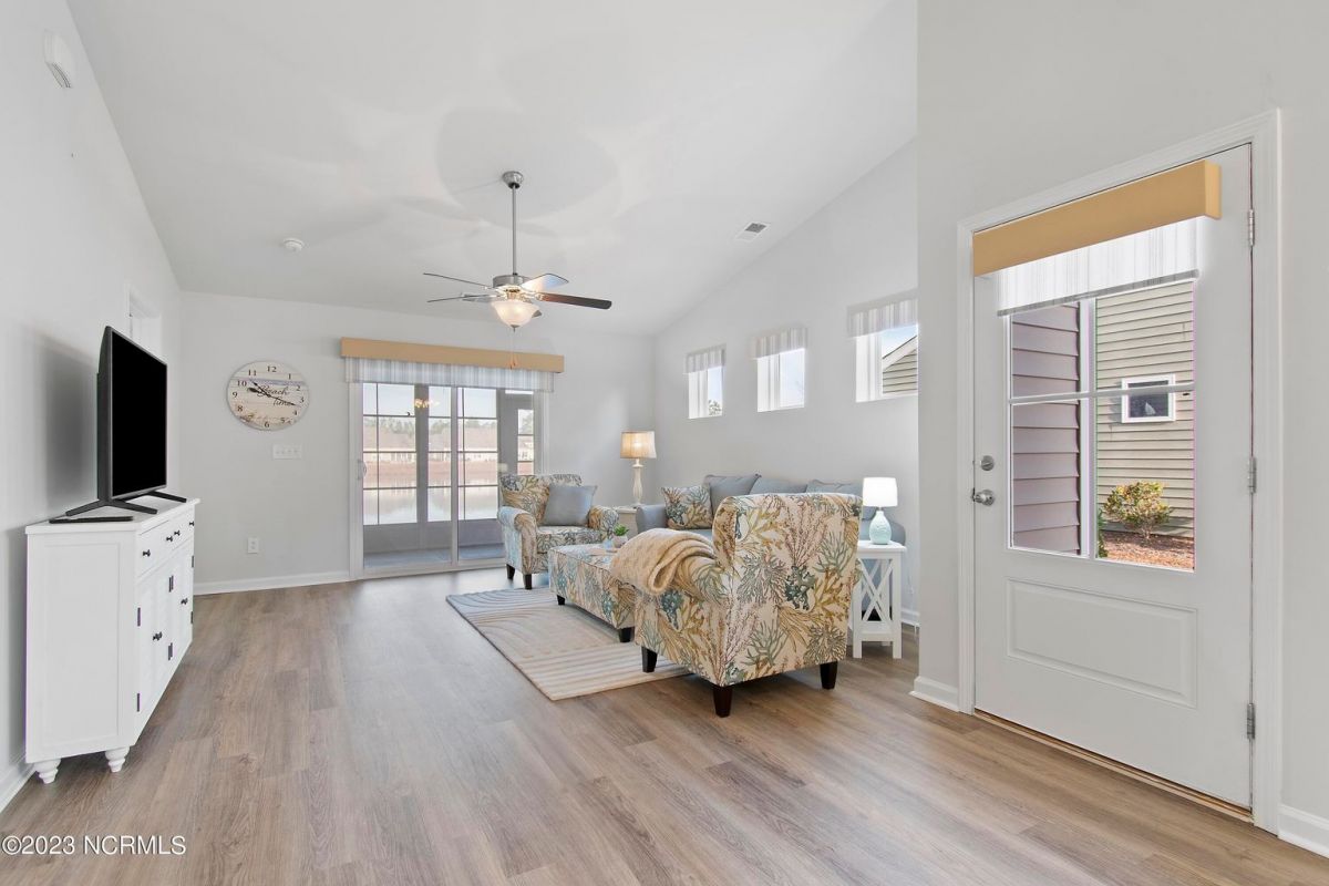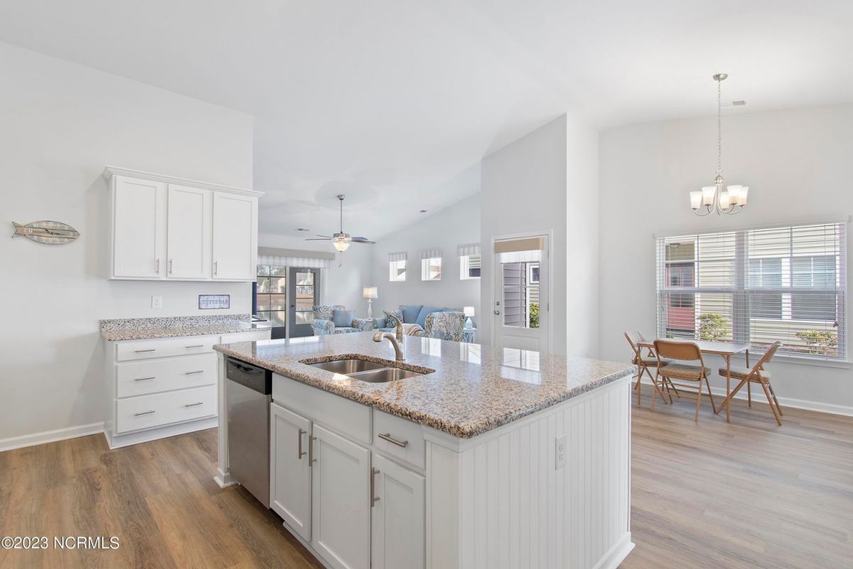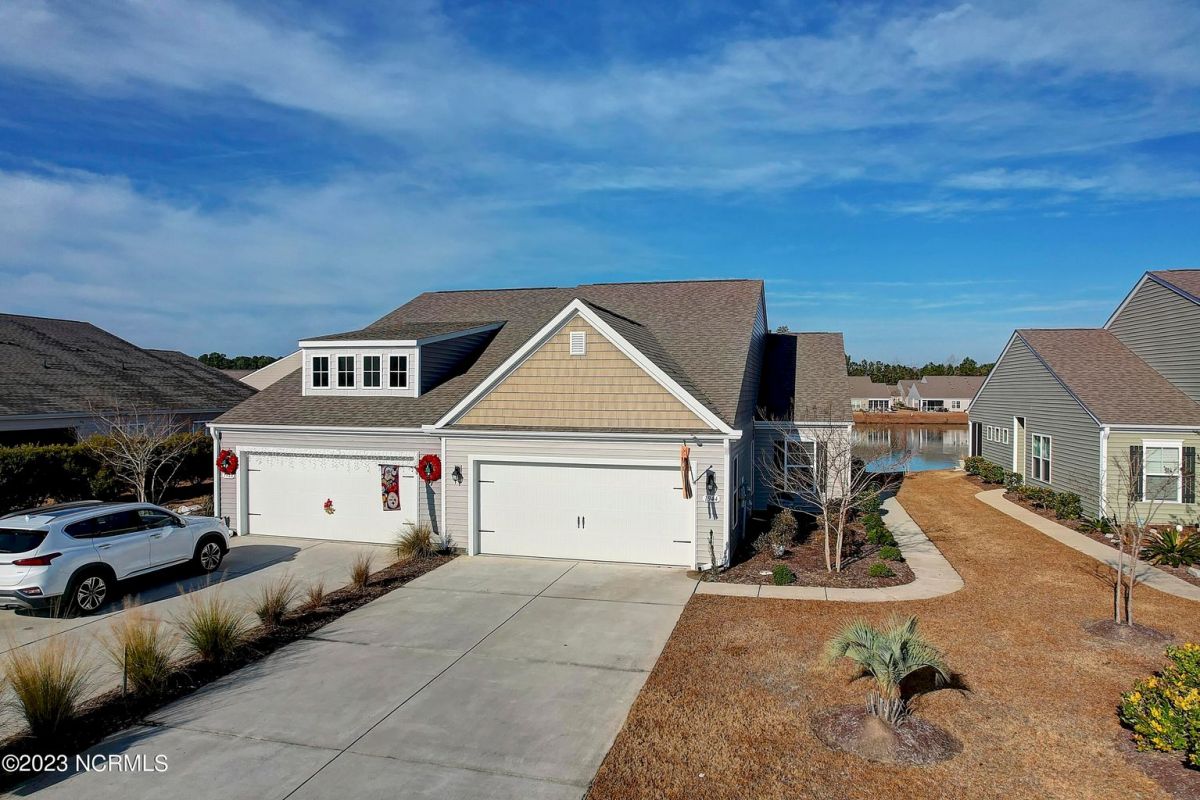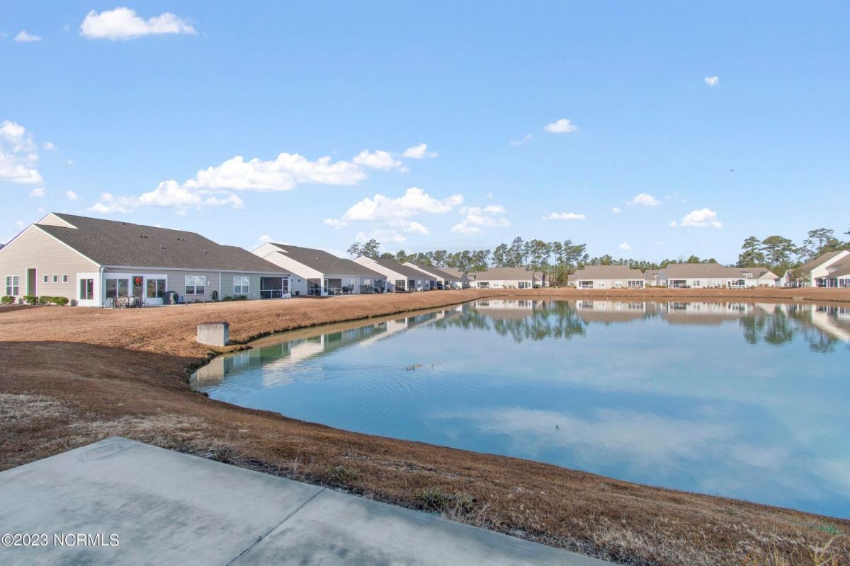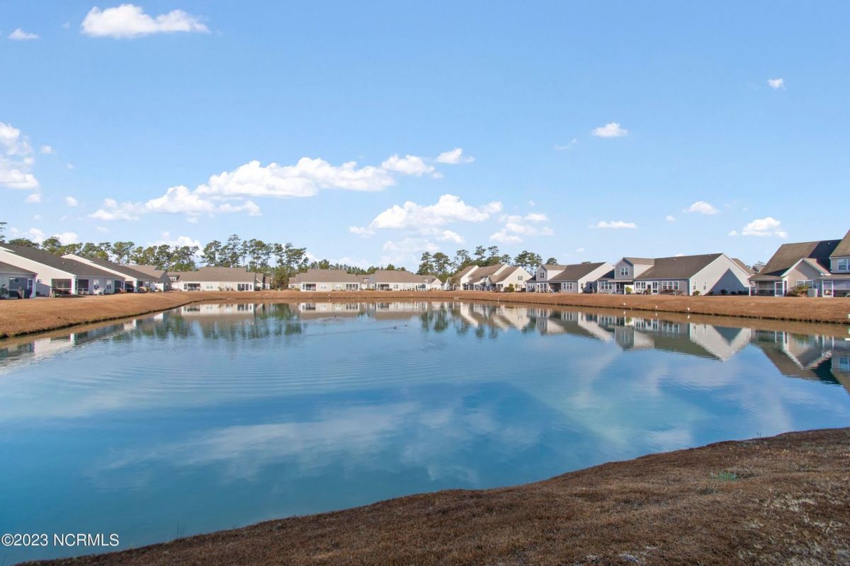 Welcome to Calabash Lakes, nestled right between the town areas of Calabash and Sunset Beach! This 3 BR 2 BA, single-level duet townhome is pretty, shiny, and ready to go for a new owner! The light colors, vaulted ceiling and open floor plan provide a bright and cheery living space. The white kitchen with large island and an extra bank of cabinets and pantry provide plenty of storage and working space. The side bank of cabinets is ideal for a beverage station. The dining area is adjacent to the kitchen which is also open to the living room. Newly replaced LVP flooring adorns the living area and both bathrooms, with carpet in the bedrooms. This setting could not be any prettier, located on one of the largest ponds in the community. A set of sliders in the living room open to your screened porch complete with EZ Breeze windows, and patio overlooking the pond. When you prefer less light or more privacy, just press a button and the custom motorized shade can be lowered. You will enjoy your generous-sized primary suite, as it too overlooks the pond. With large walk-in closet and bathroom with walk-in shower and double vanity sinks, you will have plenty of room to relax. On the other side of the home are the two guest bedrooms, guest bathroom, laundry room and storage closets. Additional cabinetry was also installed in the laundry room in an effort to optimize the space. The two-car garage is accessed through the laundry room. Calabash Lakes is a wonderfully social and friendly community with a fantastic location. You can truly enjoy easy living here, as the HOA dues include the master insurance, exterior maintenance, landscaping, irrigation, annual power washing, annual gutter cleaning and termite/pest control. You are a stone's throw from the seafood restaurants and shopping of Calabash, the pristine beaches of Sunset Beach, and very close to the SC state line. Little River, North Myrtle Beach and Myrtle Beach all offer even more options with respect to dining, shopping and entertainment. Are you a golfer? You have at least 10 golf courses within 15 minutes of this location. Don't hesitate, schedule your showing today