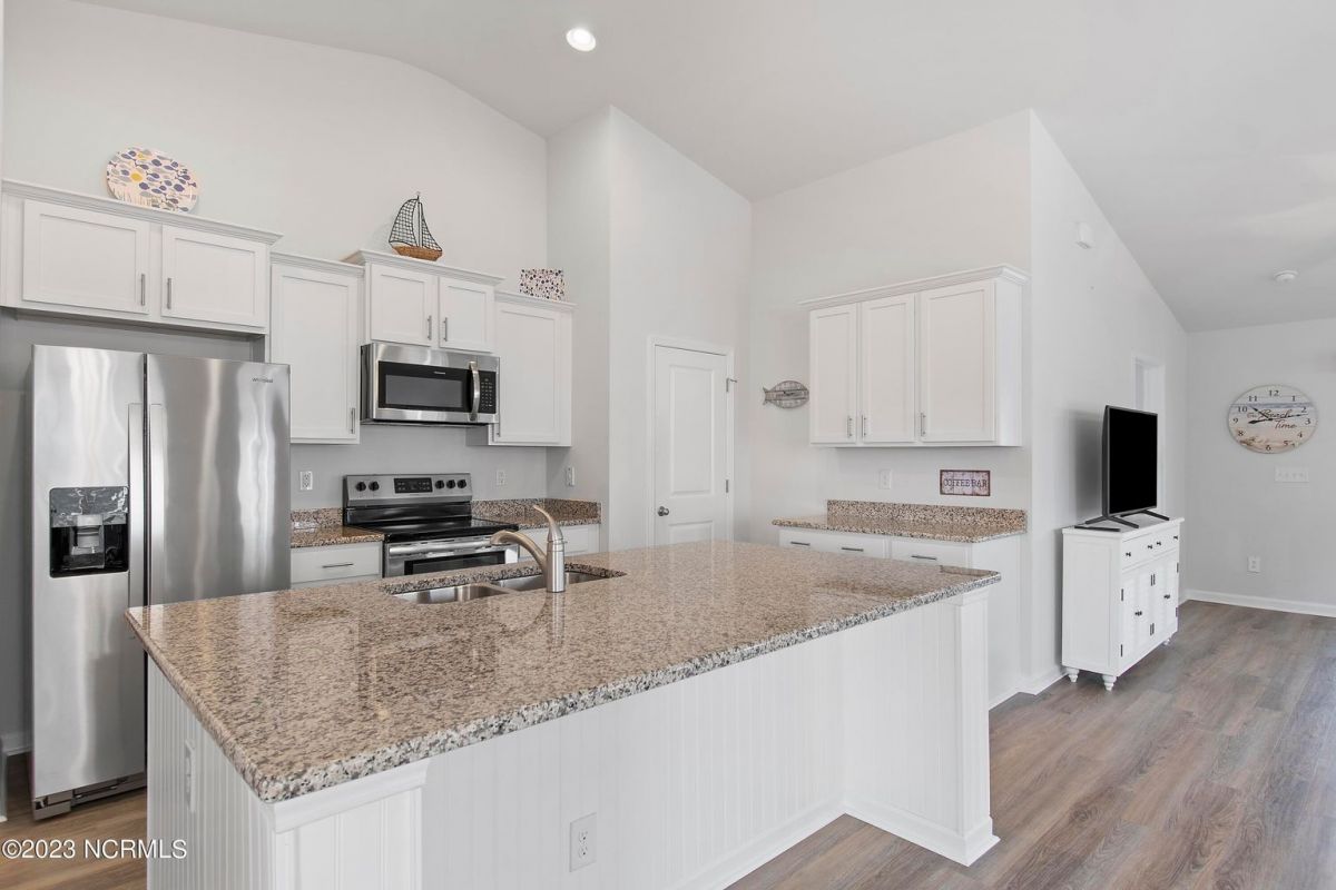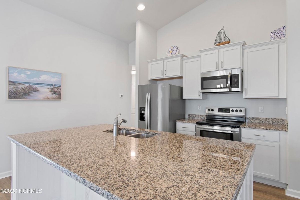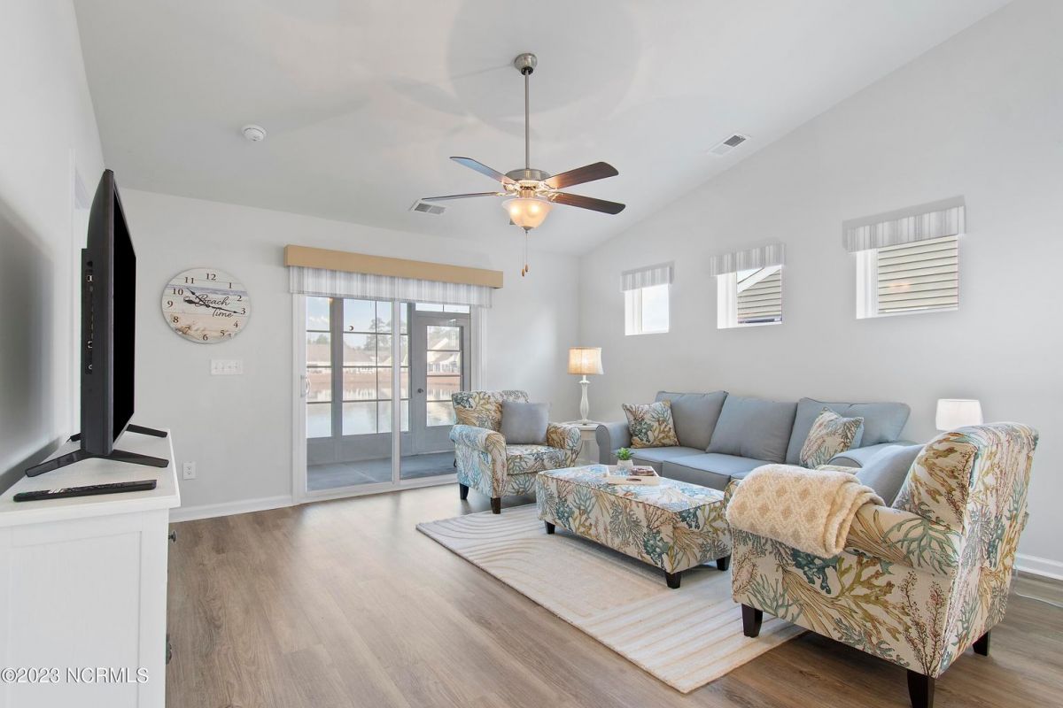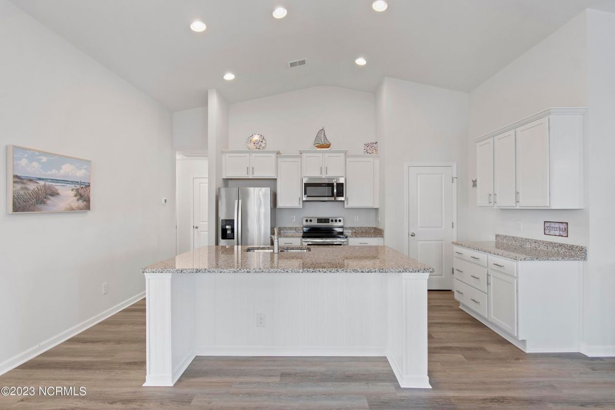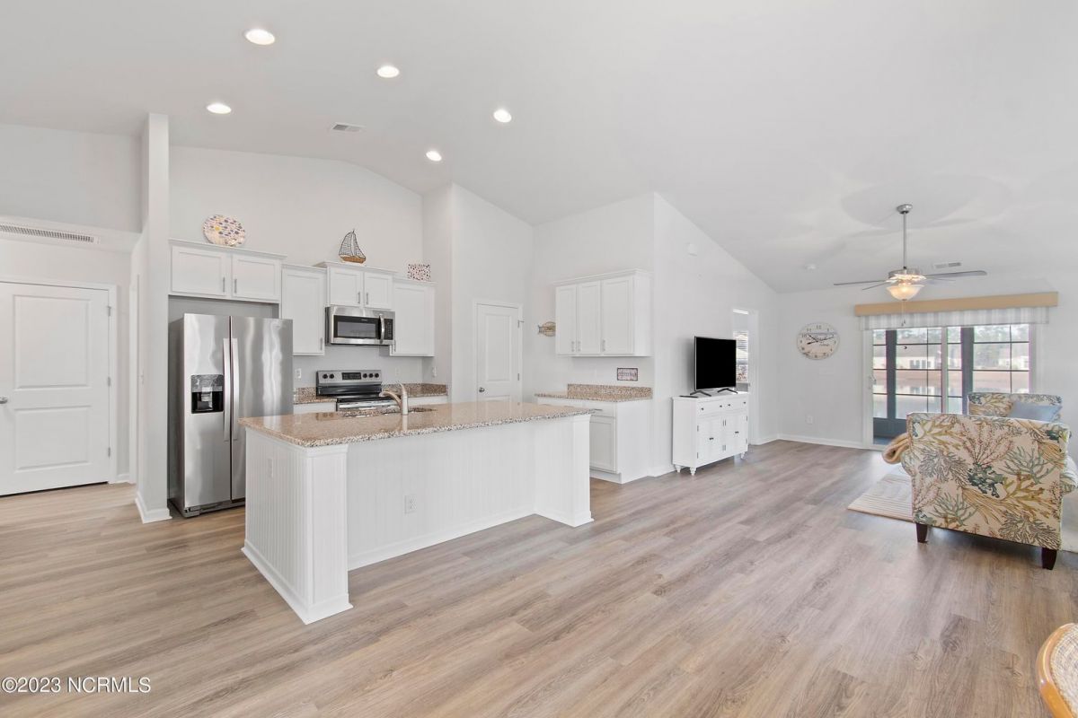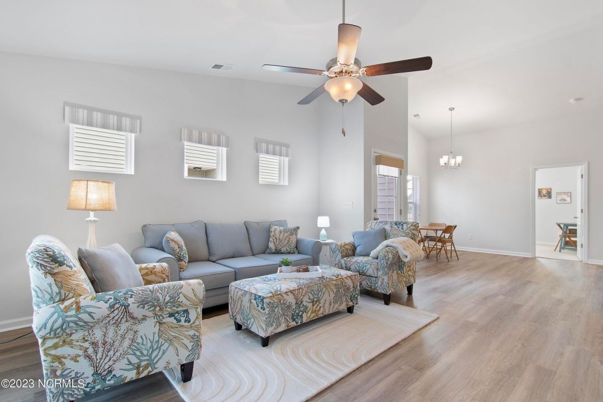 Welcome to Calabash Lakes, nestled right between the town areas of Calabash and Sunset Beach! This 3 BR 2 BA, single-level duet townhome is pretty, shiny, and ready to go for a new owner! The light colors, vaulted ceiling and open floor plan provide a bright and cheery living space. The white kitchen with large island and an extra bank of cabinets and pantry provide plenty of storage and working space. The side bank of cabinets is ideal for a beverage station. The dining area is adjacent to the kitchen which is also open to the living room. Newly replaced LVP flooring adorns the living area and both bathrooms, with carpet in the bedrooms. This setting could not be any prettier, located on one of the largest ponds in the community. A set of sliders in the living room open to your screened porch complete with EZ Breeze windows, and patio overlooking the pond. When you prefer less light or more privacy, just press a button and the custom motorized shade can be lowered. You will enjoy your generous-sized primary suite, as it too overlooks the pond. With large walk-in closet and bathroom with walk-in shower and double vanity sinks, you will have plenty of room to relax. On the other side of the home are the two guest bedrooms, guest bathroom, laundry room and storage closets. Additional cabinetry was also installed in the laundry room in an effort to optimize the space. The two-car garage is accessed through the laundry room. Calabash Lakes is a wonderfully social and friendly community with a fantastic location. You can truly enjoy easy living here, as the HOA dues include the master insurance, exterior maintenance, landscaping, irrigation, annual power washing, annual gutter cleaning and termite/pest control. You are a stone's throw from the seafood restaurants and shopping of Calabash, the pristine beaches of Sunset Beach, and very close to the SC state line. Little River, North Myrtle Beach and Myrtle Beach all offer even more options with respect to dining, shopping and entertainment. Are you a golfer? You have at least 10 golf courses within 15 minutes of this location. Don't hesitate, schedule your showing today