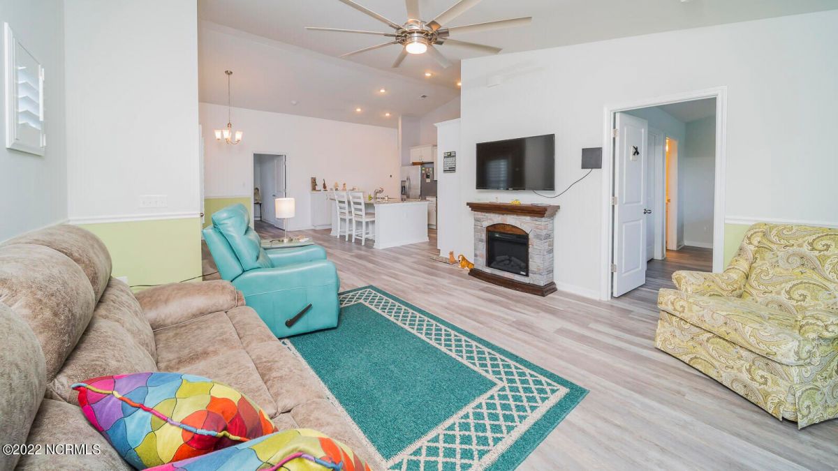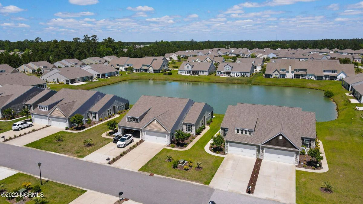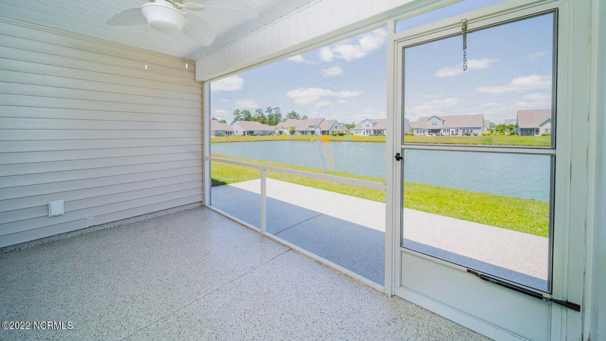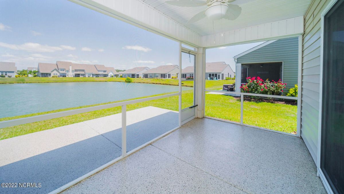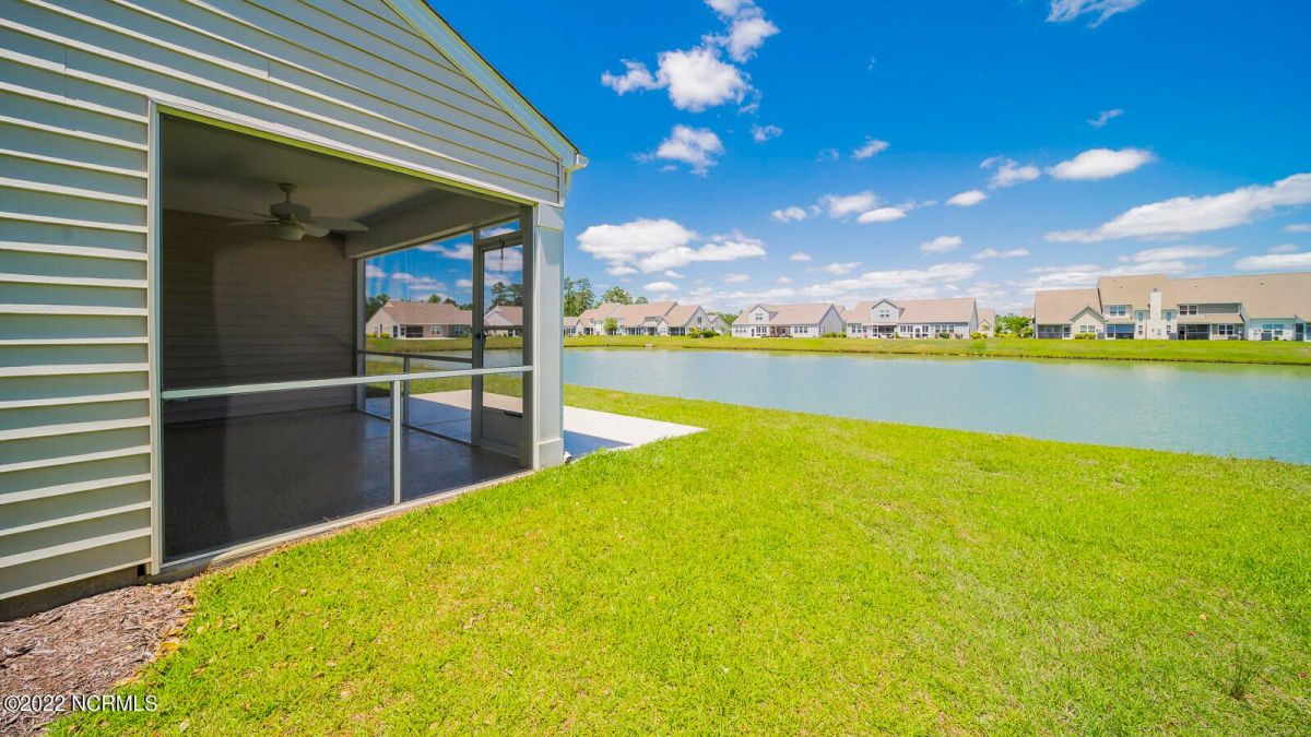 It was nothing but a dirt field when the owner chose the lot with the best view of the lake. She also chose all the available upgrades including the screened porch, Luxury Vinyl Plank Flooring throughout, cultured marble in the bathroom, Granite kitchen countertops, garage door opener, SS refrigerator, washer/dryer, mop sink, etc. She went on to add a fabulous, extra wide 9 blade ceiling fan in the living room plus fans in the bedrooms, Omni TV wall mount, automatic light in laundry, Plantation shutters, remote control roller shade on patio slider, chair rail with shadow box in living room & dining area, electric fireplace, storm door with retractable screen & custom cabinet in hall. Kitchen additions include a utility cabinet with pulll out shelving. Also, added roll out shelving in all base cabinets plus a coffee station. Extra lighting was added to both tub/showers. Easy to clean Shoreline Epoxy coating poured at the front entrance, inside screened porch & also on the added 8' X 19' outside patio. And that's not all!!! The great room & master bedroom furniture convey. So you can see the owner has spared no expense for comfort & low maintenance yet has only used the home a total of 6 months while she has owned it so everything is like new. So close to the Village of Calabash, 14 minutes to Sunset Beach, & not far to the convenience & excitement of Myrtle Beach. This one will be gone fast so check it out soon.