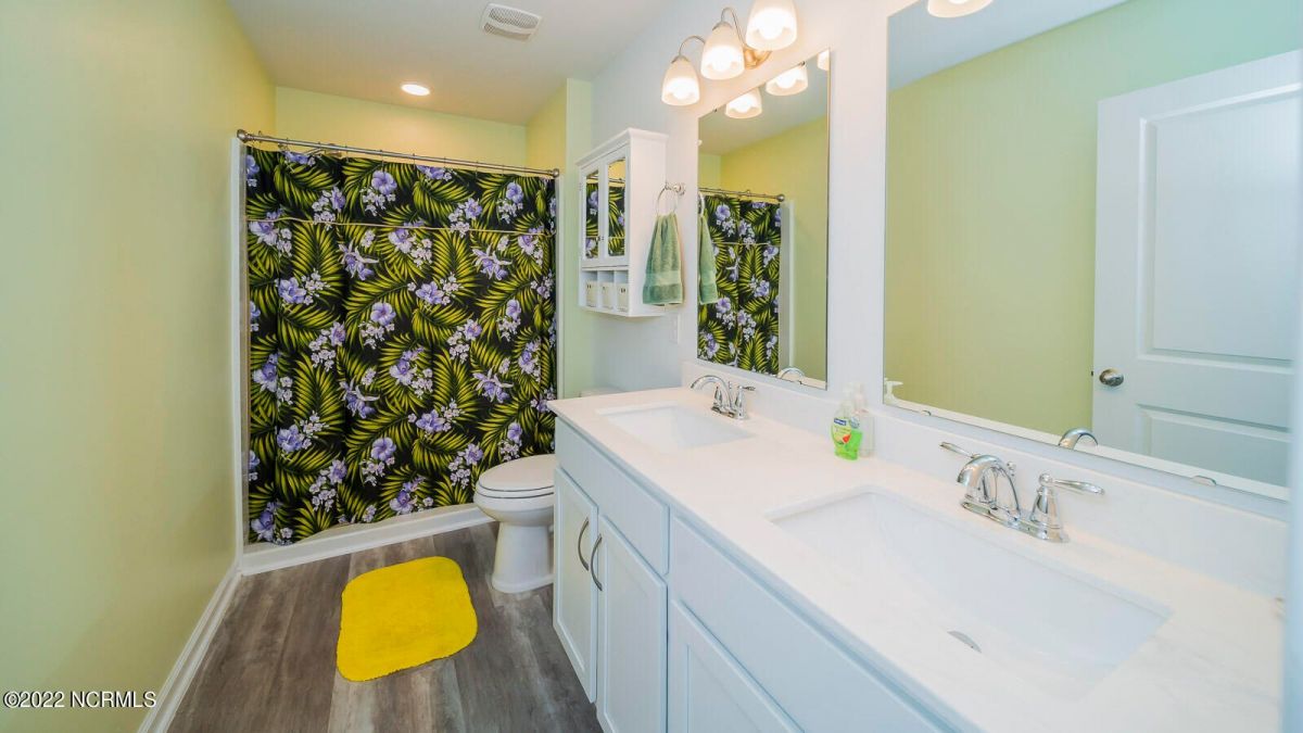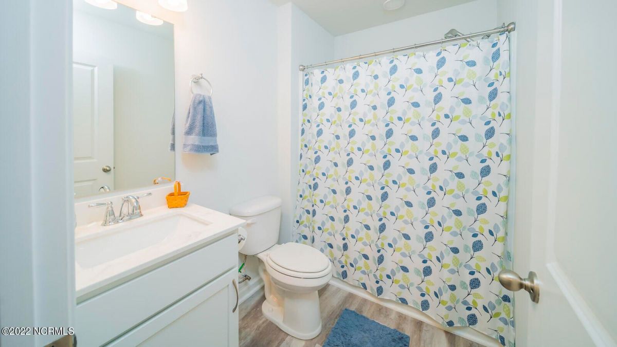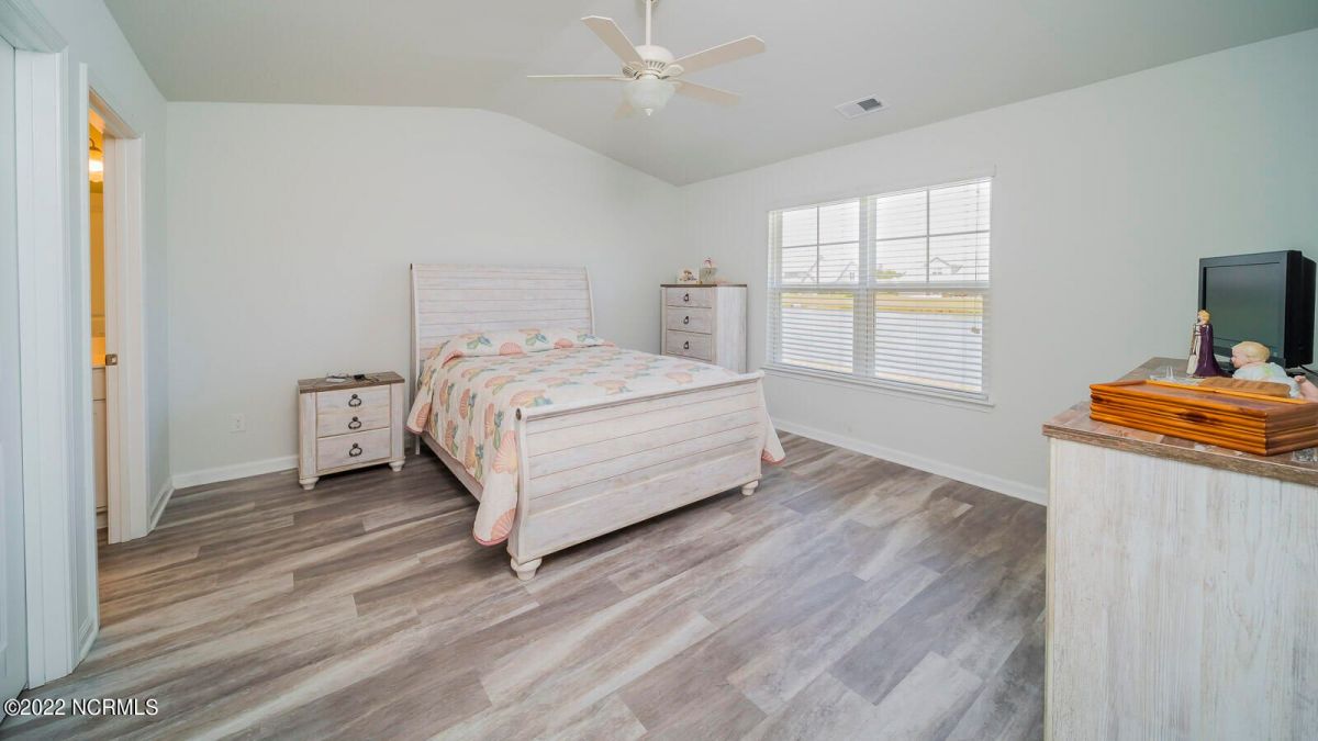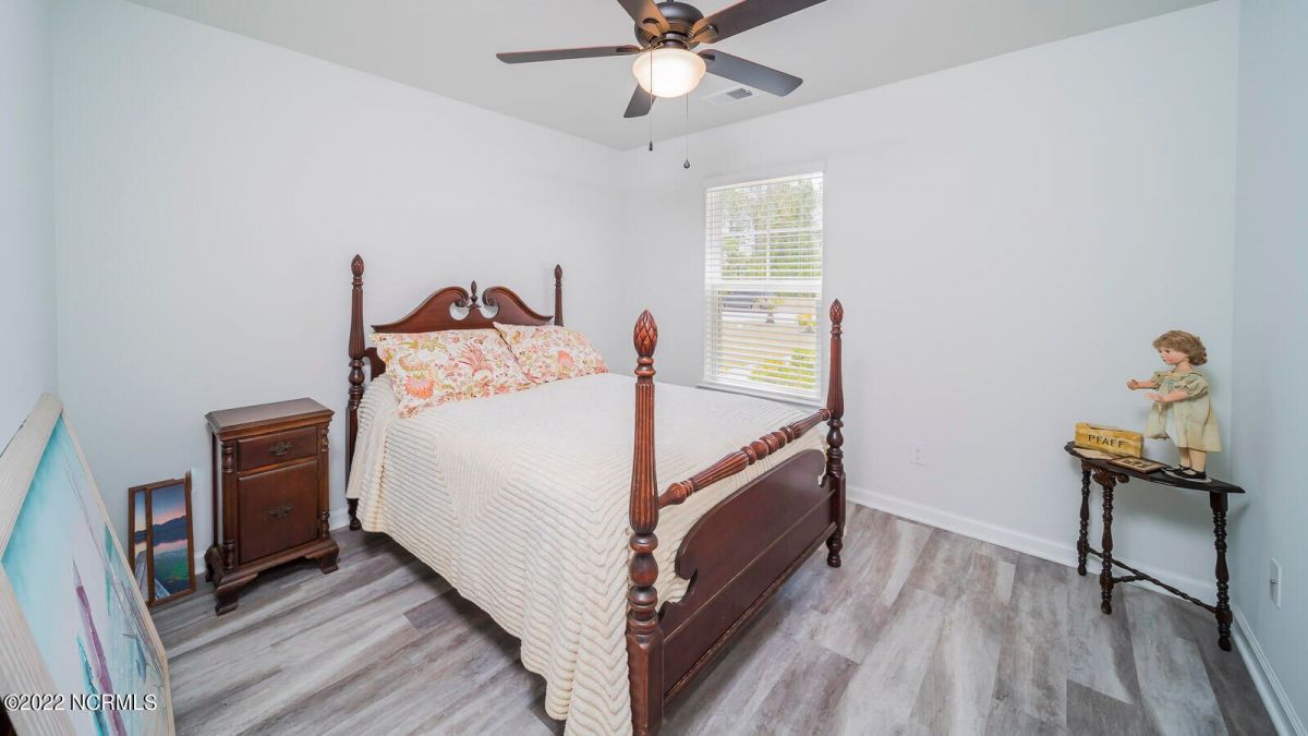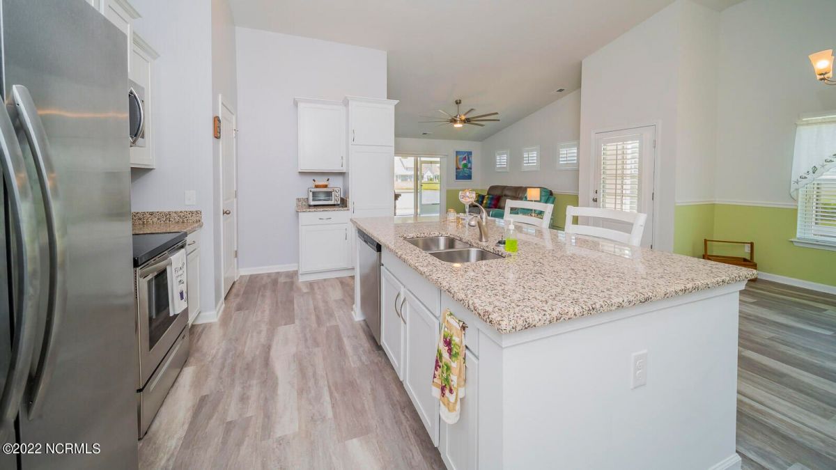 It was nothing but a dirt field when the owner chose the lot with the best view of the lake. She also chose all the available upgrades including the screened porch, Luxury Vinyl Plank Flooring throughout, cultured marble in the bathroom, Granite kitchen countertops, garage door opener, SS refrigerator, washer/dryer, mop sink, etc. She went on to add a fabulous, extra wide 9 blade ceiling fan in the living room plus fans in the bedrooms, Omni TV wall mount, automatic light in laundry, Plantation shutters, remote control roller shade on patio slider, chair rail with shadow box in living room & dining area, electric fireplace, storm door with retractable screen & custom cabinet in hall. Kitchen additions include a utility cabinet with pulll out shelving. Also, added roll out shelving in all base cabinets plus a coffee station. Extra lighting was added to both tub/showers. Easy to clean Shoreline Epoxy coating poured at the front entrance, inside screened porch & also on the added 8' X 19' outside patio. And that's not all!!! The great room & master bedroom furniture convey. So you can see the owner has spared no expense for comfort & low maintenance yet has only used the home a total of 6 months while she has owned it so everything is like new. So close to the Village of Calabash, 14 minutes to Sunset Beach, & not far to the convenience & excitement of Myrtle Beach. This one will be gone fast so check it out soon.