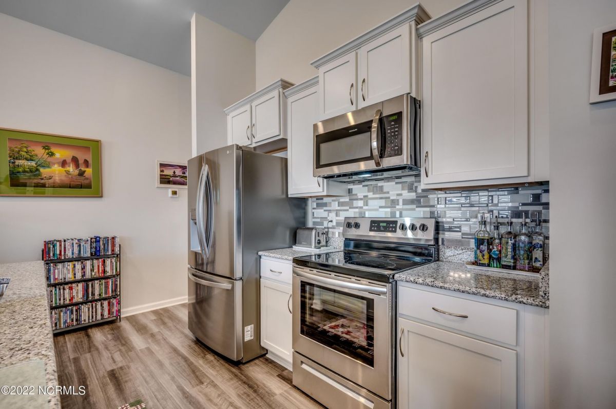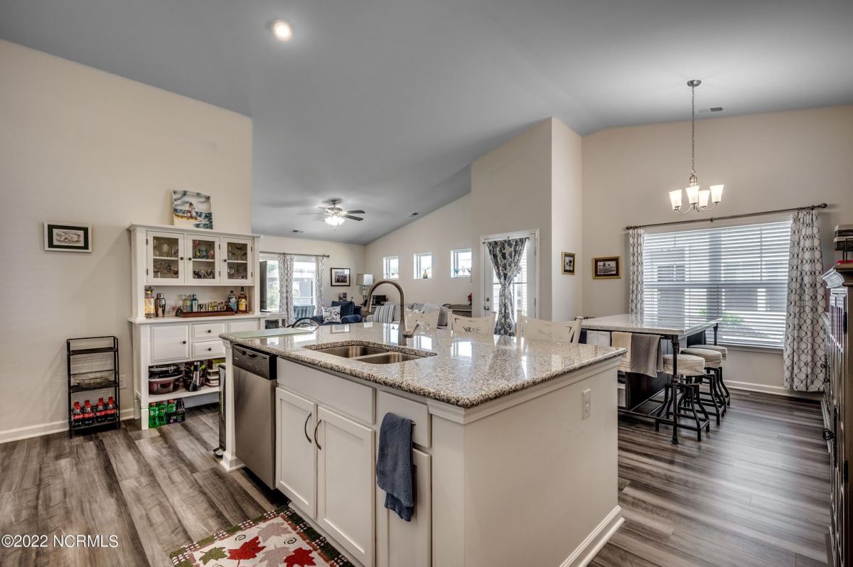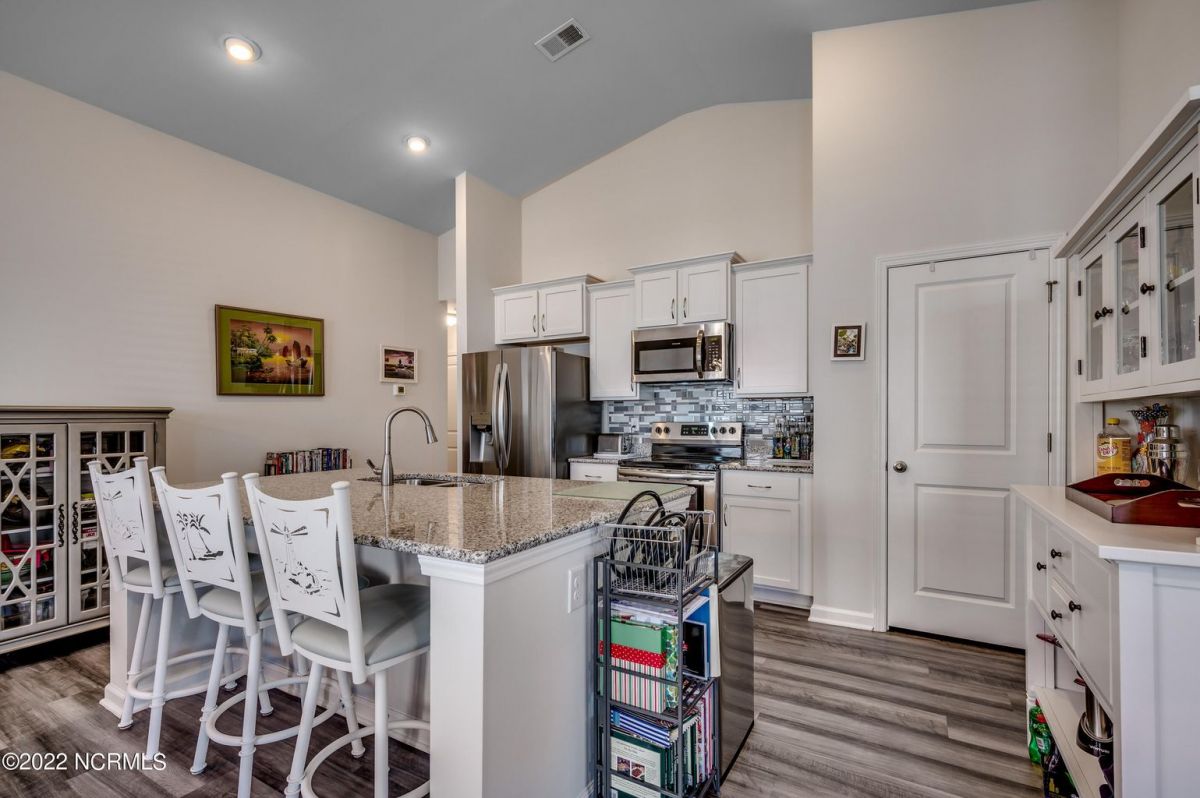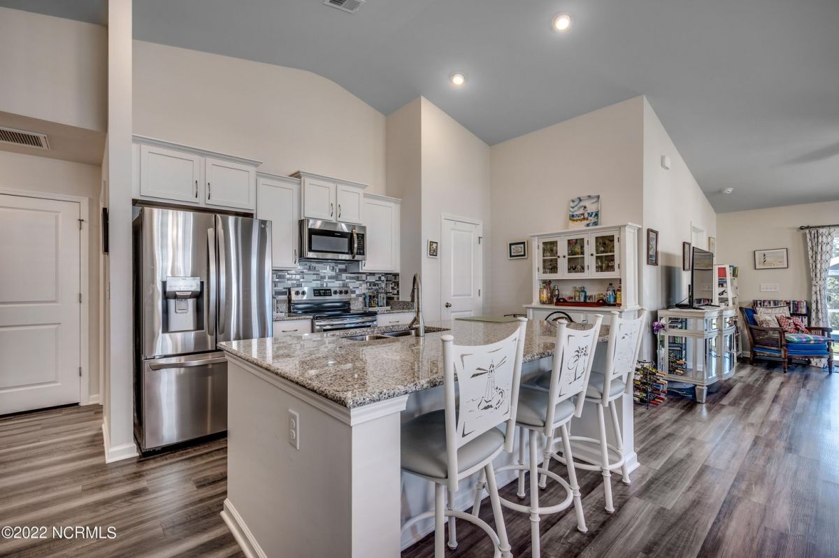 Beautiful, immaculate 3 BR 2Ba one level Townhome, like new! A must see! Enjoy a beach life with all the NC & SC offers. This home offers a concept open floor plan with a gorgeous kitchen with backsplash, huge granite island and stainless appliances. It opens up to a comfortable living area with beautiful LVP floors. Large master suite has walk-in closet, walk-in 5ft shower and double sinks, great closet storage, AWESOME storage in the garage, recently installed. Enjoy the screened porch with nice breezes. Calabash Lakes is a sought after location and offers a fitness center and many social activities. Pool, shuffleboard, tennis/pickleball and more! All kitchen appliances, washer, dryer, freezer in the garage, blinds & rods convey. New refrigerator. A MUST SEE PROPERTY!