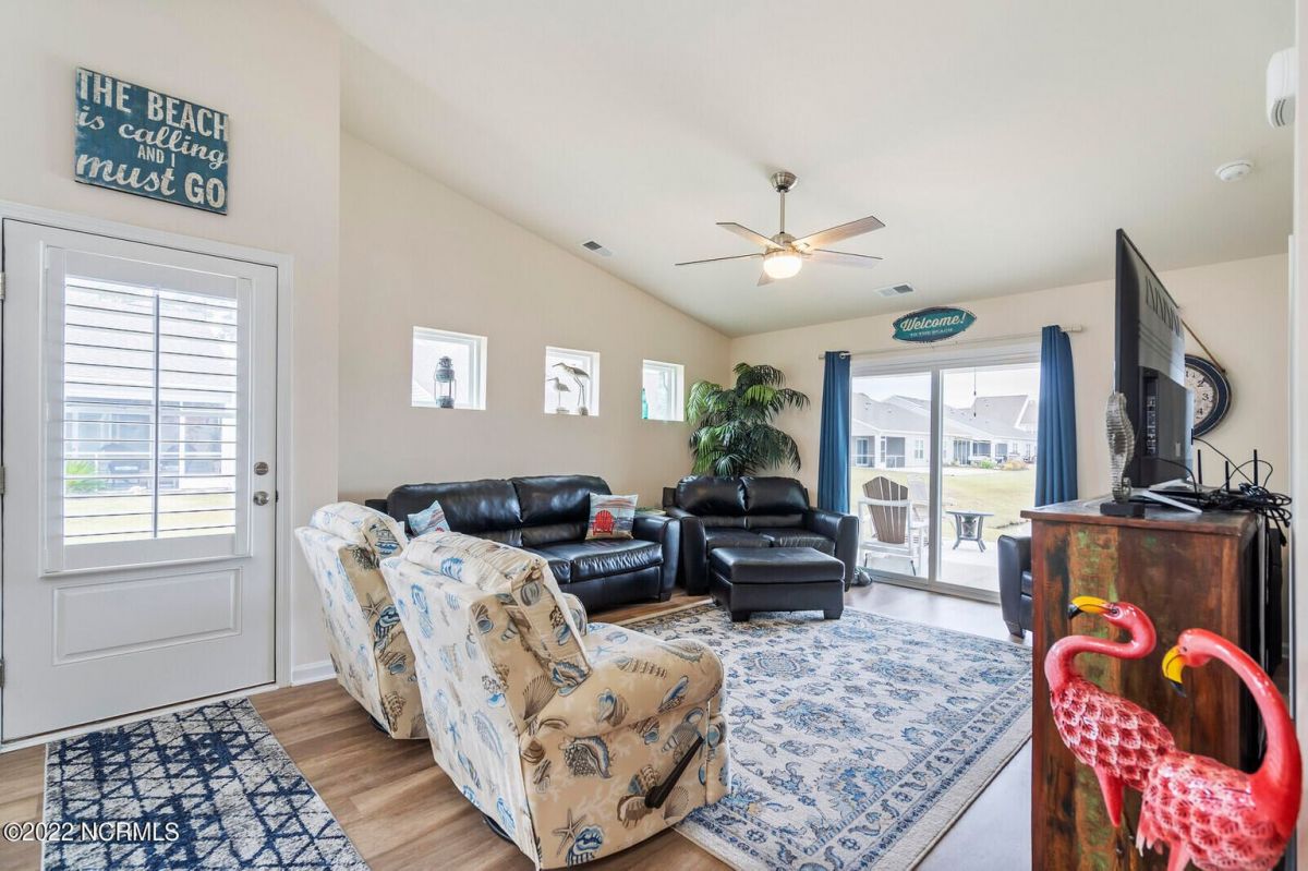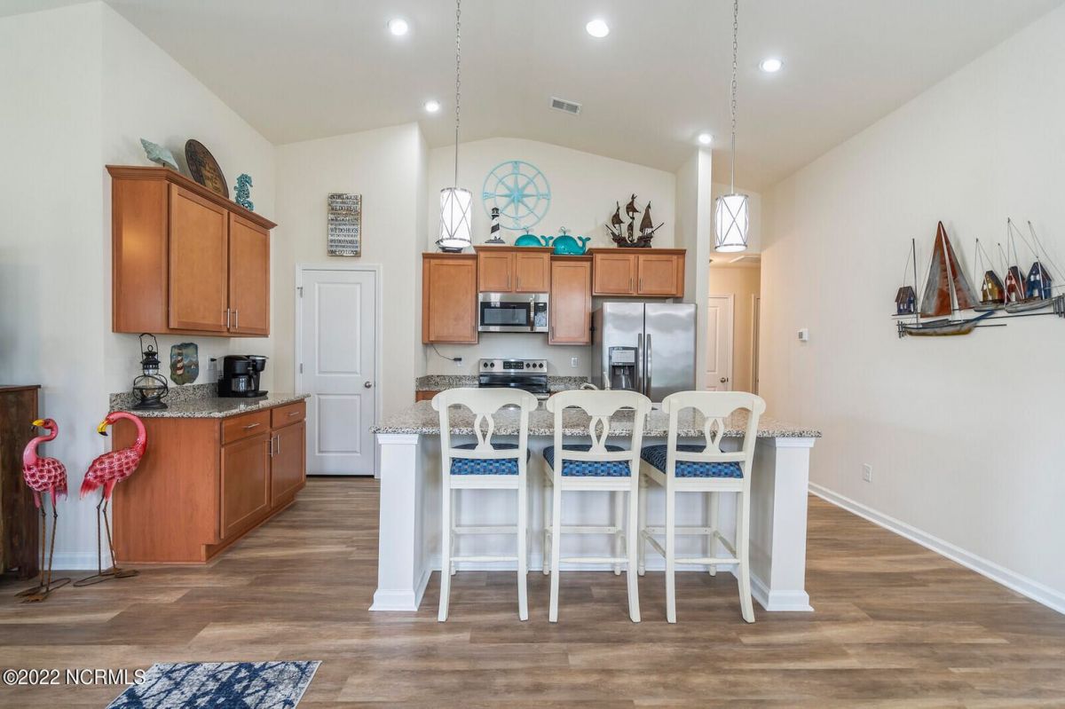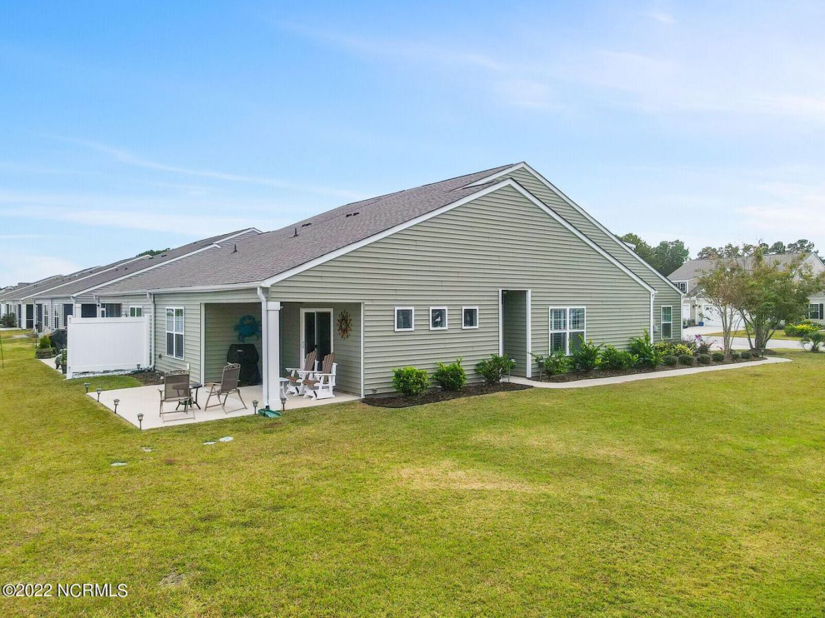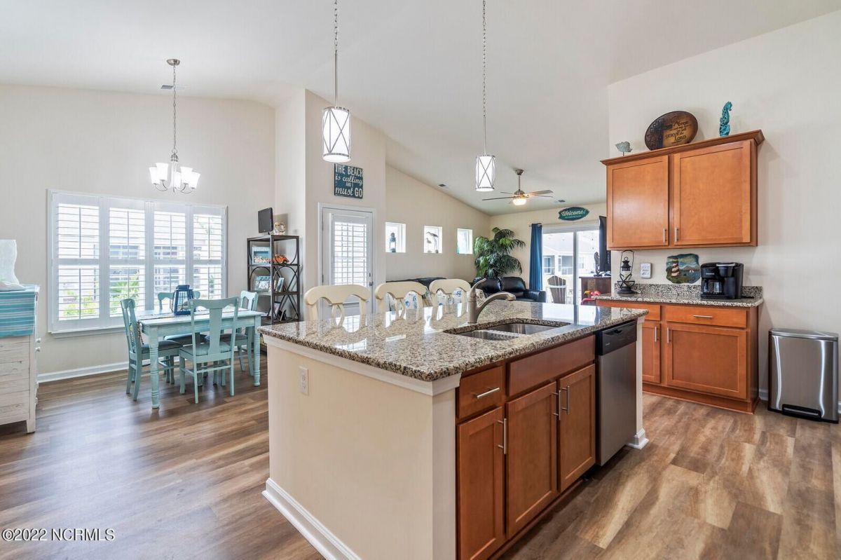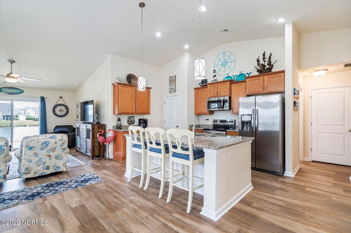 This beach home has everything you need and no stress! Move in ready and everything's done for you! 4 years new, with all the extra's you would want...added cabinetry, LVP flooring throughout, remote ceiling fans and a new 19'x 8.5' patio with the most amazing pond views! Let's talk kitchen...plenty of custom cabinetry, granite counter space for days, gorgeous custom lighting, stainless steel appliances, and a huge island for everyone to gather around! You'll have plenty of room with 3 bedrooms and 2 full baths. The indoor space is to die for, but I think the outdoor living might win in this one! You have your choice of the covered patio, just off your main living area, or a spacious open patio to enjoy the morning sunrise, your afternoon tea or an evening firepit...all with the most amazing pond view! This home also offers plantation shutters throughout, lawn irrigation, a professionally painted and trimmed garage, a generator hookup and a nice sized side yard for extra space. The HOA covers exterior maintenance, wind and hail insurance, lawn/shrub/mulch care, annual power washing, termite bond/pest control, clubhouse, new saltwater pool summer 2023, fitness center, tennis and pickleball courts! Excellent for a home, a home away from home or even a long-term rental! 75 championship golf courses within a 25-mile radius, deep water charter fishing and all the shopping and dining you can handle. Calabash Lakes is located just 20 minutes to Myrtle Beach, SC and 45 minutes to Wilmington, NC. Believe it or not, there are more upgrades I didn't mention, come tour it for yourself today!