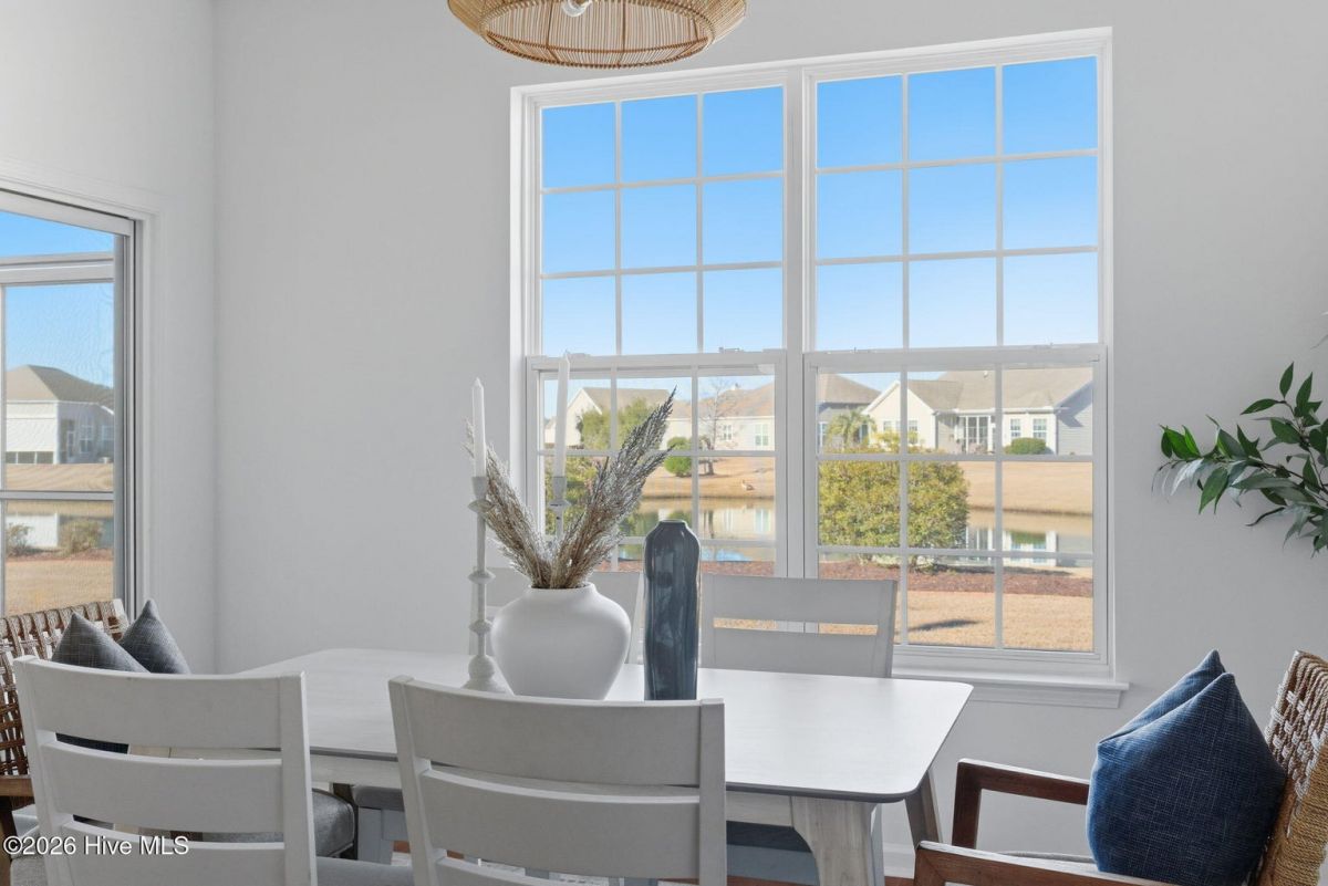 At 211 Cable Lake Circle, the first thing you notice is the sense of calm—the kind that comes from a home overlooking the water and filled with natural light. This single-level layout offers more than 1,700 square feet of thoughtfully defined space, making it easy to step inside and feel at home. Fresh interior paint and a wide foyer set an inviting tone as you enter. Vaulted ceilings elevate the main living area, while a thoughtful layout keeps the home feeling open yet well-defined, making both everyday living and entertaining effortless. The kitchen is designed for everyday simplicity, with plenty of counter space and a functional layout that makes meal prep easy. A cozy breakfast nook connects the kitchen to the lanai, creating the perfect spot to enjoy morning coffee with peaceful pond views. Each of the three bedrooms is comfortably sized, and the two full bathrooms are arranged for convenience—the primary bath features a soaking tub, walk-in shower, and a spacious closet. Out back, the lanai and patio look out across the quiet pond—a calming spot for relaxing, reading, or enjoying the outdoors. Community resort-style amenities—including a pool, fitness center, tennis and pickleball courts, and a clubhouse—make it easy to stay active close to home. Just minutes from the restaurants and shops of Calabash and a short drive to the sandy shores of Sunset Beach, this move-in-ready home balances the best of comfort, location, and everyday livability.