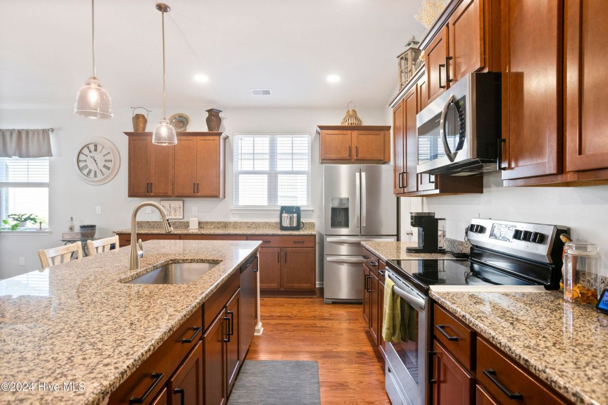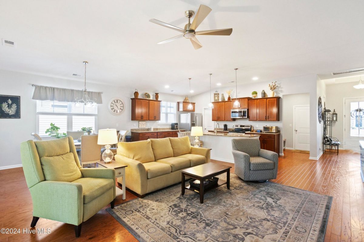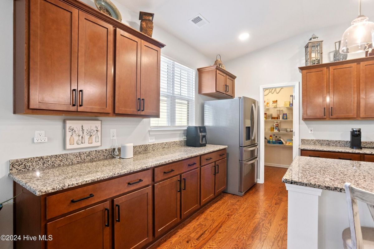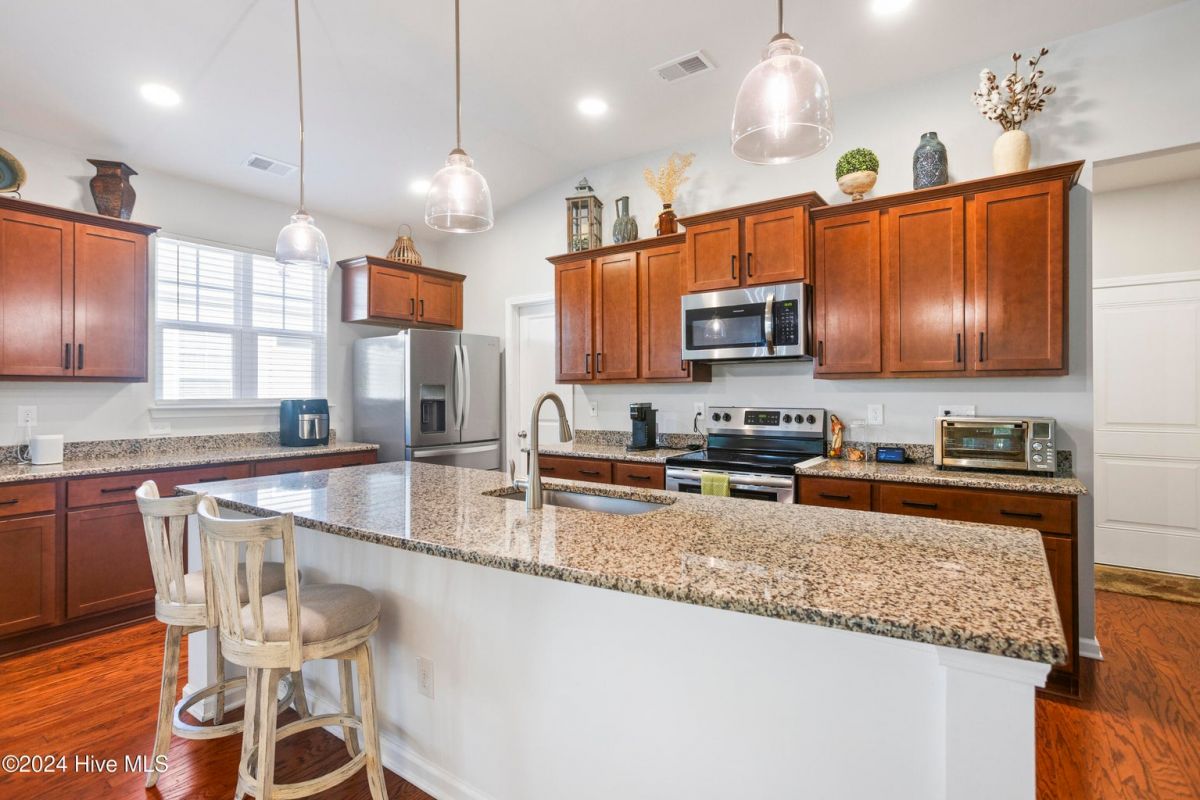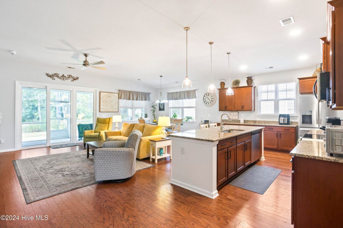 Welcome to this stunning single-story home in Calabash Lakes, where comfort meets convenience. With 3 bedrooms and 2 full baths, this open-floor-plan home boasts gleaming hardwood floors, a modern kitchen with granite countertops, stainless steel appliances, and a walk-in pantry. Relax in the serene primary suite overlooking wooded views, complete with a custom closet and luxurious en-suite bath. Enjoy outdoor living on the oversized screened porch and stone patio. Community amenities include saltwater pool, fitness center, and pickleball courts make this home a worry-free coastal retreat. Minutes to the stunning Sunset Beach. Close to 75 championship golf courses within a 25-mile radius.Easy access to deepwater charter fishing, shopping, and dining 20 minutes from Myrtle Beach, SC, and 45 minutes from Wilmington, NC. Don't miss the chance to experience coastal living at its finest. Schedule your showing today!
