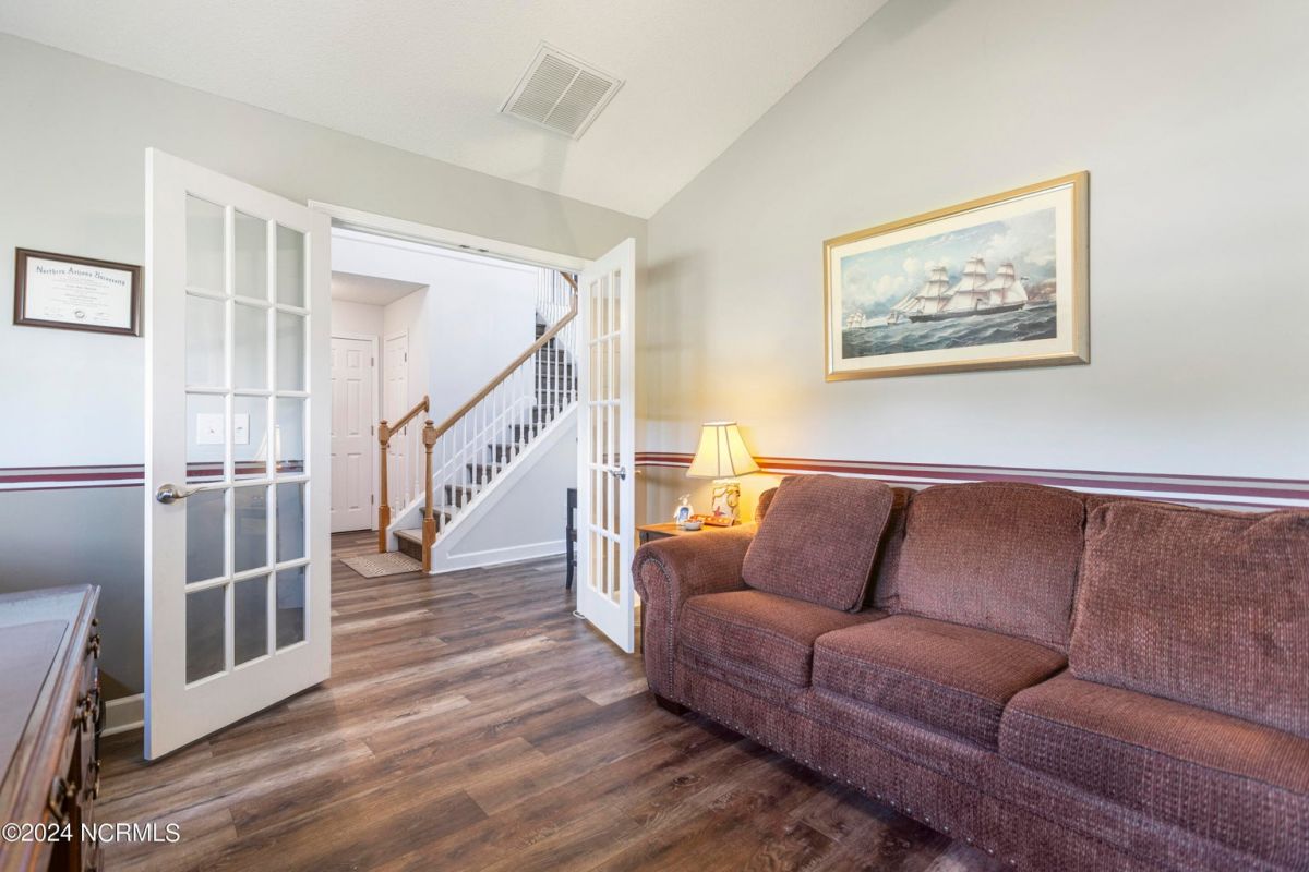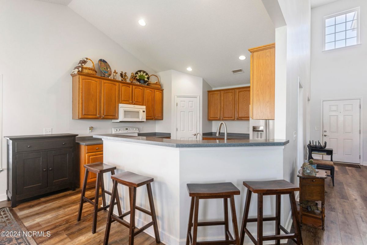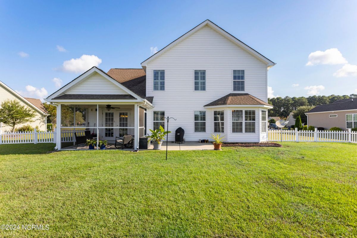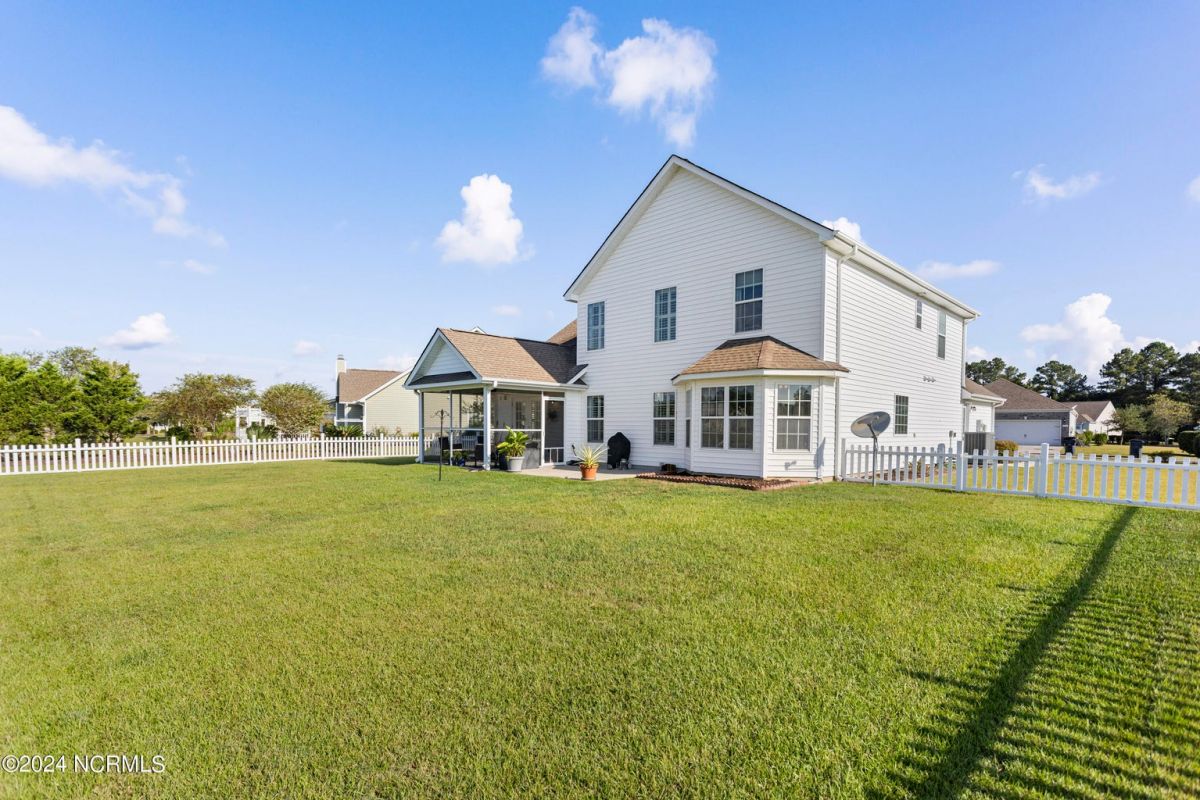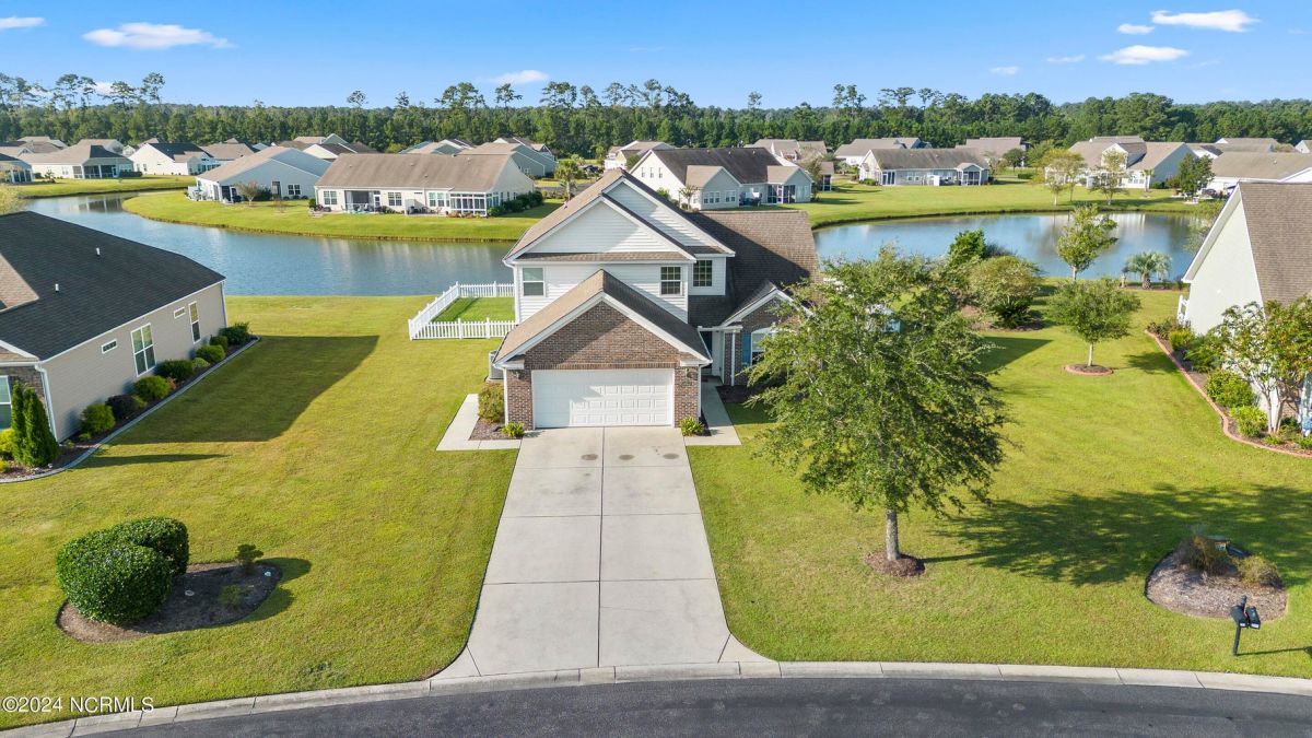 Great home in a great community only minutes from award winning Sunset Beach and the seafood capital of the south! As you arrive, you'll notice the serene pond backdrop, brick veneer accents and ample room between the homes. The home welcomes you with a 2-story main living area, a spacious kitchen with plenty of Corian countertops and cabinetry, a pantry and vaulted ceiling to add to its feeling of spaciousness. Freshly painted and new LVP flooring, no carpet! You can enjoy your morning coffee with a view of the pond, from your eat-in kitchen or your screened porch! The large primary suite (with a view), office/flex space and half bath are also on the first level. The open staircase has a view of the main living area and flows into a generous loft. The second level is rounded out with 2 guestrooms and a full bath, this could be a great area for your guests. The home also offers a fenced in rear yard, lawn irrigation, and the washer & dryer convey! Everything is ready and waiting for you! The HOA covers lawn care, annual power washing, pest control, clubhouse, pool, fitness center, game room, tennis and pickleball courts! Excellent for a home, a home away from home or even a long-term rental! 75 championship golf courses within a 25-mile radius, deep water charter fishing and all the shopping and dining you can handle in downtown Calabash. Carolina Shores is just 20 minutes from Myrtle Beach, SC and 45 minutes from Wilmington, NC. Calabash Lakes is located in the possible projected area for Carolina Bays Hwy Extension. Believe it or not, there are more upgrades I didn't mention, come tour it for yourself today!
