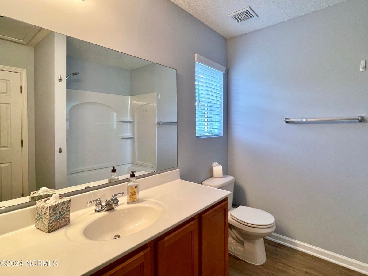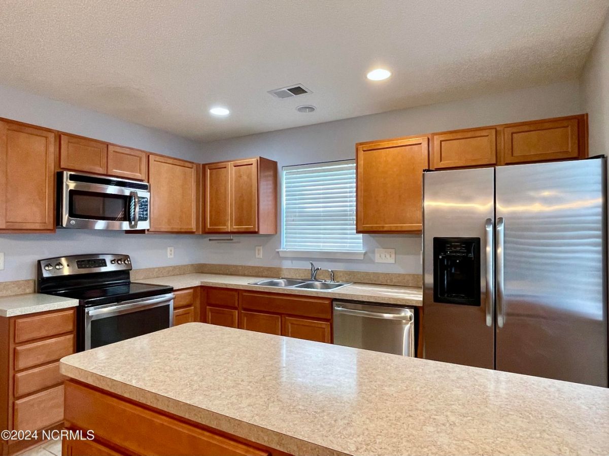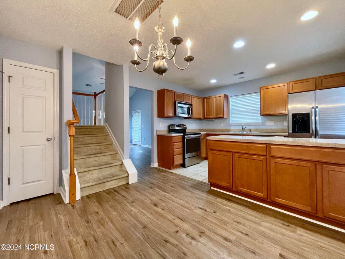 Immaculate 3 Bedroom townhouse in a great Calabash location just minutes to the beach and surrounding coastal areas! This townhome is a 1 -1/2 story style end unit, featuring a first floor master suite, enclosed rear patio and second floor loft/flex room great to use as office space, rec room, or the 3rd bedroom! The kitchen has a breakfast bar and stainless GE appliances. All appliances convey, including a full-size washer and dryer. The interior is freshly painted and 1st level updated with beautiful LVP style flooring. The Calabash Lakes neighborhood has ample amenities such as a huge community pool, tennis/pickleball courts, as well as frequent community events in the clubhouse. All this sits within a short drive to beaches, shopping, dining and more.