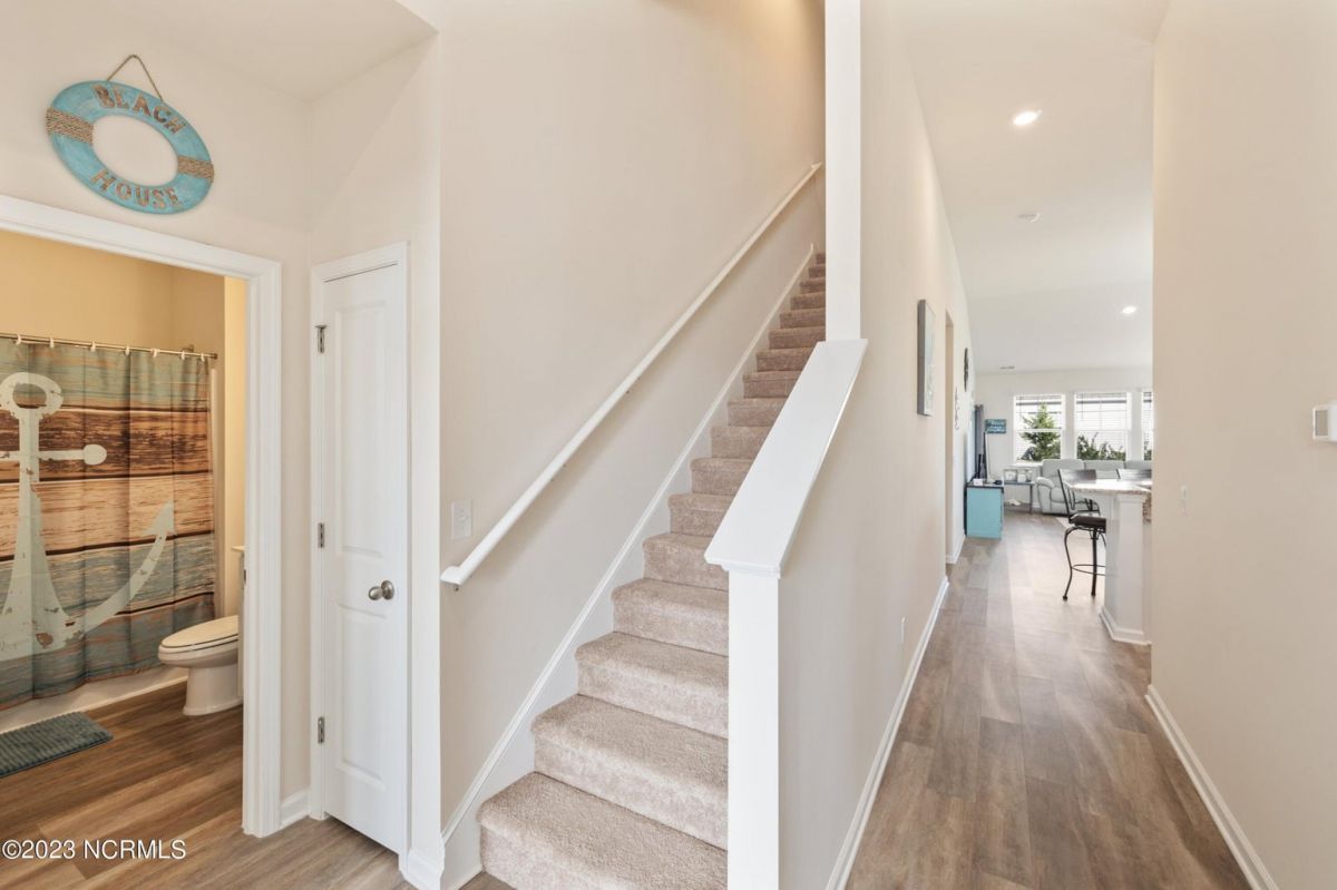 Beautiful and bright 3 bedroom, 3 full bath end unit townhome available. The home offers a 1st floor Master Bedroom with 2 walk-in closets and direct access to the screened in porch. The master bath is equipped with a dual vanity and large walk-in shower. The open concept main living area including the living, kitchen and dining area offers vaulted ceilings and ample natural light throughout. Additionally on the 1st floor is a second bedroom, full bath. Upstairs is bedroom number 3 which could serve as multiple spaces depending on the buyers needs as it measures at 28ftx15ft with a 3rd full bathroom. The home also offers a 1 car garage and access to the many amenities offered in Calabash Lakes including, Clubhouse, Swimming Pool, Tennis, Pickle Ball, Shuffle Board, billiards and many community events. All lawn care is also performed by the HOA as well as a maintenance free exterior with annual power washing and irrigation.