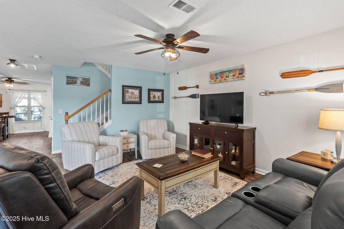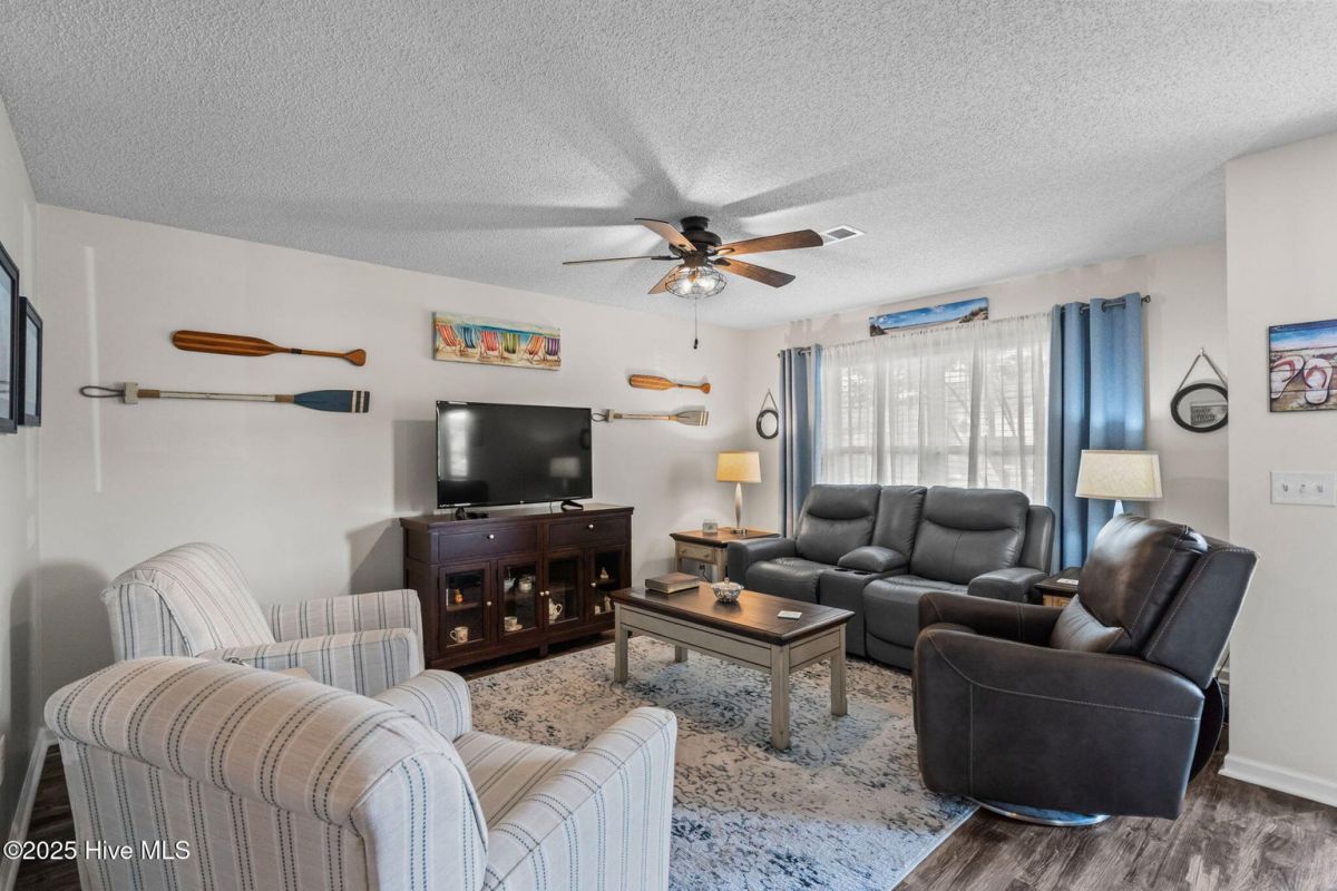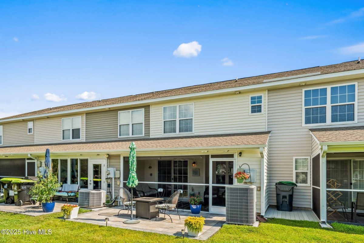 Welcome to this beautifully maintained, move-in-ready townhouse nestled in a sought-after coastal community. From the moment you step inside, the bright, airy atmosphere, with its soothing neutral color palette, welcomes you home. The heart of the home is the stunning kitchen: crisp white cabinetry complements quartz countertops and a stylish backsplash, while a spacious island and dedicated work area offer functional elegance. A generously sized pantry ensures storage is never an issue. The inviting large back porch, complete with tile flooring, storage closet, privacy panel, ceiling fan, and patio, is an ideal retreat for alfresco dining, relaxing mornings with coffee, or enjoying peaceful evenings surrounded by nature. Both bedrooms boast vaulted ceilings, ceiling fans to maintain comfort, and their own private bathrooms, ensuring a layout perfect for guests or shared living. A tasteful half bath for visitors and a convenient laundry closet on the first floor add to the home's thoughtful design. Furnishings are negotiable, offering flexibility for personalization or a seamless move-in with select pieces. This turnkey residence has been cared for meticulously and shows like a model. Beyond the front door, the vibrant neighborhood of Calabash Lakes offers resort-style living. Residents enjoy low-maintenance living thanks to HOA-managed lawn care and exterior upkeep. Within steps you'll find a refreshing community pool, well-equipped clubhouse with a fitness center and game room, outdoor grilling area, and courts for tennis and pickleball, perfect for socializing, staying active, or hosting friends. Just minutes away, the charming town of Calabash, famous for its seafood, and the pristine sands of Sunset Beach await. Delight in wonderful restaurants, boutique shopping, golf courses, and scenic views. Whether you're seeking a peaceful primary residence or a flexible second home, this property delivers an amenity-rich, coastal lifestyle in a prime location.
