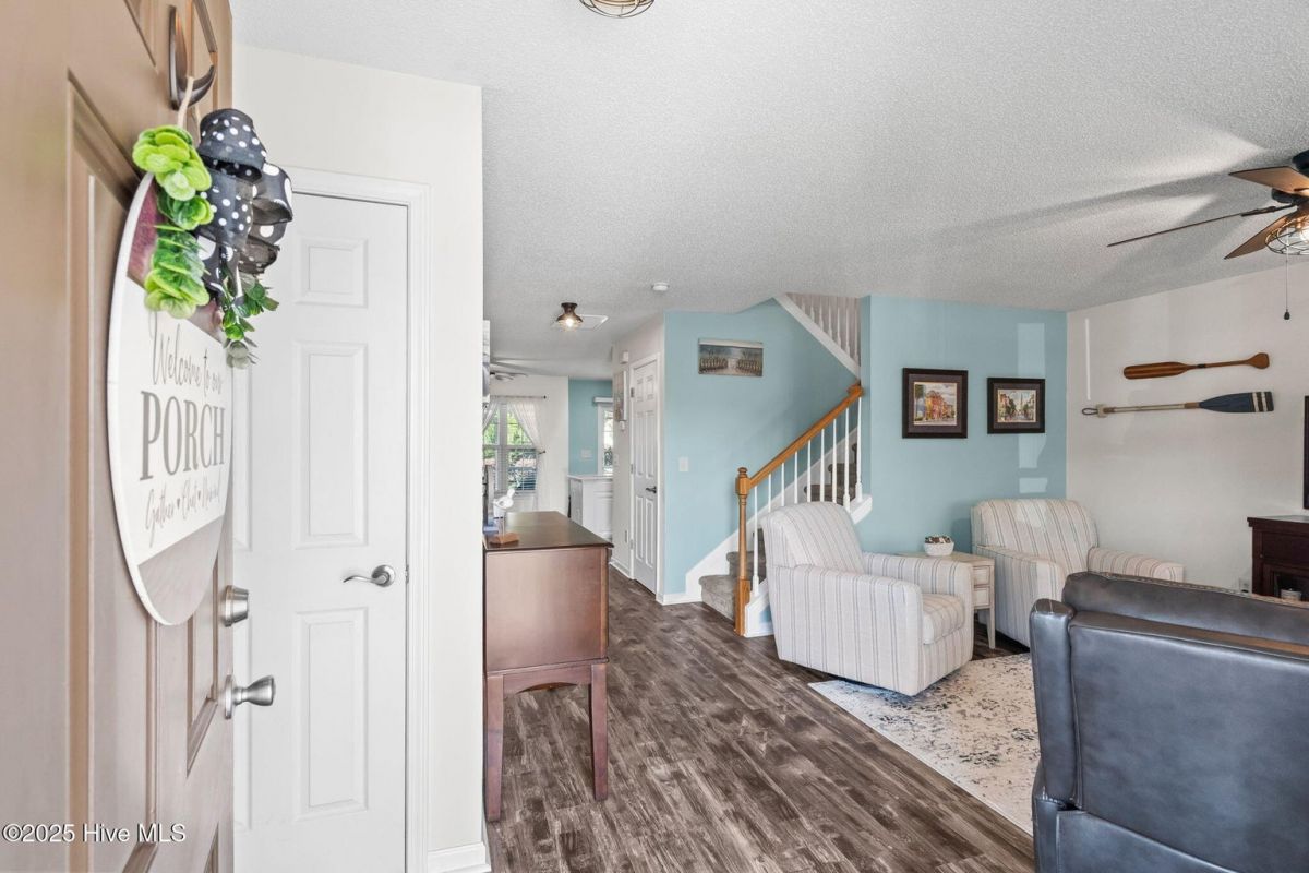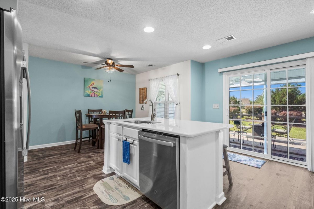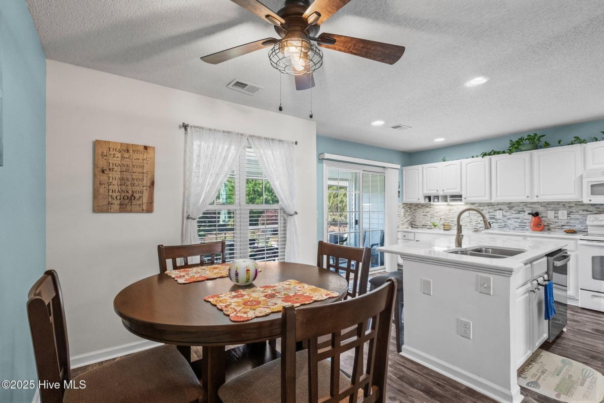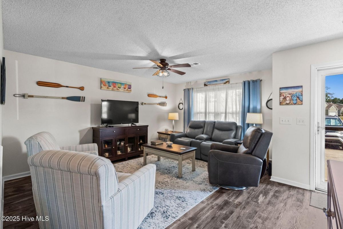 Welcome to this beautifully maintained, move-in-ready townhouse nestled in a sought-after coastal community. From the moment you step inside, the bright, airy atmosphere, with its soothing neutral color palette, welcomes you home. The heart of the home is the stunning kitchen: crisp white cabinetry complements quartz countertops and a stylish backsplash, while a spacious island and dedicated work area offer functional elegance. A generously sized pantry ensures storage is never an issue. The inviting large back porch, complete with tile flooring, storage closet, privacy panel, ceiling fan, and patio, is an ideal retreat for alfresco dining, relaxing mornings with coffee, or enjoying peaceful evenings surrounded by nature. Both bedrooms boast vaulted ceilings, ceiling fans to maintain comfort, and their own private bathrooms, ensuring a layout perfect for guests or shared living. A tasteful half bath for visitors and a convenient laundry closet on the first floor add to the home's thoughtful design. Furnishings are negotiable, offering flexibility for personalization or a seamless move-in with select pieces. This turnkey residence has been cared for meticulously and shows like a model. Beyond the front door, the vibrant neighborhood of Calabash Lakes offers resort-style living. Residents enjoy low-maintenance living thanks to HOA-managed lawn care and exterior upkeep. Within steps you'll find a refreshing community pool, well-equipped clubhouse with a fitness center and game room, outdoor grilling area, and courts for tennis and pickleball, perfect for socializing, staying active, or hosting friends. Just minutes away, the charming town of Calabash, famous for its seafood, and the pristine sands of Sunset Beach await. Delight in wonderful restaurants, boutique shopping, golf courses, and scenic views. Whether you're seeking a peaceful primary residence or a flexible second home, this property delivers an amenity-rich, coastal lifestyle in a prime location.