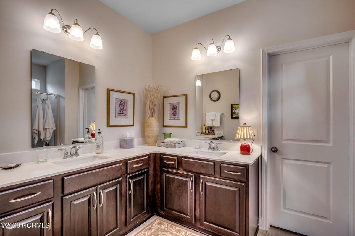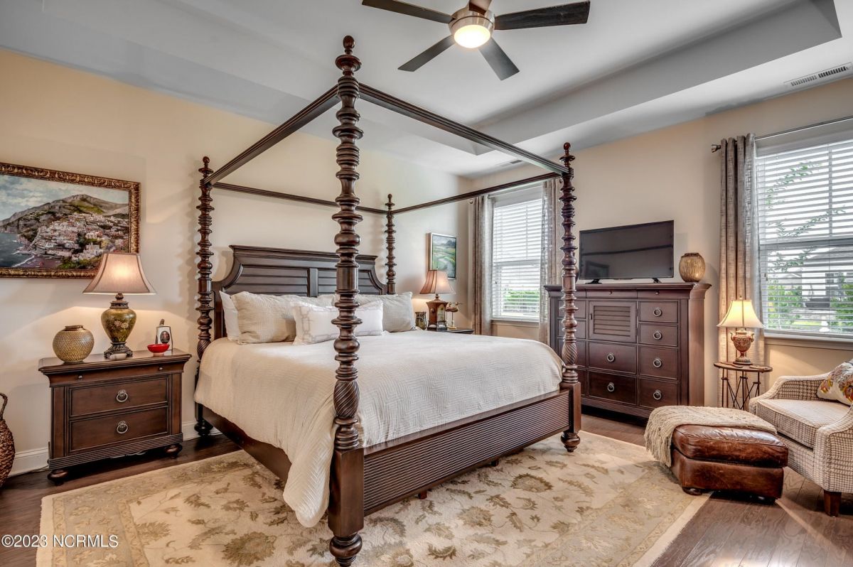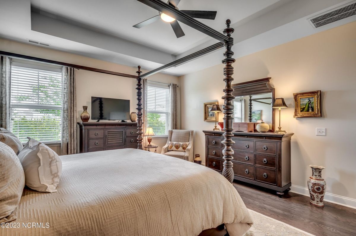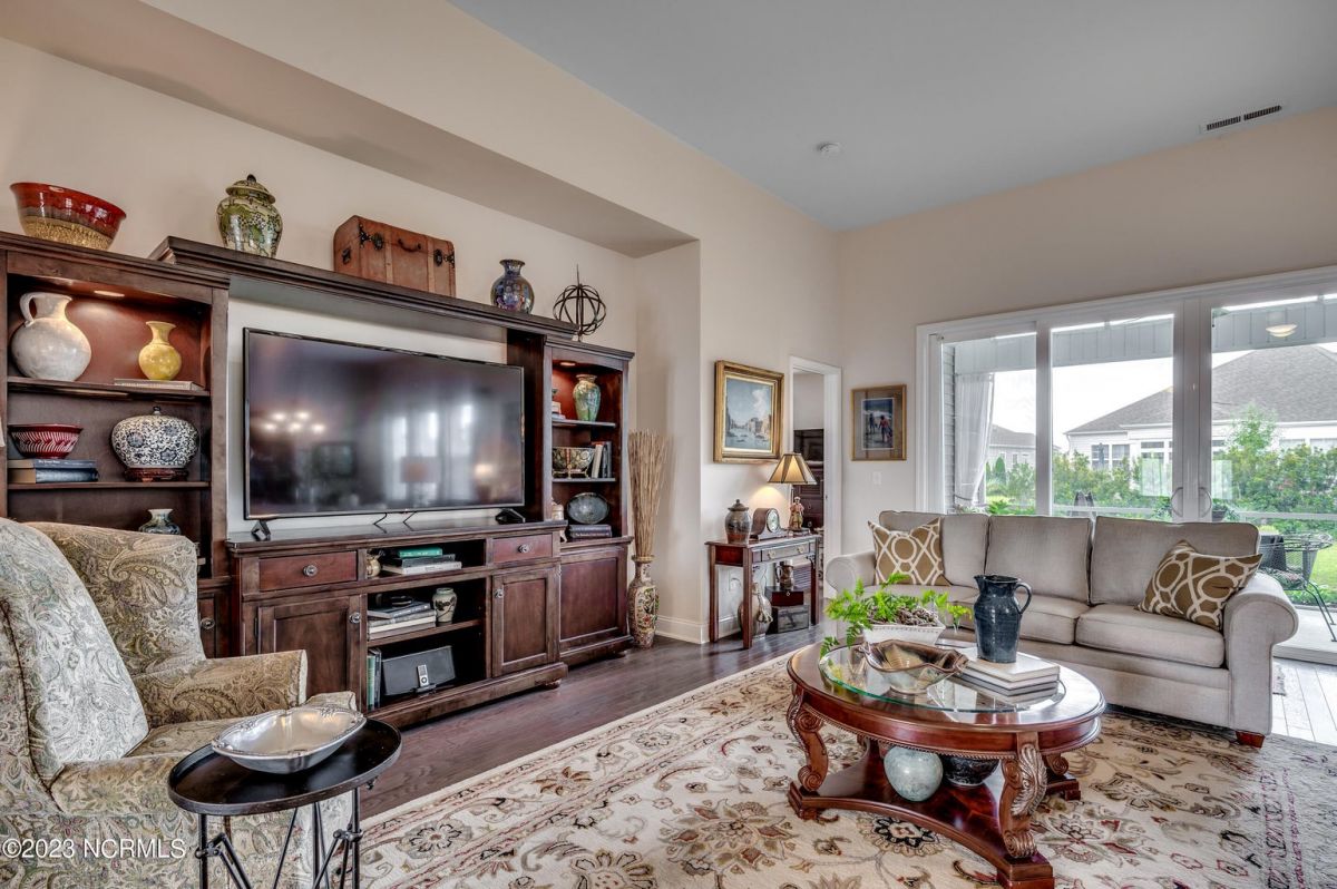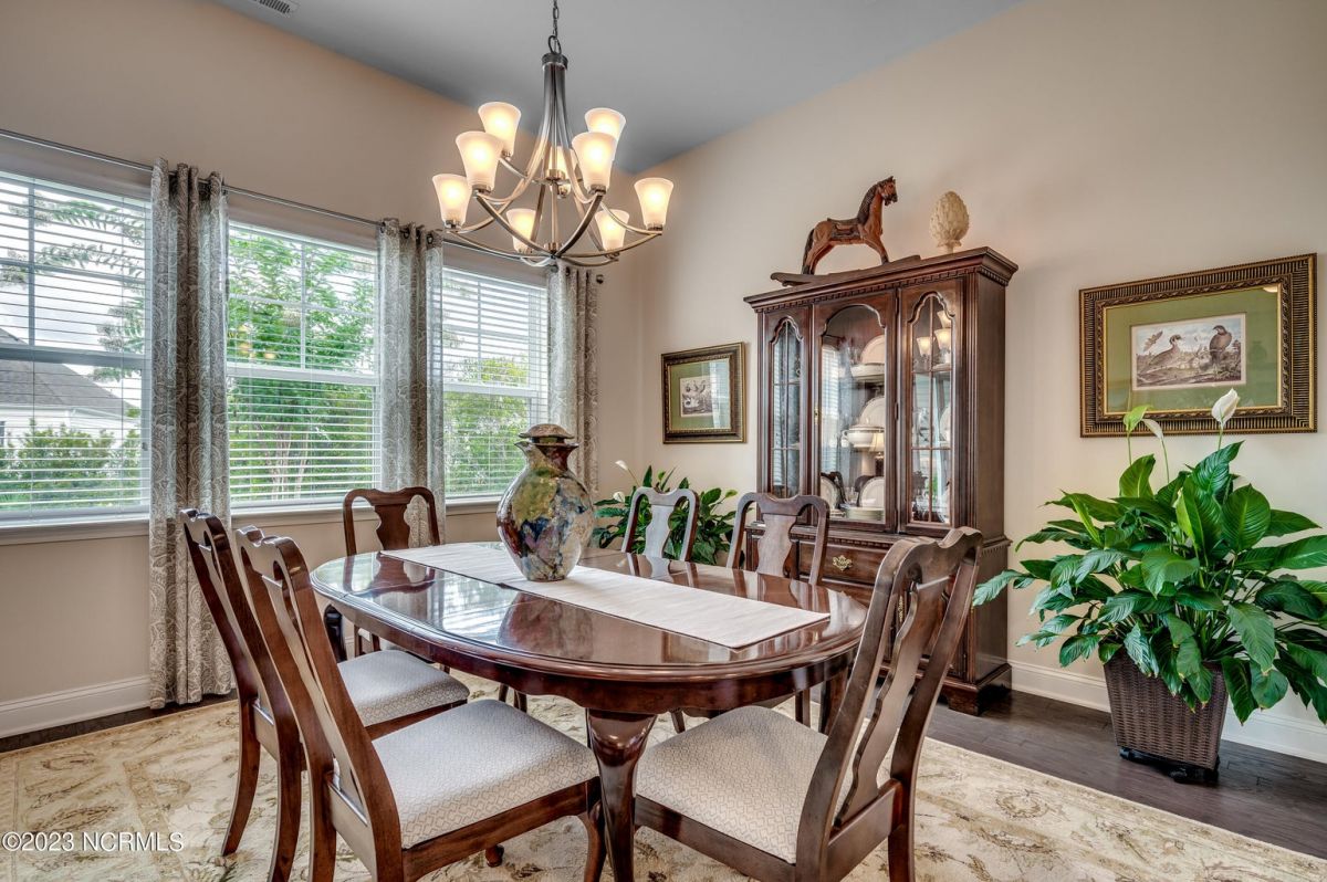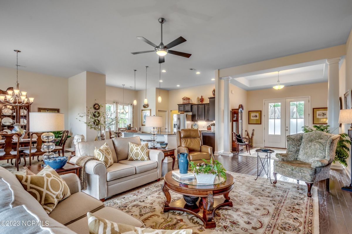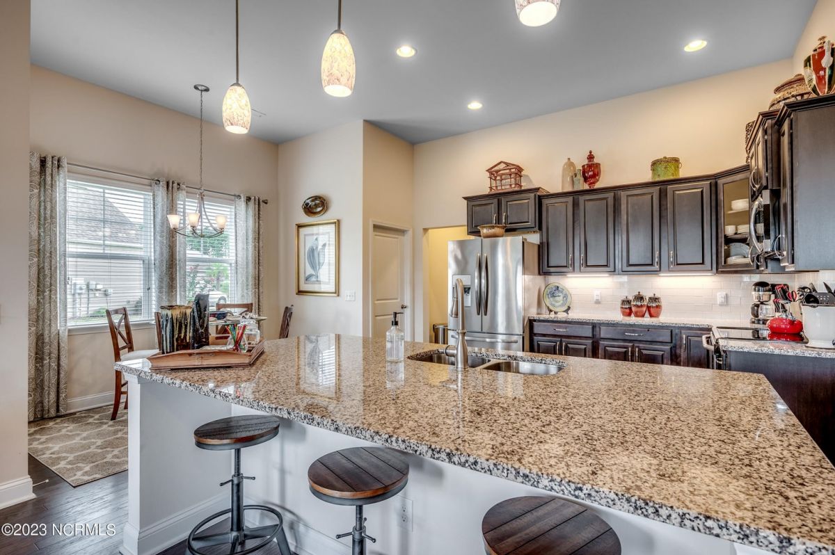 Well maintained and nicely upgraded 3 bedroom, 2.5 bath home that shows like a model. Built in 2017, this Calabash Lakes home is the Cumberland floor plan with approx 2188 heated sqft. As you enter the foyer, you'll see the open floor plan with soaring 11' ceilings and beautiful engineered hardwood floors through the living room, kitchen and dining room. Owners added matching h/w floors in the primary bedroom. The eat-in kitchen boasts granite countertops with tile backsplash, tall cabinets, new lights under cabinets as well as on top, stainless appliances, large island with undermount sink and breakfast bar, and pantry. Laundry room just off kitchen. Refrigerator, washer & dryer are negotiable and may convey with acceptable offer. Spacious family room has ceiling fan and tall 4-glass panel slider door to the 16x10 screened porch. Primary bedroom suite features trey ceiling, ceiling fan, walk-in closet, double sinks, 5'walk-in shower and private toilet. Guest bathroom has tub/shower combo with transom window overhead. Powder room off foyer. All bathrooms have tile floors. The attached 2 car garage has pull-down stairs to a spacious floored attic for plenty of additional storage. Owners have installed extensive low-maintenance landscaping all around home. Large wax myrtles shrubs in back provide natural privacy from neighbors. Property lines extend beyond landscaping in back and on sides. Irrigation all around. HOA monitors and pays for irrigation water as well as lawn care and annual pressure washing of home. Home is HERS Rated and was built with the Quick Tie System for added stability. Wonderful amenities include new community salt water pool, clubhouse, fitness center, pickleball and tennis courts. Calabash Lakes is located within a short drive to both NC and SC beaches. Come see all this home has to offer today!